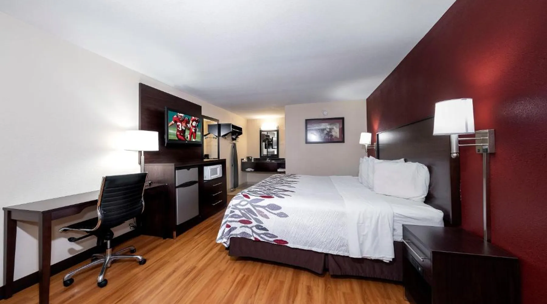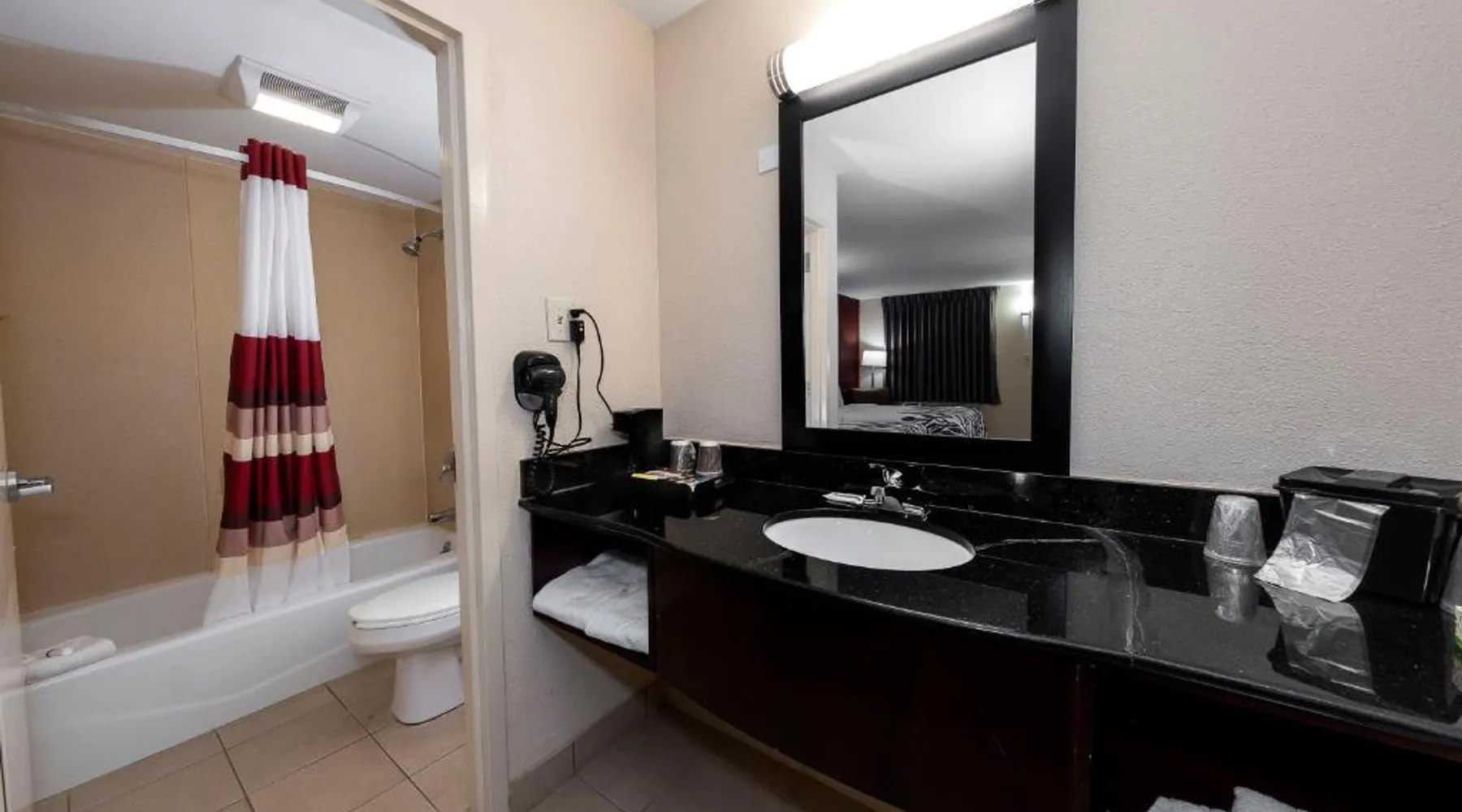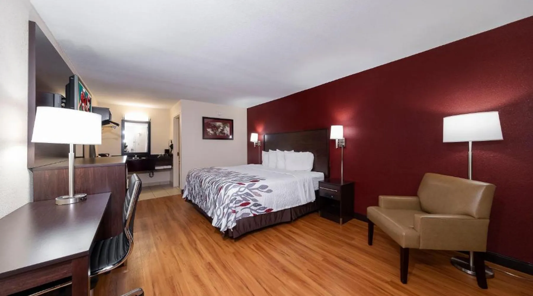 Red Roof Inn Bordentown - McGuire AFB is located in Bordentown. Free WiFi access is available. Each room here will provide you with air conditioning. Complete with a microwave, the dining area also has a refrigerator. Featuring a bath or shower, private bathrooms also come with a hairdryer. At Red Roof Inn Bordentown - McGuire AFB you will find a 24-hour front desk. Other facilities offered at the property are laundry facilities. An array of activities can be enjoyed on site or in the surroundings, including golfing. The property offers free parking. This hotel offers a conference room that can seat up to 60 guests. Newark Liberty International Airport is 48 mi away. This double room's standout feature is the pool with a view. Offering free toiletries, this double room includes a private bathroom with a bath, a shower and a hairdryer. The spacious air-conditioned double room offers a flat-screen TV with cable channels, a private entrance, a tea and coffee maker, parquet floors as well as pool views. The unit has 2 beds.