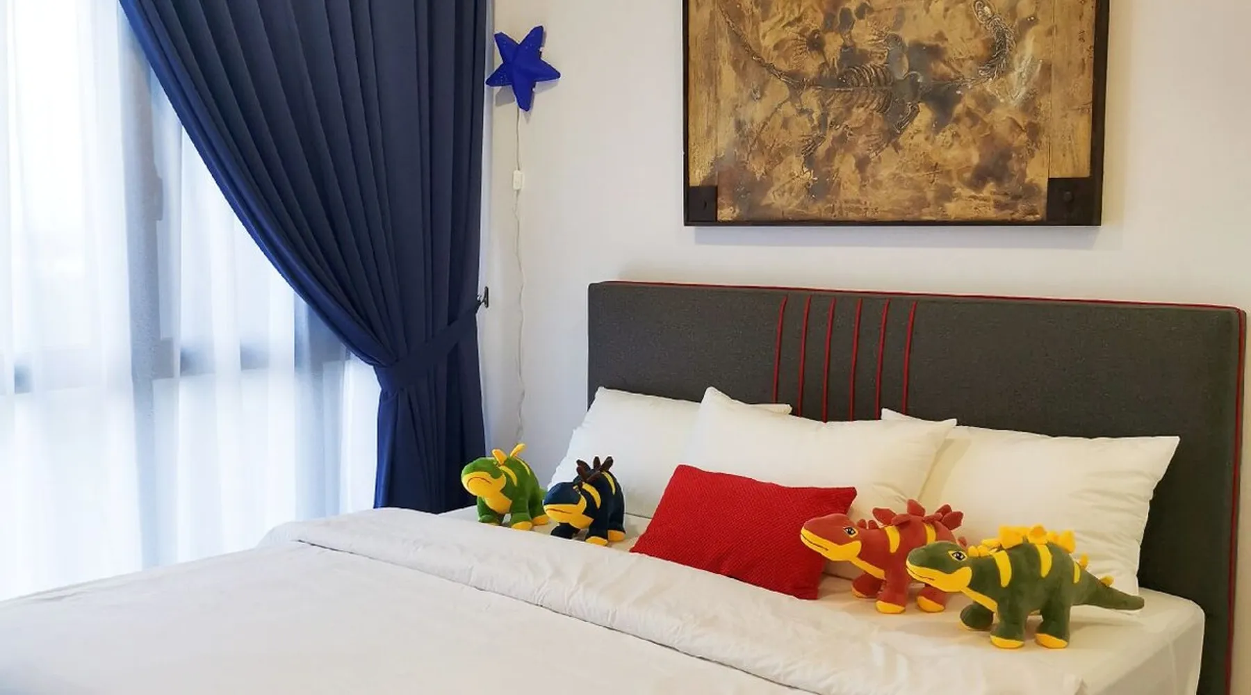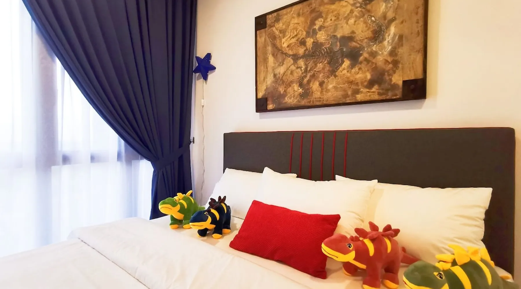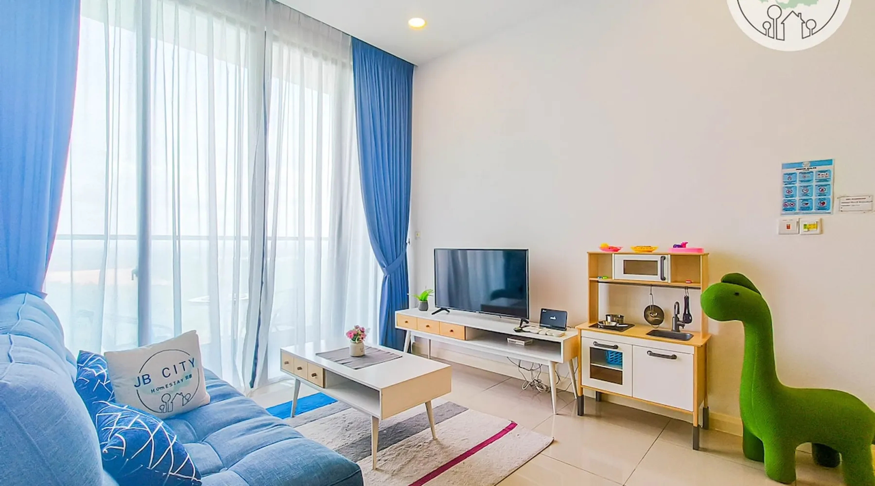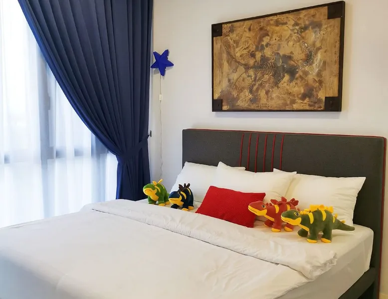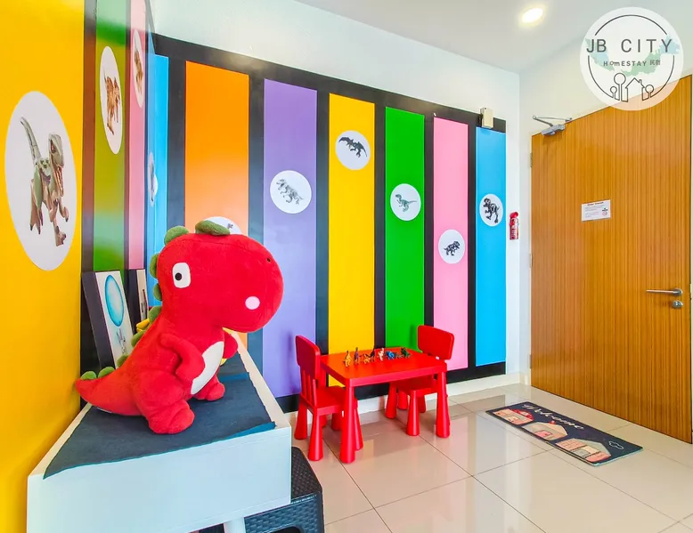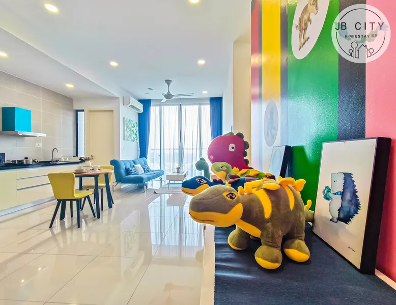 [NEW] Cozy and cutie Dinosaur theme One-bedroom unit in "D' Pristine Residences". Nearest condominium to Legoland and Medini Mall with only 3-5 min walking distance. The Condo is within 5 minutes' walking distance to Medini Mall Grocery market, restaurants, and Legoland Theme Park, making it the best place to stay at if you are visiting Legoland with your family! Your's kids will confirm love the home with all cutie Dinosaur dream home. The space Colorful Dinosaur design, spacious 1-bedroom unit that make your vacation colorful memory. " Your home away from home" The feature: - Bedroom 1: King size bed - Common space: 1 Sofa Bed Fully air conditioning, 43' inch smart TV (Youtube & Netflix), washing machine, refrigerator, water heater, Free WIFI internet Fully equipped kitchen with electric stove and Microwave, provided basic cooking tools such as Frying pan, pot, Kettle and utensils. ! Kitchen play and dinosaur toys included for your kids to play! Bathrooms equipped with hot shower, body and hair shampoo and towels are supplied for 2 guest. Surrounding Enviroment: Opposite Legoland Malaysia and Mall of Medini. Walking distance to Legoland Theme Park and Gleneagle Hospital. Mall of Medini - where you can find lots of cafe and restaurants i.e Starbucks Coffee, Thai restaurant, Local chinese food, Old Town White Coffee, KFC and more. B.I.G Grocery, convenient shop, pharmacy and money changes is just across the street, traveler easy to get necessary need from Mall of medini Guest access Facilities at Level 9 : • Swimming Pool • Gym • Playground **ALL FACILITIES CLOSED DURING CMCO (Except for the swimming pool)** Other things to note Please Read Before Make a Reservation 1. We will collect security deposit RM 200 by ONLINE TRANSFER before check in (Refundable within 24hour after check out) 2. Only full vaccinated guest is allowed to check in. 3. Keys Card collection point is at different place (Pangsapuri meridian) nearby medini area. 4. our units are strictly no smoking (Penalty RM100 if smell smoking) 5. Swimwear is compulsory for use of swimming pool ( Penalty RM100) if no follow the management rules