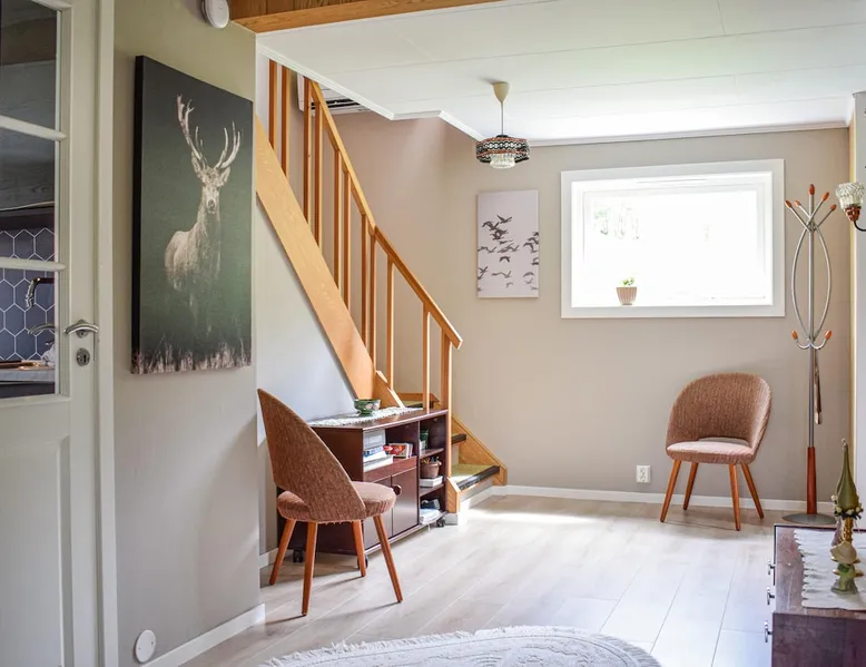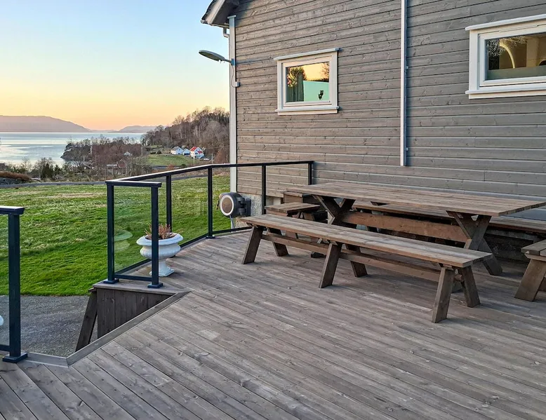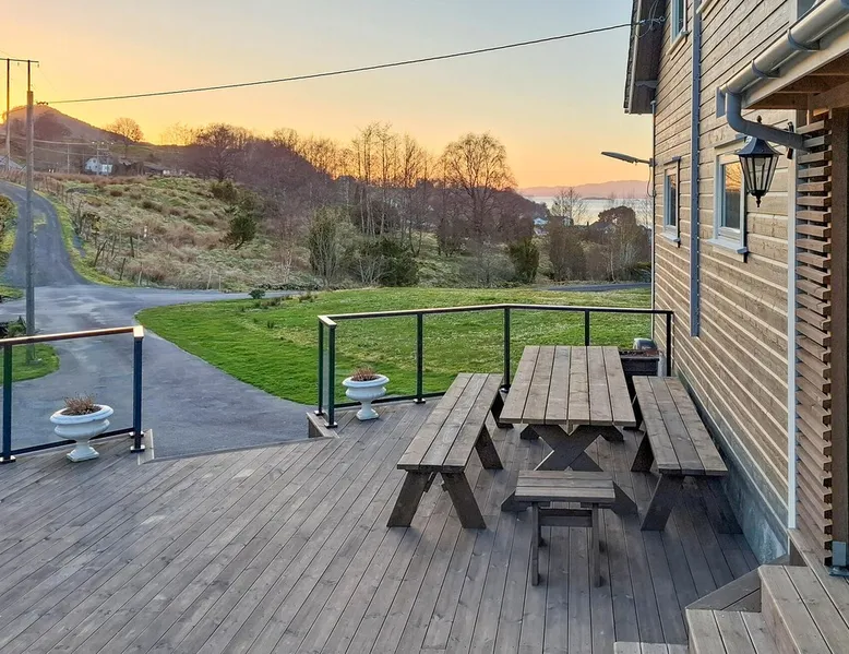 Cosy holiday home with a magnificent view of the Bjoafjord. The space Cosy holiday home with a magnificent view of the Bjoafjord. In the very north of the province of Rogaland, you can stay in a fantastic holiday home with the best view of the water from several terraces. The typically built wooden house on a large plot sleeps up to nine people comfortably, making it ideal for a group holiday with family or friends. You can go fishing, swimming, hiking or climbing together, and there is a private sandy beach on the property. Climb to the top of Mount Gråhorgja and enjoy unforgettable views on a clear day. Experience mighty waterfalls, visit the famous Trolltunga or the pretty little towns in Haugalandet. Here you will also find some of the most beautiful sandy beaches in Norway. After a long, active holiday full of impressions, you will always look forward to returning to your cosy home. Look forward to an impressive, relaxing holiday. Can comfortably fit up to 9 people Other things to note Please note that: Bed linen and towels are not included in the room rate in 2025; guests can rent them at the property for an additional charge of NOK 150.00 per person, or bring their own. Consumption costs are not included in the room rate and will be charged according to guest use within three weeks after check-out.