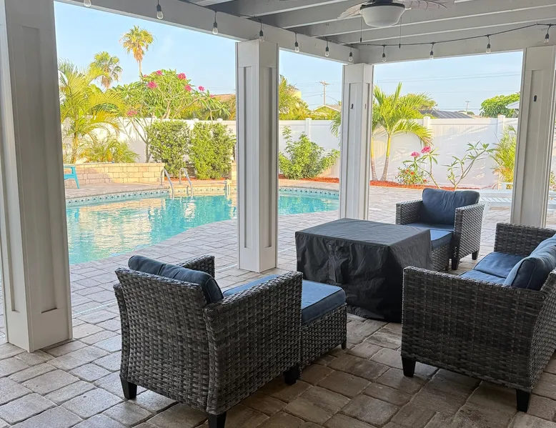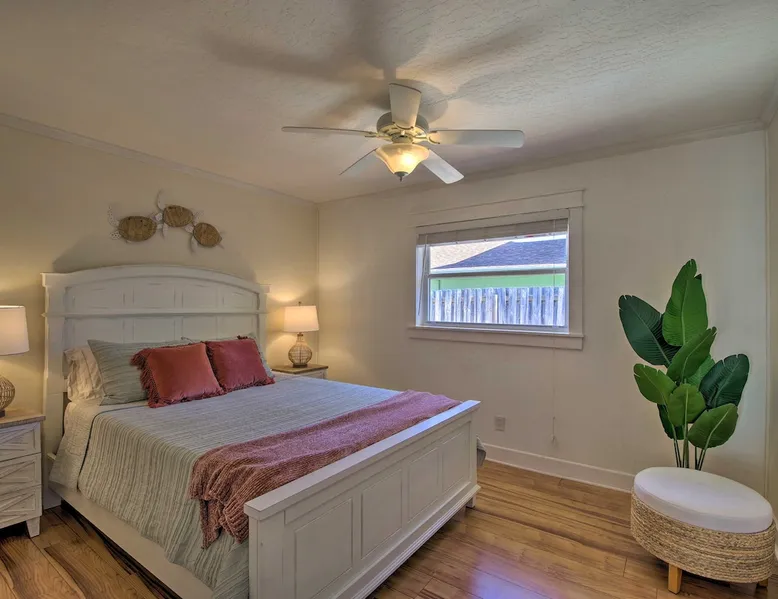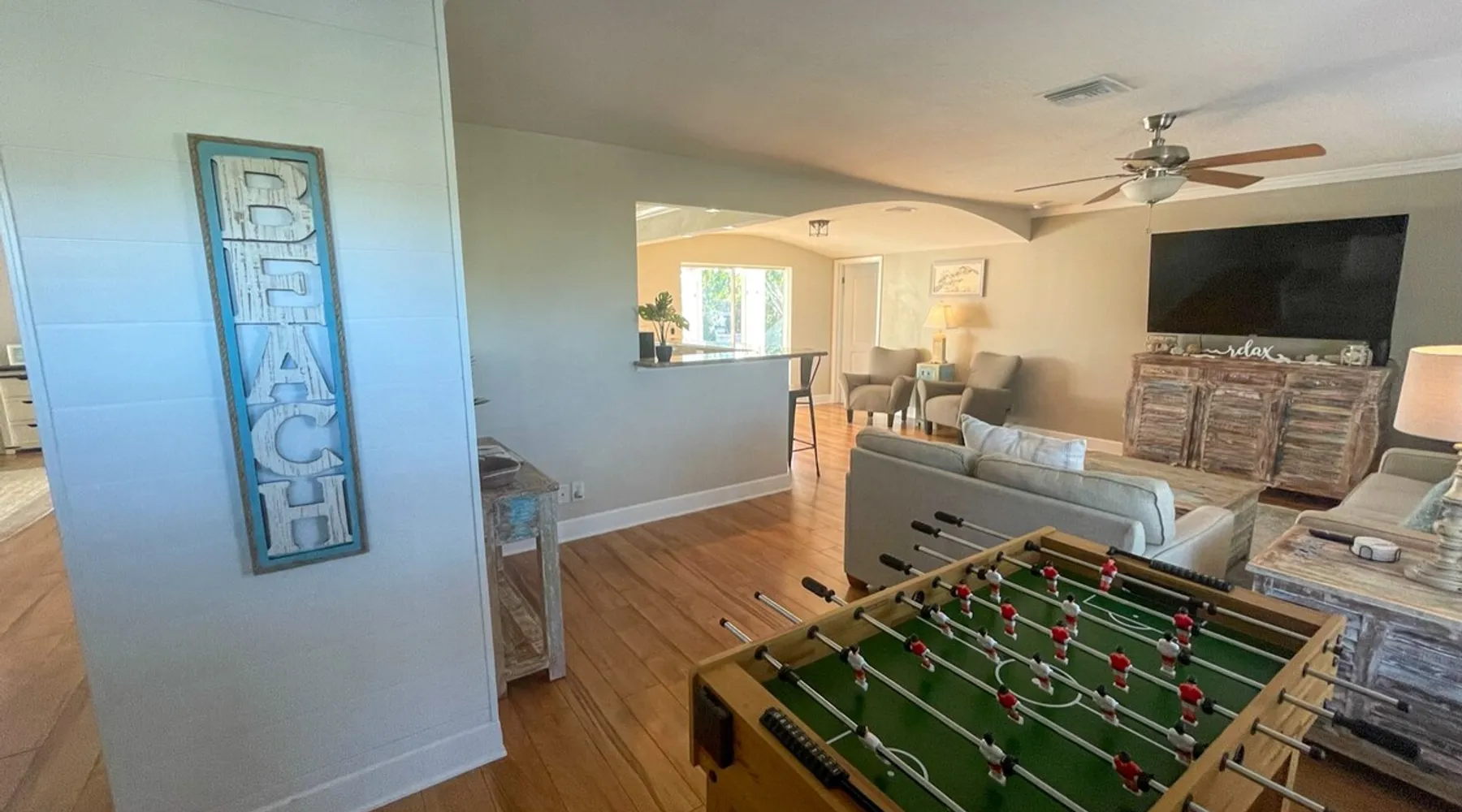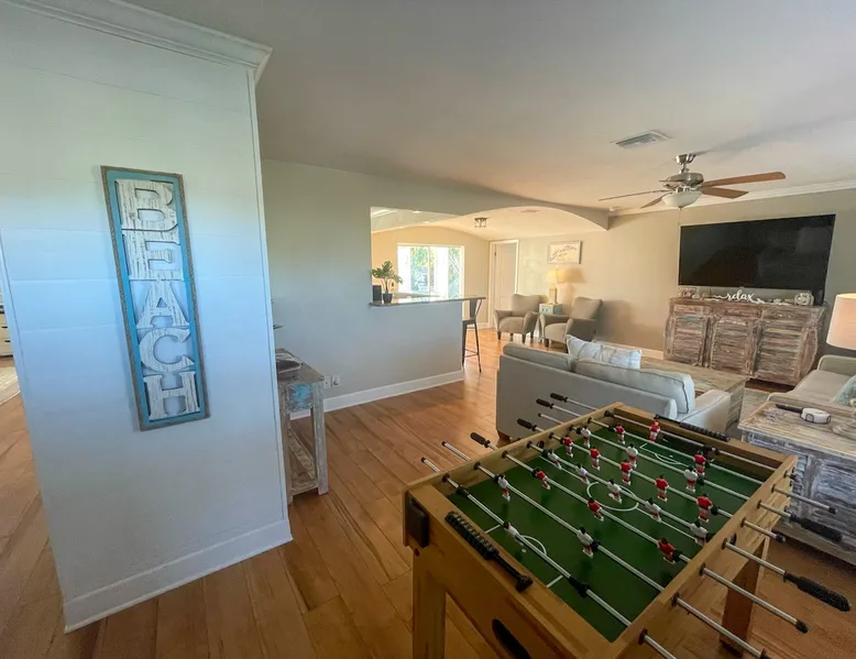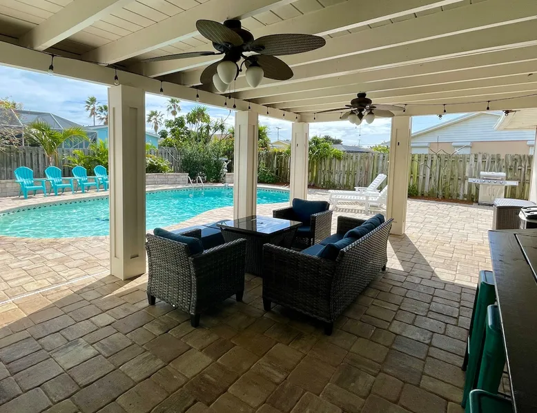 Heated Pool & Walk to the Beach! Everything you need in this comfortable 4 bedroom, 2 bath coastal beachside house only 0.4 mile from the beach! Enjoy the heated saltwater pool, covered outdoor patio, propane fire pit table, and grill. The house has great open spaces, and the kitchen is fully stocked. There is also everything you need for a great time at the beach. Guest access They entire house and property is available for you to use and enjoy! You will be assigned a code to lock and unlock the smart lock on the front door. Other things to note This is a new listing, but an existing property and guest host. We have been happily hosting guests for over 2 years. Some things our previous guests have said: We had a fantastic time staying here! The house was spotless and very spacious for our group. The heated pool was also a great feature. Our host was very responsive, helpful, and flexible and we greatly appreciated her hospitality. The house was also located in a very nice area. I would highly recommend this Airbnb! was the perfect place to celebrate my birthday with my family. Pool area was a hit with the grandkids. Kitchen well stocked and house was very clean. Would definitely stay there again! The place is very nice! Clean, confortable, very well equipped with all we need for cooking, grilling and plenty of supplies! Highly recommend! The beach house was perfect. Our kids enjoyed swimming in the salt water pool in the backyard and when we had time we just walked maybe 10 minutes to the beach! The hosts were friendly and even let us check in a little early. Highly recommend!