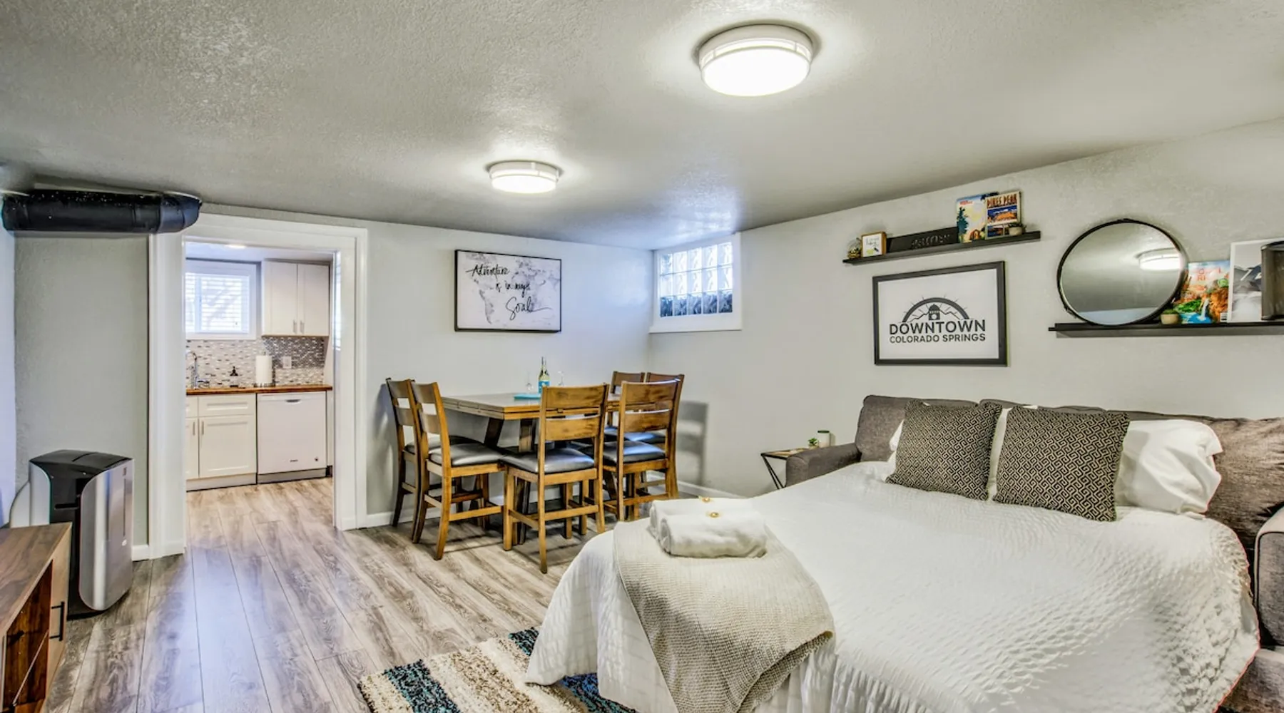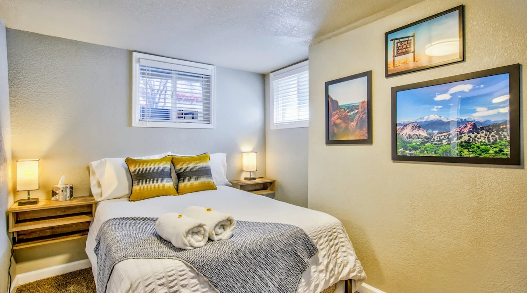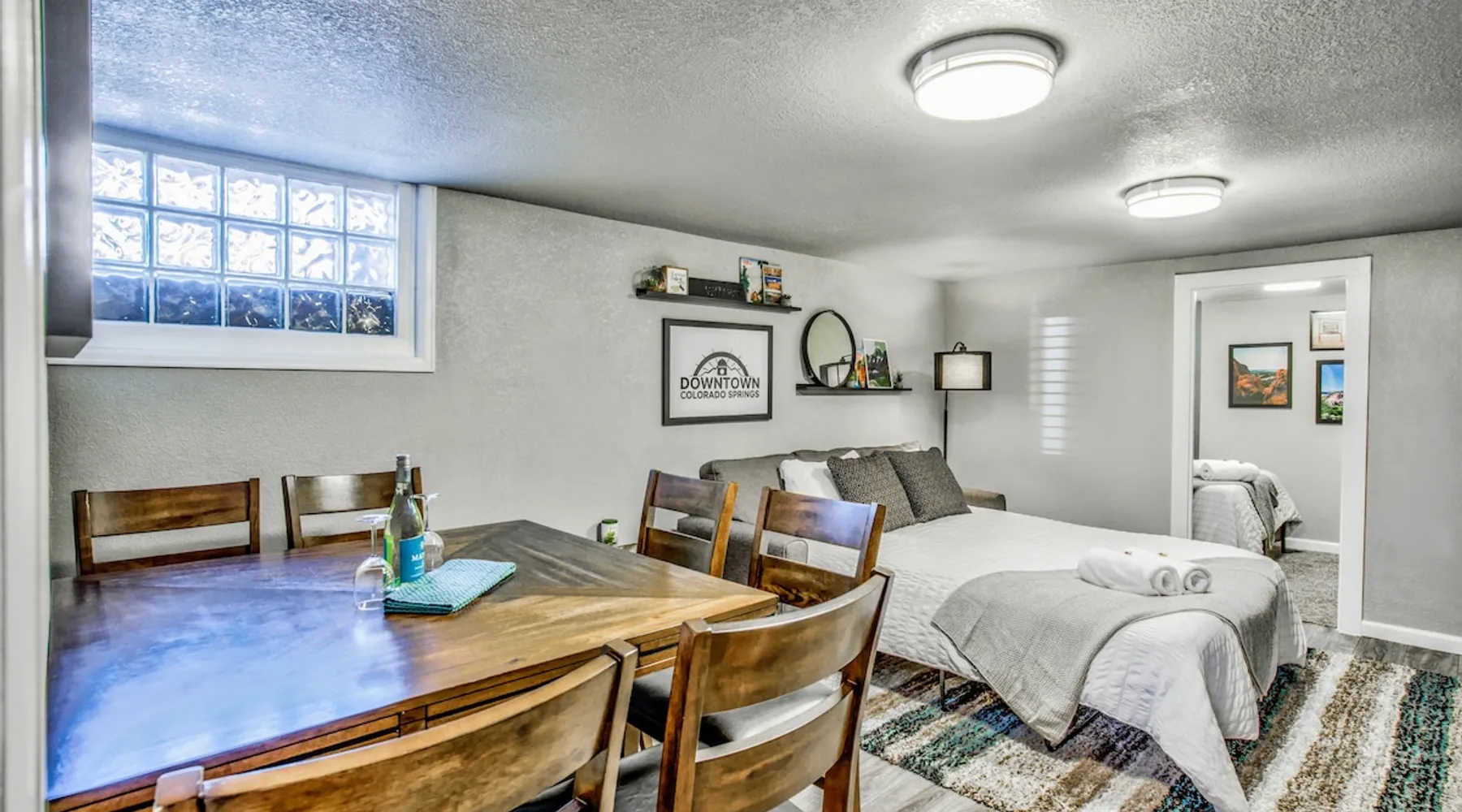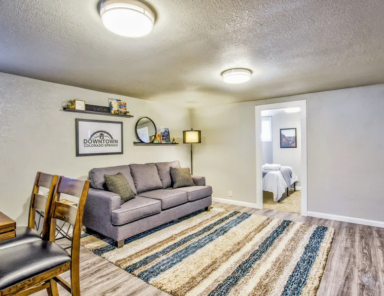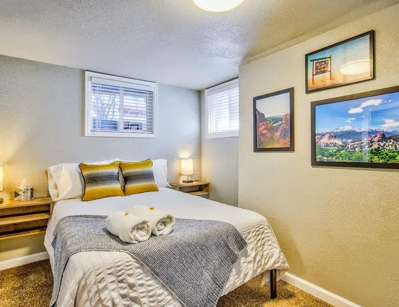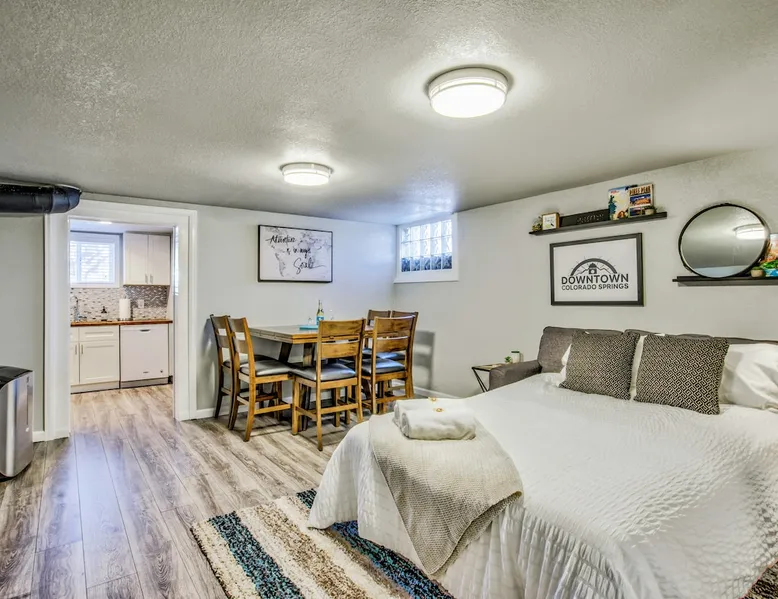 Welcome to Olympic Flat! This lower-level unit blends early 20th-century Santa Fe-style architecture with modern comforts. Ideally located, it’s perfect for a night out downtown or a quick walk to the Olympic Training Center. 📍 Minutes from downtown, shops & dining. 🚗 Short drive to Garden of the Gods & Pikes Peak 🍳 Fully stocked kitchen with Keurig 💨 Ultra-fast WiFi & 55” Roku Smart TV 🔥 Shared backyard with a hot tub, BBQ & fire pit Book now for a cozy Colorado Springs stay! The space Welcome to Olympic Flat, a thoughtfully restored 1926 Santa Fe-style home in the heart of Colorado Springs. This lower-level unit offers private access and blends historic charm with modern conveniences. Just minutes from downtown, Garden of the Gods, and the Olympic Training Center, it's the perfect home base for exploring. 🌳 Backyard Enjoy the shared backyard, featuring a BBQ grill for outdoor cooking, a fire pit for cozy evenings, and a large hot tub to unwind after a day of adventure. This space is shared with other Airbnb guests, creating an opportunity to connect with fellow travelers. 🛋️ Living Room The spacious and inviting living area features a 55” Roku Smart TV, perfect for streaming your favorite shows. The queen-sized pull-out sofa with a memory foam mattress provides extra sleeping space for additional guests. 🍳 Kitchen Whether you're preparing a home-cooked meal or reheating takeout, the fully stocked kitchen has everything you need, including pots, pans, spices, and essential utensils. The dining table seats six, making it a great space for meals and conversations. Start your day with fresh coffee from the Keurig, stocked with coffee pods and creamer. 🛏️ Rooms & Beds Each bedroom is designed for comfort, featuring high-quality bedding and plush pillows. One bedroom includes a desk and chair, ideal for remote work with fiber WiFi (500+ Mbps). A pack 'n play and highchair are available for guests traveling with little ones. 🛏️ Bedroom 1: Queen Bed 🛏️ Bedroom 2: Queen Bed 🛏️ Living Room: Queen-sized pull-out sofa with memory foam mattress 🛁 Bathroom The modern stand-up tile shower is stocked with shampoo, conditioner, body wash, hand soap, lotion, and feminine products. A hairdryer, first aid kit, cotton swabs, and extra toilet paper are also provided for your convenience. 🧺 Laundry A shared laundry room is located just outside the main entrance, equipped with a washer, dryer, iron, ironing board, and detergent. Please note that our cleaning team may use the laundry facilities between 10 AM and 4 PM during unit cleans. This charming flat is perfect for couples, families, or small groups looking for a cozy and well-located stay in Colorado Springs! Guest access 🔑 For a seamless check-in experience, you'll receive a unique code via message along with your check-in instructions on the morning of your arrival. You'll use this code for keyless entry. ☕ We've also prepared a starter supply that includes paper towels, coffee K-cups, toilet paper, shampoo, body wash, and plush white towels! We hope these amenities add an extra touch of comfort to your stay. Other things to note 📜 Rental Agreement: For a seamless booking experience, a Rental Agreement is required for all reservations. Once your reservation is confirmed, we’ll provide details for completing the agreement. 🔑 Check-In Process: For a seamless check-in experience, your unique code along with your check-in instructions will be updated into your personalized guidebook on the morning of your arrival. You’ll use this code for entry. ☕ Starter Supply: We’ve prepared a starter supply that includes paper towels, coffee K-cups, toilet paper, shampoo, body wash, and plush white towels! We hope these amenities add an extra touch of comfort to your stay. ⏰ Unauthorized Late Checkout Fee: $20 Per Half Hour Late 💵 Additional Fees: Optional services, including early check-in, late check-out, and additional guests, can be arranged upon request and are subject to availability. These additional fees help cover the cost of reworking the schedule or adding an additional cleaner if needed. Please message us ahead of time for pricing and availability. 🚫 No pets, no parties, and no smoking anything inside. 🚗 We are on the corner of a high traffic street, but we have plenty of free street parking on our side street and some parking in the back off of the alley too! 💧 We frequently drain and refill our hot tub so that it is clean and sanitary for all of our guests! Our water comes from the Rocky Mountains at crazy cold temperatures in the winter - sometimes as low as 48°F. Our hot tub heats at about 6°F per hour, which means it will be heated to 102°F later in the evening when it has been drained and refilled earlier in the day. You may see the temperature in the 60s or 70s when you arrive, but rest assured, it is heating as fast as possible and will be ready for enjoyment later in the evening.