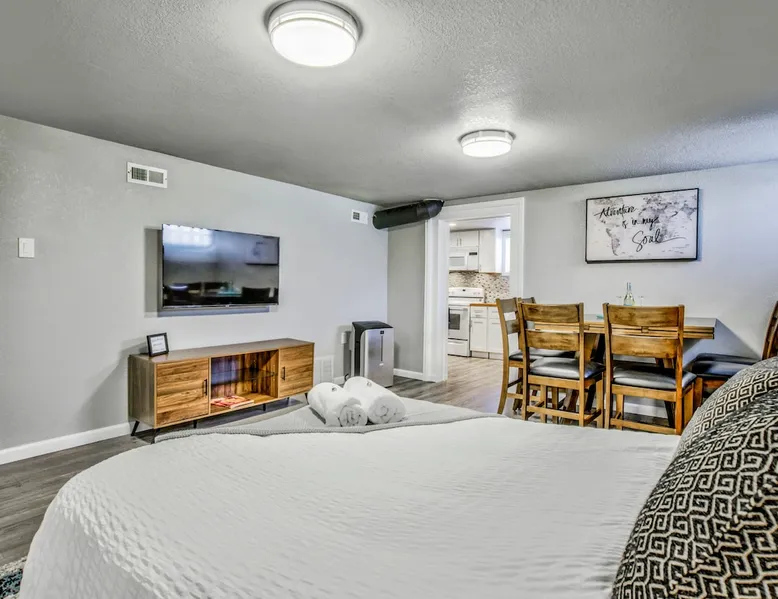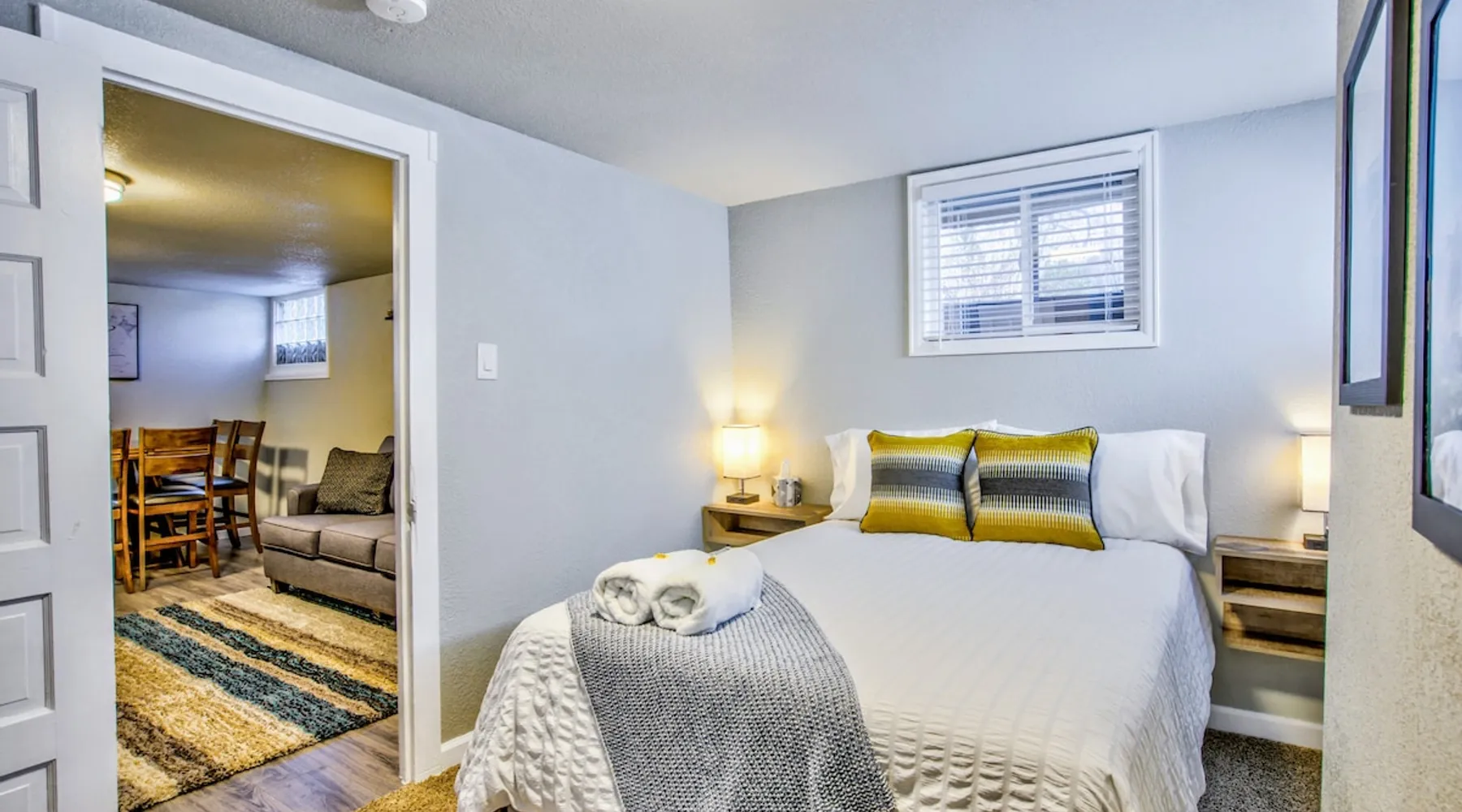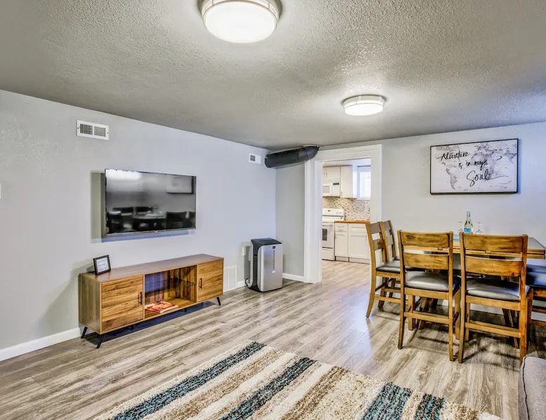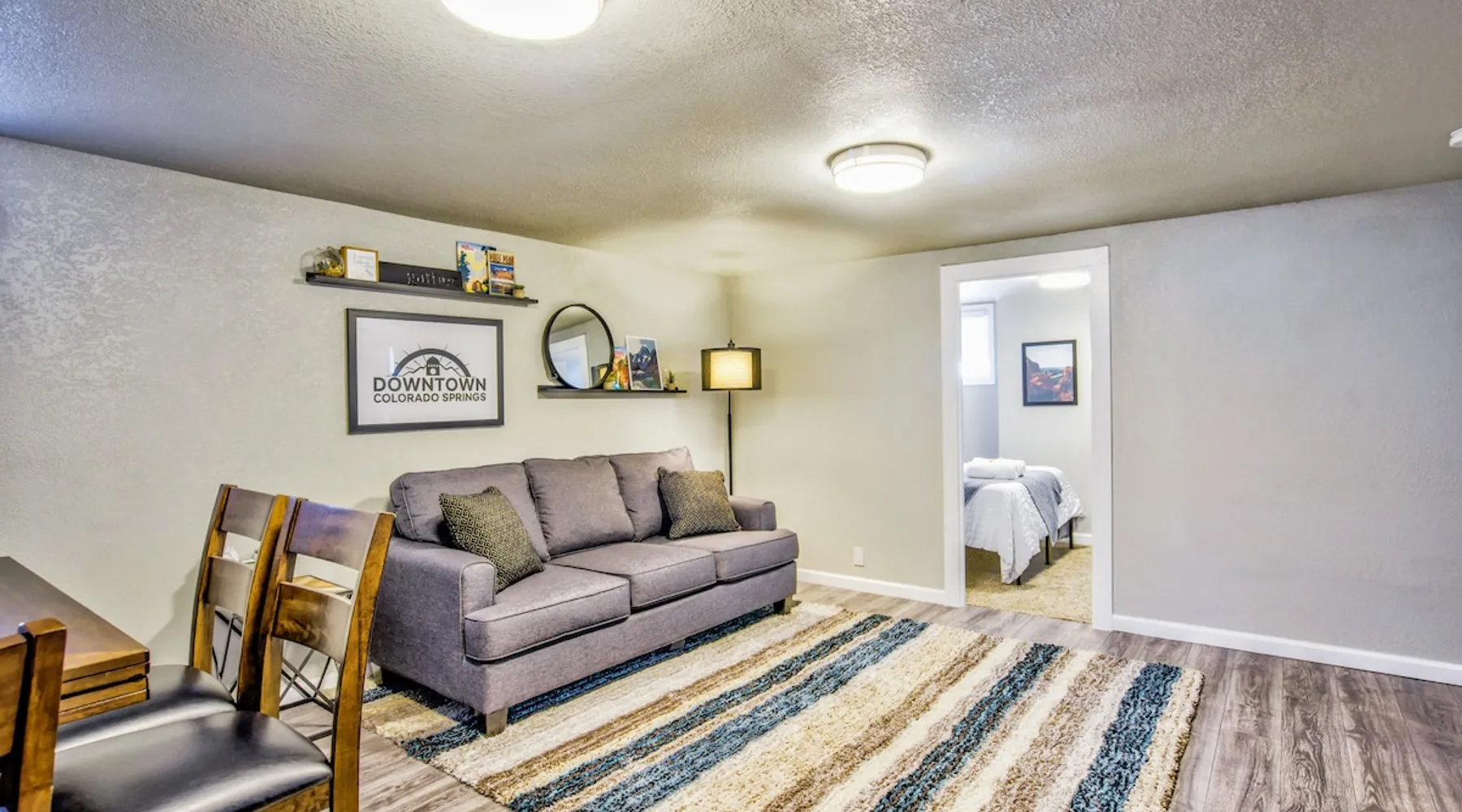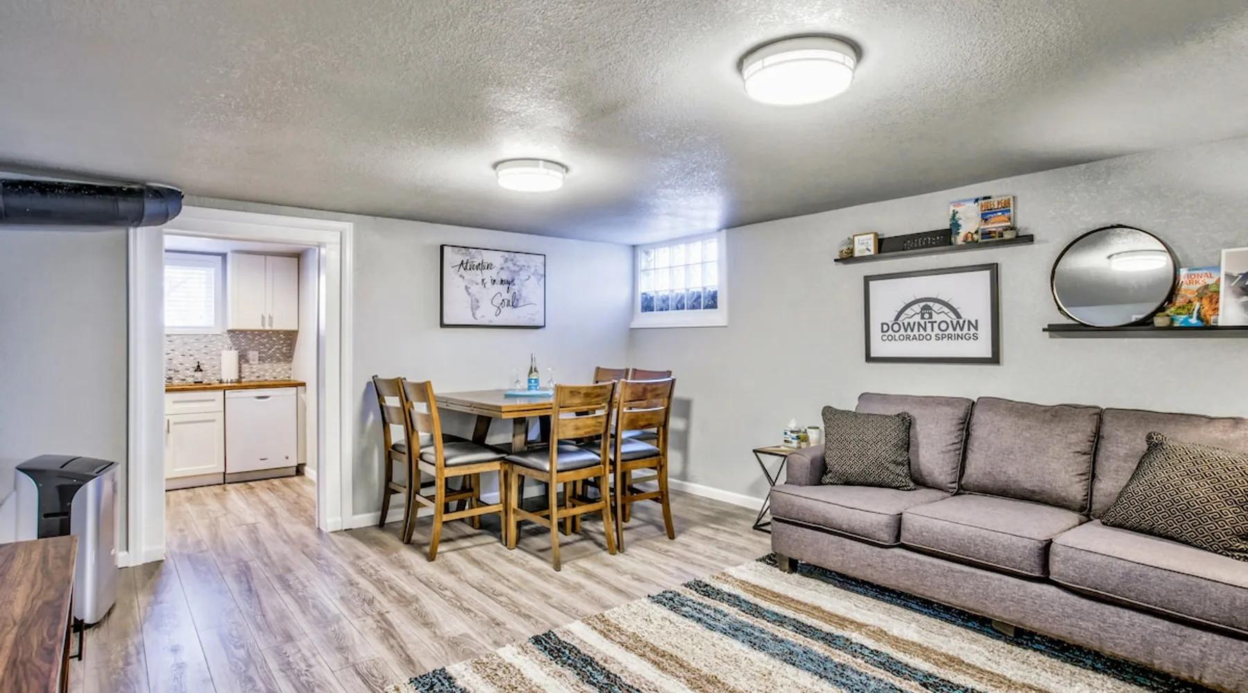 Welcome to Olympic Flat! This lower-level unit blends early 20th-century Santa Fe-style architecture with modern comforts. Ideally located, it’s perfect for a night out downtown or a quick walk to the Olympic Training Center. 📍 Minutes from downtown, shops & dining. 🚗 Short drive to Garden of the Gods & Pikes Peak 🍳 Fully stocked kitchen with Keurig 💨 Ultra-fast WiFi & 55” Roku Smart TV 🔥 Shared backyard with a hot tub, BBQ & fire pit Book now for a cozy Colorado Springs stay! The space Welcome to Olympic Flat, a thoughtfully restored 1926 Santa Fe-style home in the heart of Colorado Springs. This lower-level unit offers private access and blends historic charm with modern conveniences. Just minutes from downtown, Garden of the Gods, and the Olympic Training Center, it's the perfect home base for exploring. 🌳 Backyard Enjoy the shared backyard, featuring a BBQ grill for outdoor cooking, a fire pit for cozy evenings, and a large hot tub to unwind after a day of adventure. This space is shared with other Airbnb guests, creating an opportunity to connect with fellow travelers. 🛋️ Living Room The spacious and inviting living area features a 55” Roku Smart TV, perfect for streaming your favorite shows. The queen-sized pull-out sofa with a memory foam mattress provides extra sleeping space for additional guests. 🍳 Kitchen Whether you're preparing a home-cooked meal or reheating takeout, the fully stocked kitchen has everything you need, including pots, pans, spices, and essential utensils. The dining table seats six, making it a great space for meals and conversations. Start your day with fresh coffee from the Keurig, stocked with coffee pods and creamer. 🛏️ Rooms & Beds Each bedroom is designed for comfort, featuring high-quality bedding and plush pillows. One bedroom includes a desk and chair, ideal for remote work with fiber WiFi (500+ Mbps). A pack 'n play and highchair are available for guests traveling with little ones. 🛏️ Bedroom 1: Queen Bed 🛏️ Bedroom 2: Queen Bed 🛏️ Living Room: Queen-sized pull-out sofa with memory foam mattress 🛁 Bathroom The modern stand-up tile shower is stocked with shampoo, conditioner, body wash, hand soap, lotion, and feminine products. A hairdryer, first aid kit, cotton swabs, and extra toilet paper are also provided for your convenience. 🧺 Laundry A shared laundry room is located just outside the main entrance, equipped with a washer, dryer, iron, ironing board, and detergent. Please note that our cleaning team may use the laundry facilities between 10 AM and 4 PM during unit cleans. This charming flat is perfect for couples, families, or small groups looking for a cozy and well-located stay in Colorado Springs! Guest access 🔑 For a seamless check-in experience, you'll receive a unique code via message along with your check-in instructions on the morning of your arrival. You'll use this code for keyless entry. ☕ We've also prepared a starter supply that includes paper towels, coffee K-cups, toilet paper, shampoo, body wash, and plush white towels! We hope these amenities add an extra touch of comfort to your stay. Other things to note 📜 Rental Agreement: For a seamless booking experience, a Rental Agreement is required for all reservations. Once your reservation is confirmed, we’ll provide details for completing the agreement. 🔑 Check-In Process: For a seamless check-in experience, your unique code along with your check-in instructions will be updated into your personalized guidebook on the morning of your arrival. You’ll use this code for entry. ☕ Starter Supply: We’ve prepared a starter supply that includes paper towels, coffee K-cups, toilet paper, shampoo, body wash, and plush white towels! We hope these amenities add an extra touch of comfort to your stay. ⏰ Unauthorized Late Checkout Fee: $20 Per Half Hour Late 💵 Additional Fees: Optional services, including early check-in, late check-out, and additional guests, can be arranged upon request and are subject to availability. These additional fees help cover the cost of reworking the schedule or adding an additional cleaner if needed. Please message us ahead of time for pricing and availability. 🚫 No pets, no parties, and no smoking anything inside. 🚗 We are on the corner of a high traffic street, but we have plenty of free street parking on our side street and some parking in the back off of the alley too! 💧 We frequently drain and refill our hot tub so that it is clean and sanitary for all of our guests! Our water comes from the Rocky Mountains at crazy cold temperatures in the winter - sometimes as low as 48°F. Our hot tub heats at about 6°F per hour, which means it will be heated to 102°F later in the evening when it has been drained and refilled earlier in the day. You may see the temperature in the 60s or 70s when you arrive, but rest assured, it is heating as fast as possible and will be ready for enjoyment later in the evening.
