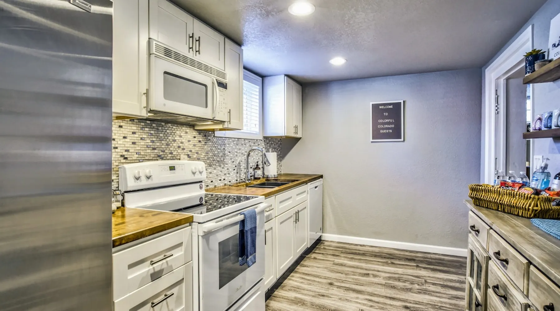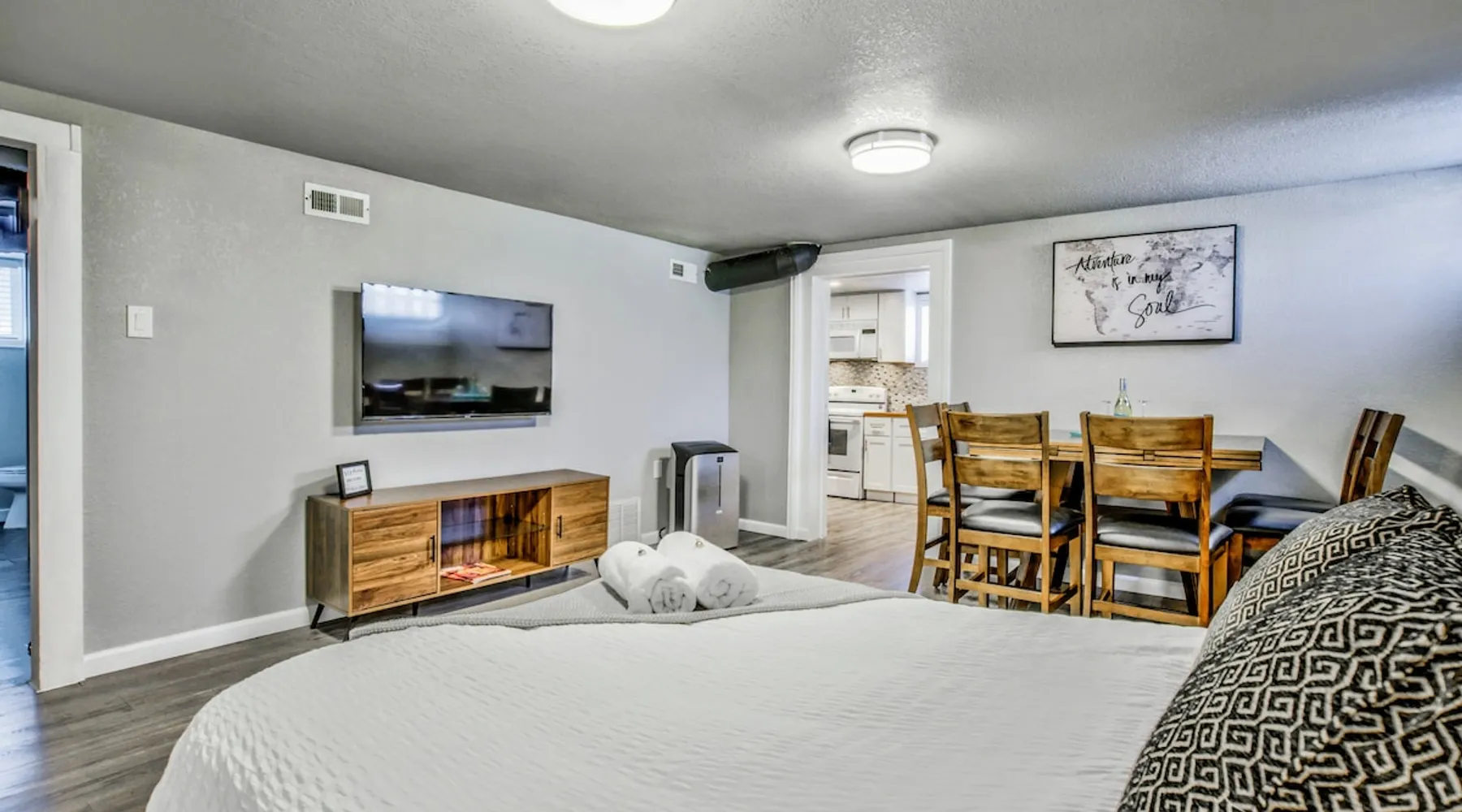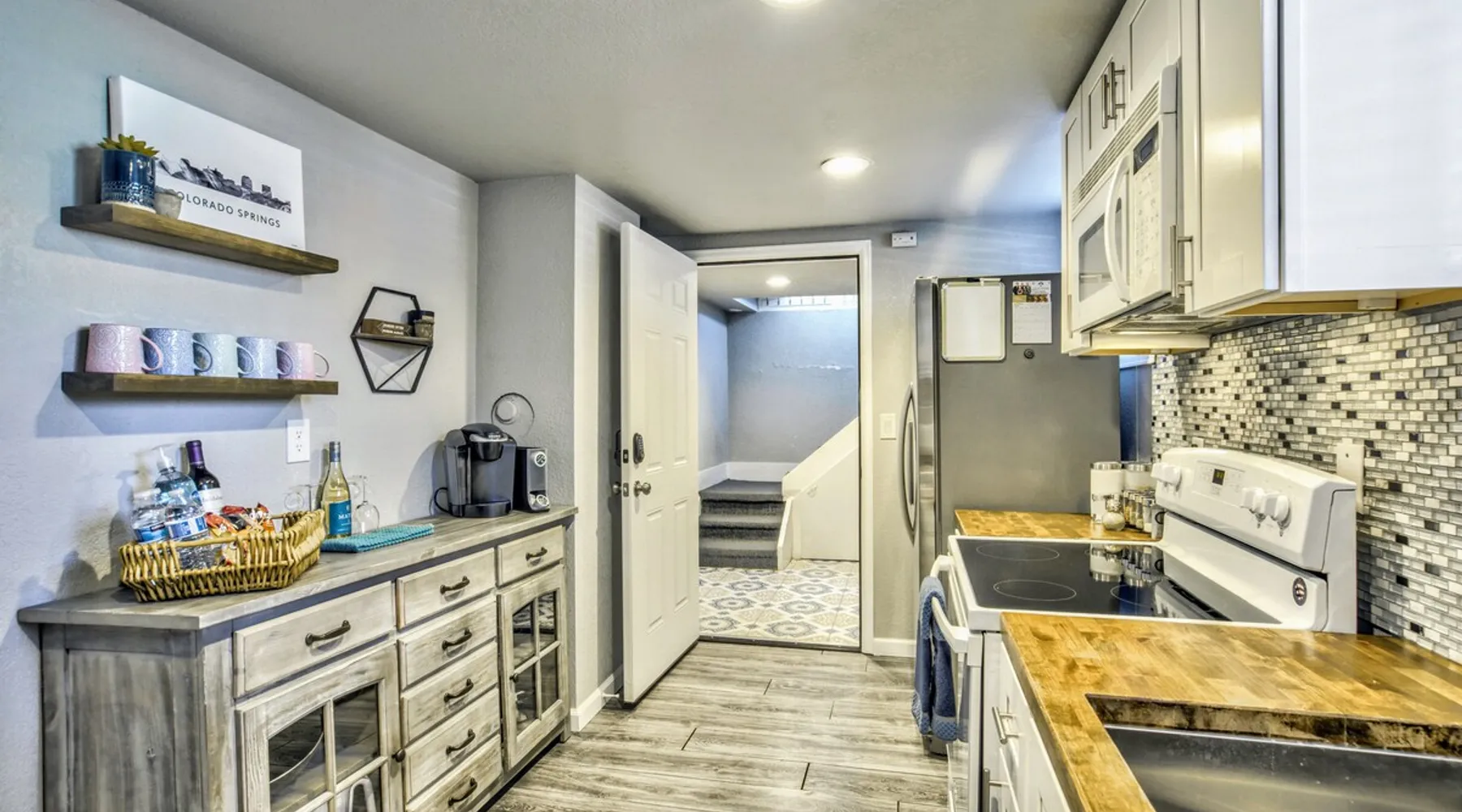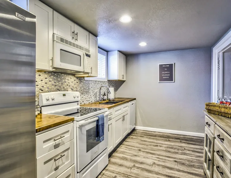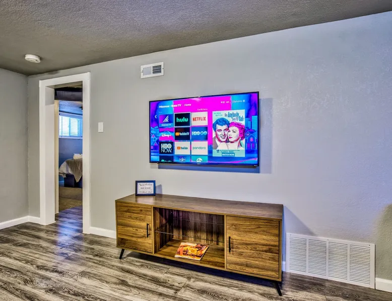 Welcome to Olympic Flat! This lower-level unit blends early 20th-century Santa Fe-style architecture with modern comforts. Ideally located, it’s perfect for a night out downtown or a quick walk to the Olympic Training Center. 📍 Minutes from downtown, shops & dining. 🚗 Short drive to Garden of the Gods & Pikes Peak 🍳 Fully stocked kitchen with Keurig 💨 Ultra-fast WiFi & 55” Roku Smart TV 🔥 Shared backyard with a hot tub, BBQ & fire pit Book now for a cozy Colorado Springs stay! The space Welcome to Olympic Flat, a thoughtfully restored 1926 Santa Fe-style home in the heart of Colorado Springs. This lower-level unit offers private access and blends historic charm with modern conveniences. Just minutes from downtown, Garden of the Gods, and the Olympic Training Center, it's the perfect home base for exploring. 🌳 Backyard Enjoy the shared backyard, featuring a BBQ grill for outdoor cooking, a fire pit for cozy evenings, and a large hot tub to unwind after a day of adventure. This space is shared with other Airbnb guests, creating an opportunity to connect with fellow travelers. 🛋️ Living Room The spacious and inviting living area features a 55” Roku Smart TV, perfect for streaming your favorite shows. The queen-sized pull-out sofa with a memory foam mattress provides extra sleeping space for additional guests. 🍳 Kitchen Whether you're preparing a home-cooked meal or reheating takeout, the fully stocked kitchen has everything you need, including pots, pans, spices, and essential utensils. The dining table seats six, making it a great space for meals and conversations. Start your day with fresh coffee from the Keurig, stocked with coffee pods and creamer. 🛏️ Rooms & Beds Each bedroom is designed for comfort, featuring high-quality bedding and plush pillows. One bedroom includes a desk and chair, ideal for remote work with fiber WiFi (500+ Mbps). A pack 'n play and highchair are available for guests traveling with little ones. 🛏️ Bedroom 1: Queen Bed 🛏️ Bedroom 2: Queen Bed 🛏️ Living Room: Queen-sized pull-out sofa with memory foam mattress 🛁 Bathroom The modern stand-up tile shower is stocked with shampoo, conditioner, body wash, hand soap, lotion, and feminine products. A hairdryer, first aid kit, cotton swabs, and extra toilet paper are also provided for your convenience. 🧺 Laundry A shared laundry room is located just outside the main entrance, equipped with a washer, dryer, iron, ironing board, and detergent. Please note that our cleaning team may use the laundry facilities between 10 AM and 4 PM during unit cleans. This charming flat is perfect for couples, families, or small groups looking for a cozy and well-located stay in Colorado Springs! Guest access 🔑 For a seamless check-in experience, you'll receive a unique code via message along with your check-in instructions on the morning of your arrival. You'll use this code for keyless entry. ☕ We've also prepared a starter supply that includes paper towels, coffee K-cups, toilet paper, shampoo, body wash, and plush white towels! We hope these amenities add an extra touch of comfort to your stay. Other things to note 📜 Rental Agreement: For a seamless booking experience, a Rental Agreement is required for all reservations. Once your reservation is confirmed, we’ll provide details for completing the agreement. 🔑 Check-In Process: For a seamless check-in experience, your unique code along with your check-in instructions will be updated into your personalized guidebook on the morning of your arrival. You’ll use this code for entry. ☕ Starter Supply: We’ve prepared a starter supply that includes paper towels, coffee K-cups, toilet paper, shampoo, body wash, and plush white towels! We hope these amenities add an extra touch of comfort to your stay. ⏰ Unauthorized Late Checkout Fee: $20 Per Half Hour Late 💵 Additional Fees: Optional services, including early check-in, late check-out, and additional guests, can be arranged upon request and are subject to availability. These additional fees help cover the cost of reworking the schedule or adding an additional cleaner if needed. Please message us ahead of time for pricing and availability. 🚫 No pets, no parties, and no smoking anything inside. 🚗 We are on the corner of a high traffic street, but we have plenty of free street parking on our side street and some parking in the back off of the alley too! 💧 We frequently drain and refill our hot tub so that it is clean and sanitary for all of our guests! Our water comes from the Rocky Mountains at crazy cold temperatures in the winter - sometimes as low as 48°F. Our hot tub heats at about 6°F per hour, which means it will be heated to 102°F later in the evening when it has been drained and refilled earlier in the day. You may see the temperature in the 60s or 70s when you arrive, but rest assured, it is heating as fast as possible and will be ready for enjoyment later in the evening.