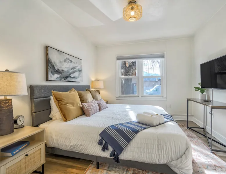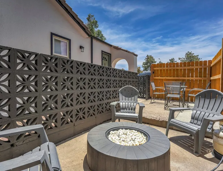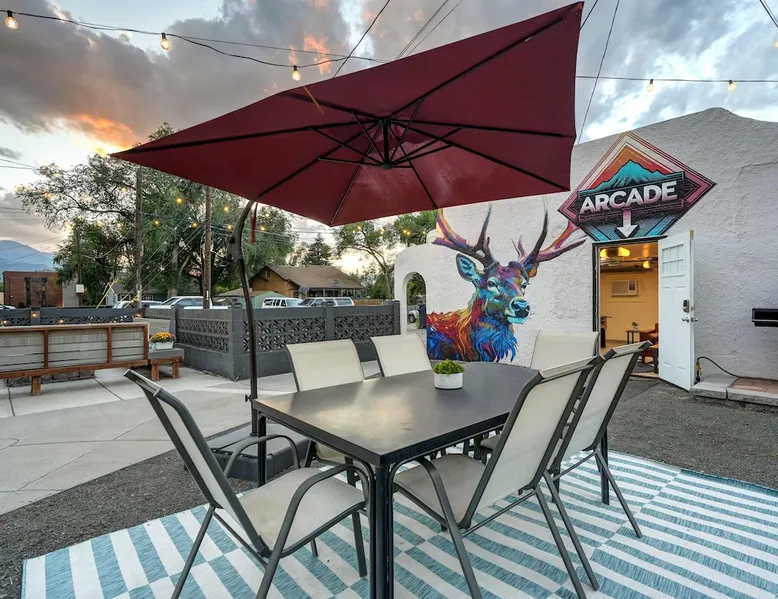 Welcome to Pike Breeze! Our newly remodeled main-level apartment, perfect for your Colorado Springs getaway! 🌄 Mountain views from the bedroom 🏙️ Minutes to downtown Colorado Springs 🚗 Close to Garden of the Gods, The Broadmoor, & Cheyenne Mountain Zoo 🎮 Shared arcade room with NBA Jam, Pac-Man, foosball, & skeeball 📶 Ultra-fast WiFi & 55” Roku Smart TV 🧺 In-unit washer & dryer for convenience Book now to explore all Colorado Springs has to offer! The space Welcome to your home away from home at Pikes Breeze! As you step into this newly remodeled unit, you'll be greeted by a private entrance and stunning mountain views right from the entryway. 🏡 Private Entrance Enjoy the luxury of complete privacy with your own entrance. The welcoming environment is perfect for relaxing after a day of exploring Colorado Springs. ✨ Stylish Interior Relax in a comfortable home that blends vintage and modern styles, ideal for spending quality time with family and friends. Enjoy the cozy ambiance and breathtaking views of the mountains. 🛏️ Rooms & Beds The unit comfortably sleeps up to 6 guests: Bedroom 1: 1 Queen Bed with a relaxing vintage-modern style Bedroom 2: 1 Queen Bed with large windows offering direct views of Pikes Peak Living Room: 1 Queen-sized pull-out sofa with a memory foam mattress 🛁 Bathroom The full bathroom is equipped with all the essentials, including toiletries, a hairdryer, makeup removal wipes, and emergency feminine products. 🔥 Outdoor Paradise Our newly landscaped backyard features a shared courtyard with a large, custom-built fire pit, a natural gas BBQ grill, and two corn hole sets. The outdoor dining area is perfect for soaking up the amazing Colorado weather with views of Pikes Peak. For a private retreat, enjoy the exclusive side yard separate from the shared space. 🌄 Mountain Views Take in the breathtaking mountain views from your entryway and the shared courtyard area, offering a picturesque backdrop to your stay. 🎮 Game Room Fun Enjoy access to a shared game room featuring retro arcade classics like NBA Jam and Pac-Man, alongside foosball, skeeball, and a TV. A great spot for some indoor fun and friendly competition! 🍳 Fully-Equipped Kitchen Cook up your favorite meals in the fully stocked kitchen, equipped with stainless steel appliances, cooking oils, spices, and all necessary utensils. Enjoy fresh coffee every morning with our Keurig, stocked with coffee pods and creamer. 🧺 Convenient Laundry Keep your clothes fresh with the in-unit stacked washer and dryer, perfect for refreshing your wardrobe after exploring nearby trails. 📜 Legal Compliance Rest easy knowing we are legally registered with the city, ensuring your booking is secure and compliant with local regulations. Guest access 🔑 Enjoy your own private retreat with full access to the entire unit and a shared backyard. Step into the game room, featuring foosball, skeeball, arcade games, and a TV—perfect for fun and relaxation. Contact us for availability on other units! Other things to note 📜 Rental Agreement: For a seamless booking experience, a Rental Agreement is required for all reservations. Once your reservation is confirmed, we’ll provide details for completing the agreement. 🔑 Check-In Process: For a seamless check-in experience, your unique code along with your check-in instructions will be updated into your personalized guidebook on the morning of your arrival. You’ll use this code for entry. ☕ Starter Supply: We’ve prepared a starter supply that includes paper towels, coffee K-cups, toilet paper, shampoo, body wash, and plush white towels! We hope these amenities add an extra touch of comfort to your stay. ⏰ Unauthorized Late Checkout Fee: $20 Per Half Hour Late 💵 Additional Fees: Optional services, including early check-in, late check-out, and additional guests, can be arranged upon request and are subject to availability. These additional fees help cover the cost of reworking the schedule or adding an additional cleaner if needed. Please message us ahead of time for pricing and availability. 🎮 Shared Game Room: During your stay, you'll have access to a shared game room featuring retro arcade games like NBA Jam and Pac-Man, as well as foosball, skeeball, and a TV—perfect for some indoor fun with fellow guests.