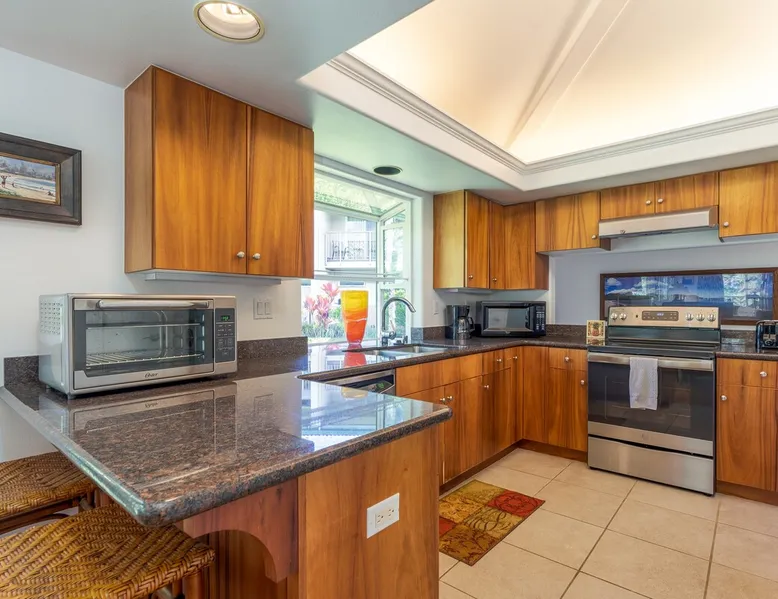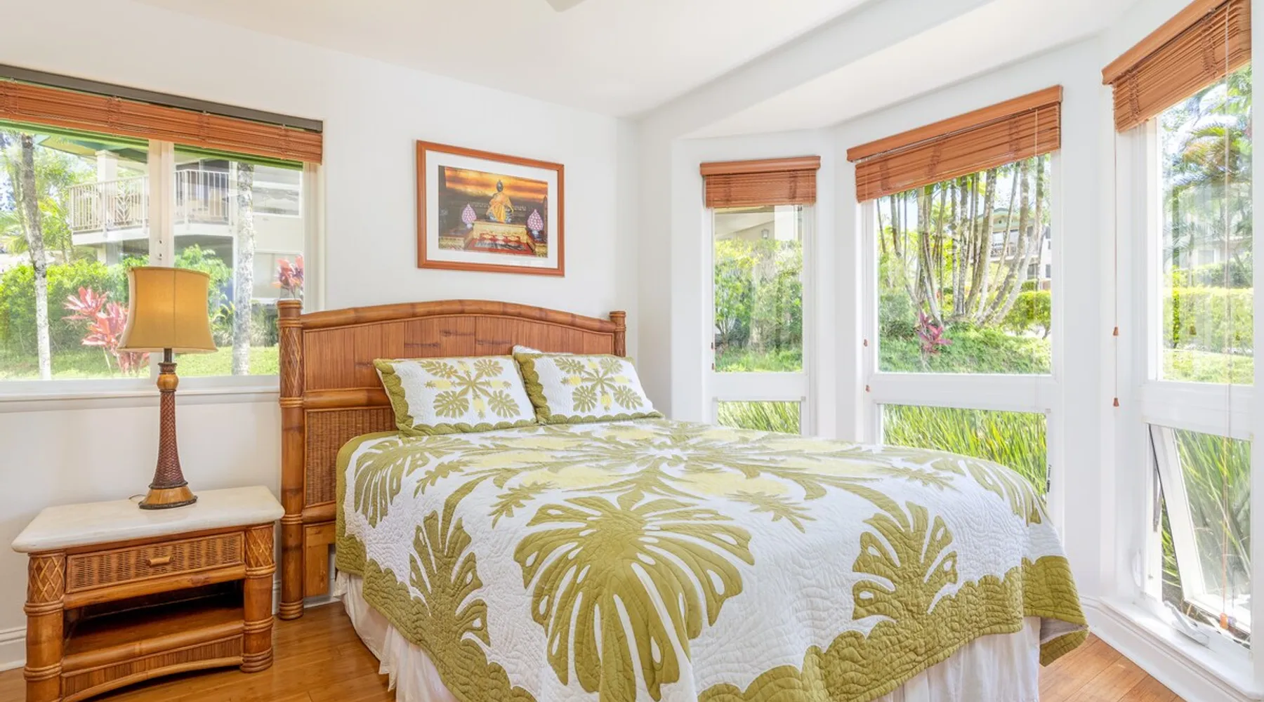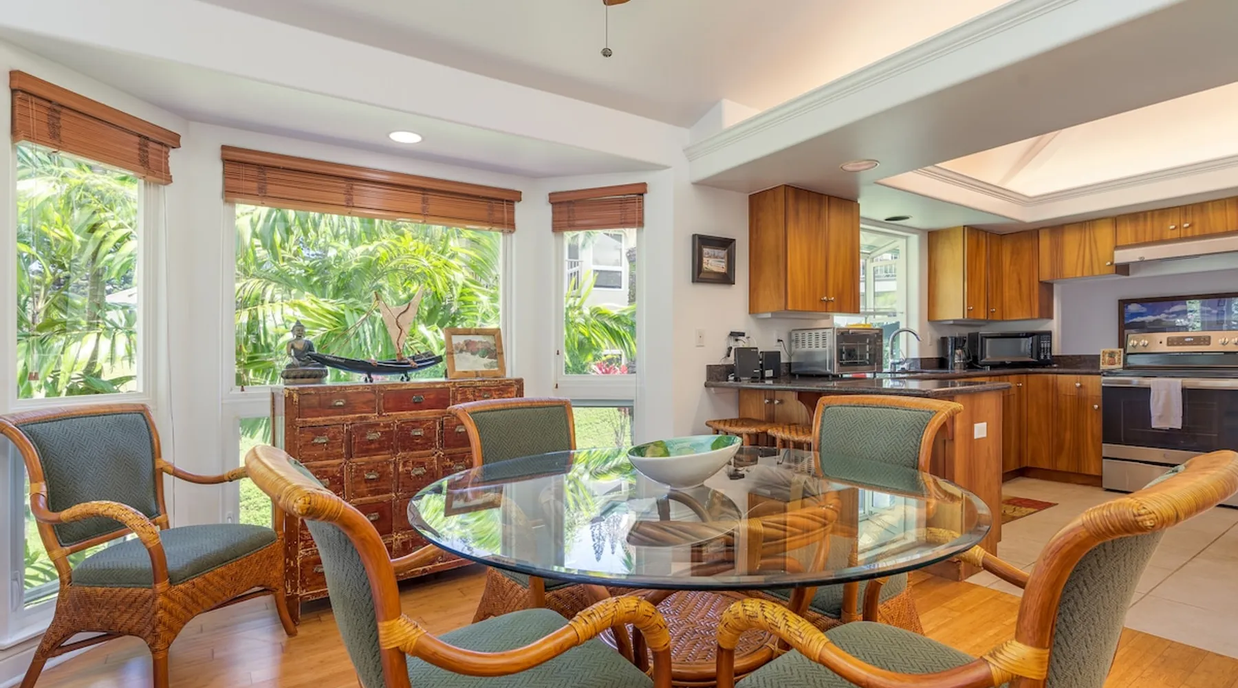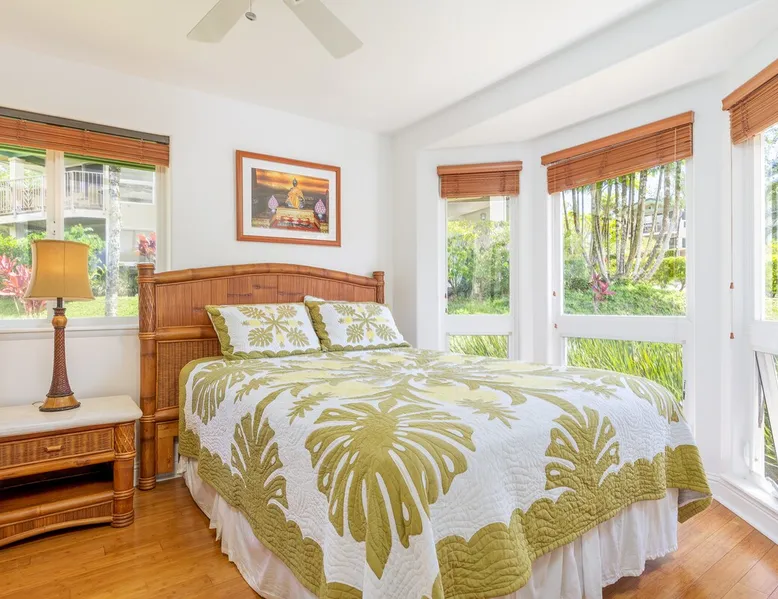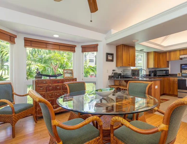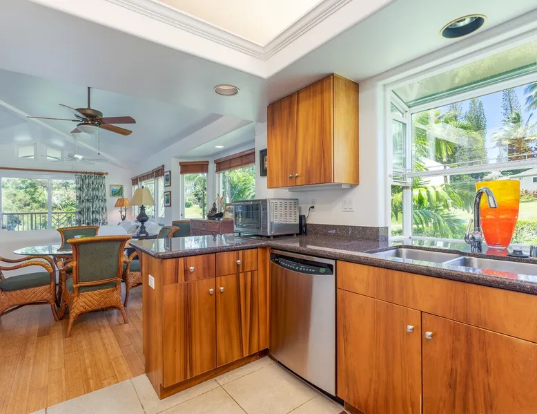 Hawaii Life Rentals Presents Villas of Kamali'i 38 - Located in the stunning Villas of Kamalii complex, this beautifully-appointed three-bedroom, three-bath townhouse-style condo serves as an excellent setting for your tropical getaway. The space ***DISCLOSURE 2/12/25: Home is listed for sale, and tenants may be required to accommodate showings with 48 hours notice. Located in the stunning Villas of Kamalii complex, this beautifully-appointed three-bedroom, three-bath townhouse-style condo serves as an excellent setting for your tropical getaway. Ideally located in Princeville on the north-side of Kauai, here you will have convenient access to stunning beaches, casual and fine dining restaurants, shopping, the Princeville Makai Golf Club, and is just a short drive away from world-famous Hanalei town! As you arrive, you will be immediately greeted by postcard-worthy mountain views, if you look closely you may even be able to see distant waterfalls cascading down the mountain faces! The meticulous landscaping around the Villas of Kamalii complex offers an abundance of tropical flora and fauna to create the tranquil oasis you have been dreaming of. Step inside your home and welcome the generous amounts of natural light from floor-to-ceiling windows that effortlessly bring the beauty of outside in. An open-layout allows for a gentle flow between spaces with multiple ceiling fans circulating Kauai’s cooling trade winds. A designated living area includes comfortable lounge seating and entertainment center, perfect for a relaxing movie-night at home! The sliding glass doors off the living room open to reveal a spacious, covered lanai with luscious garden views. Imagine sipping your morning coffee or afternoon cocktail while listening to a variety of island bird calls and distant ocean swells. Thoughtfully designed with you in mind, the spacious dining area sits adjacent to the kitchen with a lush backdrop through the wall of windows. The roomy kitchen grants space for multiple chefs and comes fully-equipped with all the essentials to prepare gourmet, island-inspired meals at home! The large refrigerator, ample countertops and cabinet space ensures sufficient storage for all your necessities. The L-shaped counter also serves as a cozy breakfast nook for two. Island-style furnishings and tropical decor sprinkled throughout the home elicit the peaceful vibes of Hawaii lifestyle. With three spacious bedrooms to choose from, everyone in your group will enjoy some privacy in their pleasant accommodations. Each bedroom features comfortable bedding, ceiling fans, lush views, and natural light. You will love waking up to the gentle Kauai breeze, soft sunshine, and the occasional rooster serving as your alarm clock! The two master suites offer a king size bed, private lanai, and ensuite bathroom. The third guest bedroom has a queen bed and convenient access to the hall bathroom. Additional amenities include a washer and dryer, internet, designated parking, and a variety of beach essentials including: Towels, Chairs, Umbrella, and Cooler Beach. The Villas of Kamalii grounds also include a community pool, hot tub, and barbecue grill. * No Air Conditioning * Hawaii Life Rentals is a locally owned, licensed real estate company with rentals on Kauai, Maui, Oahu, and Hawaii. We offer on-island personal assistance and Concierge services. Rates do not include taxes, cleaning and applicable fees. TA-028-989-8496-01 VRBO/Hawaii Life bookings: Guests must sign a rental contract within 48 hours of booking to confirm the reservation. Registration Details 540060010038, TA-028-989-8496-01