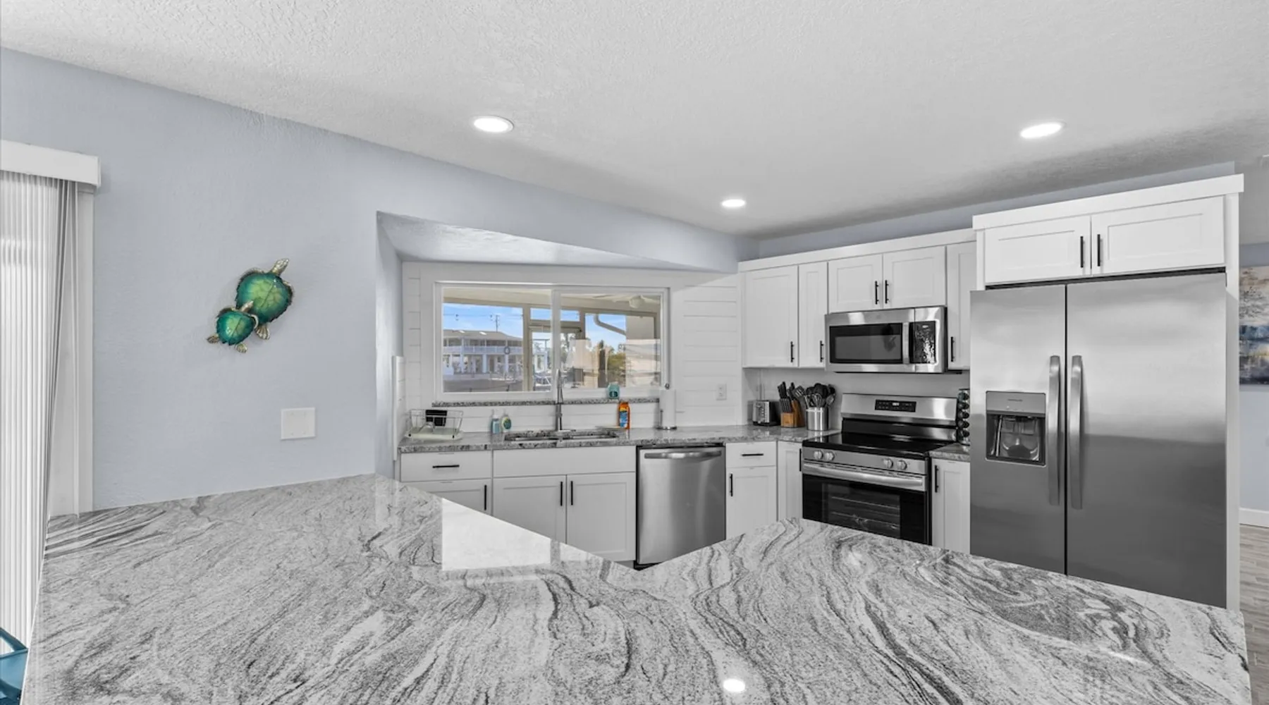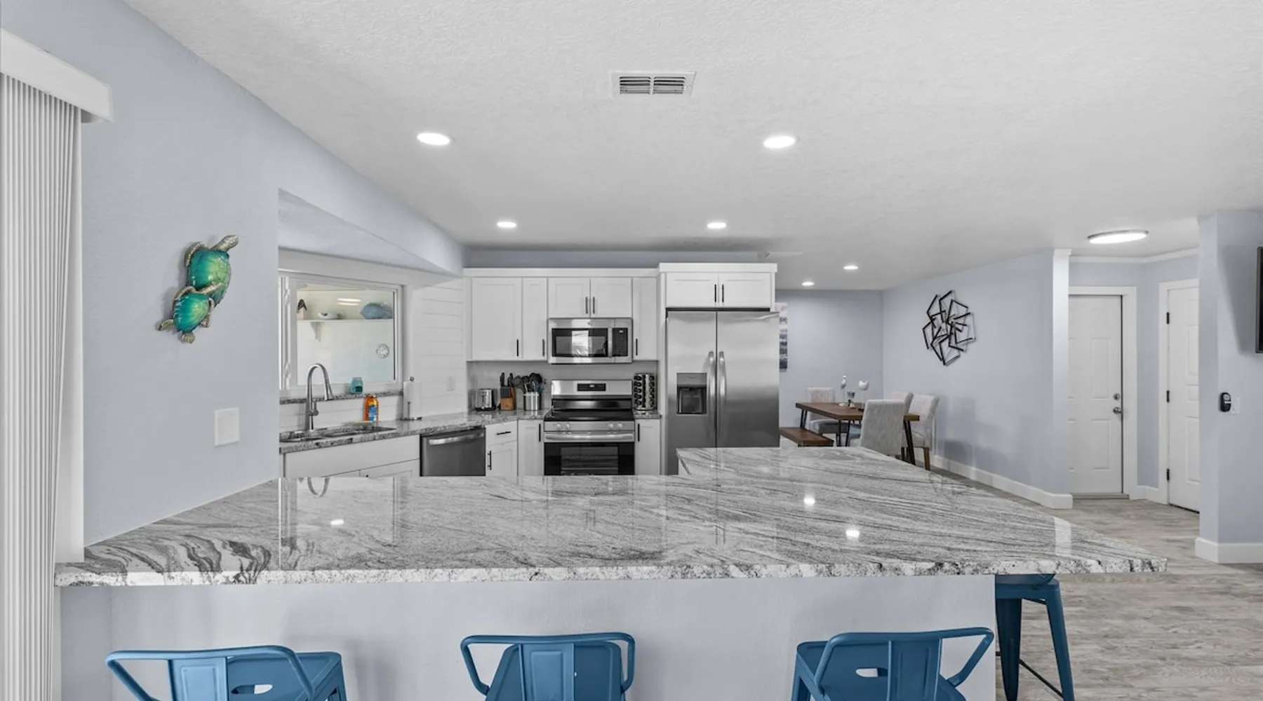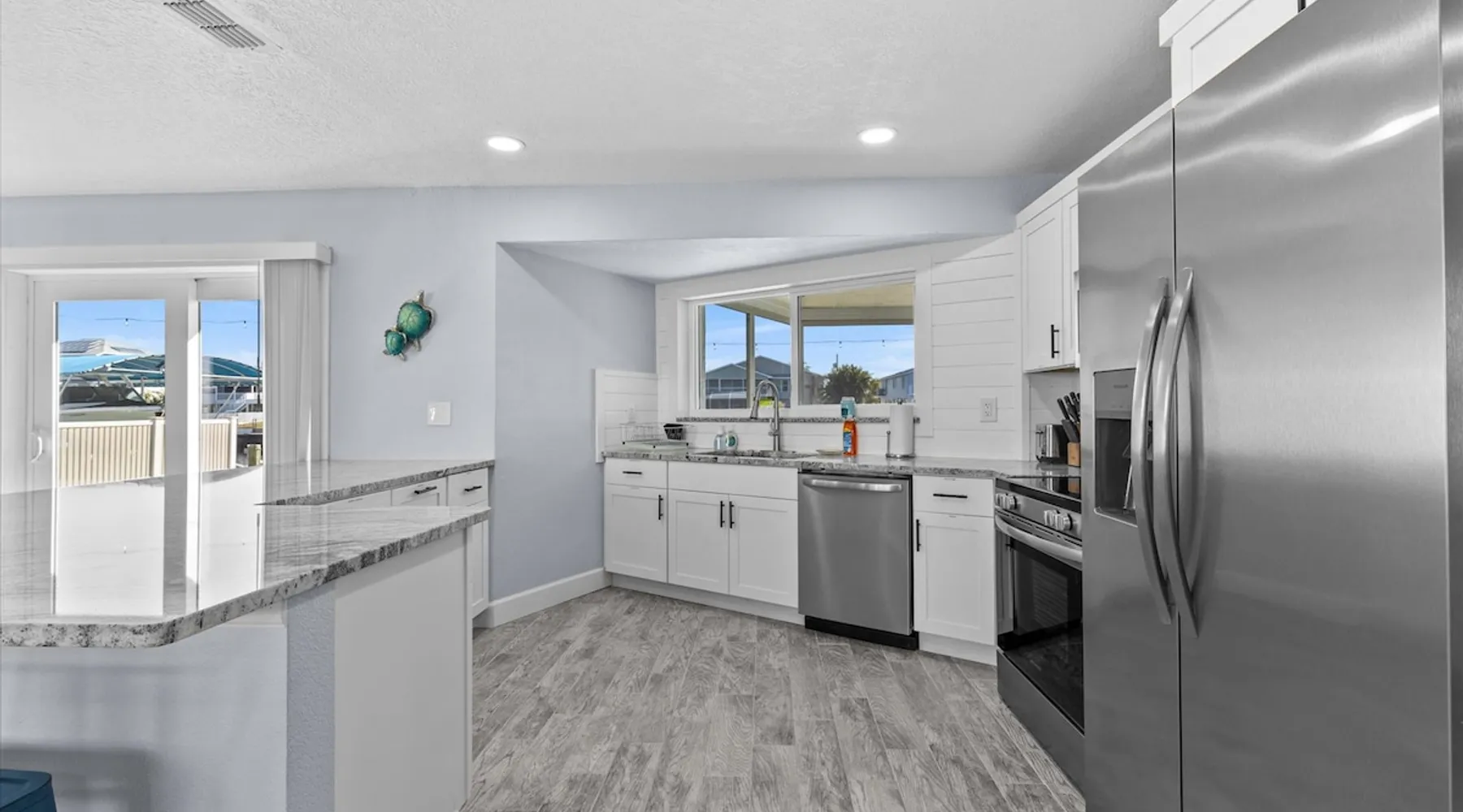 Single level. Waterfront, direct Gulf access, large private dock for fishing and boats! Bring your boat or rent one nearby at the Marina, just a few minutes away! Features: - 4 kayaks - EV Charging. - toiletries, cleaning supplies, ziplock bags, aluminum foil, etc all included - fully loaded kitchen - spices, lots of appliances, Calphalon pots and pans, lots of utensils, etc... - complimentary coffee bar (ground coffee, French Press, kcups, creamers, sugars - see pix for more info) The space Master bedroom: King bed with full bathroom, double vanity. Bedroom 2: queen bed Bedroom 3: twin-over-full bed Master bathroom - double vanity, walk in shower, toiletries provided Bathroom 2 - full bathroom, tub, toiletries provided Newly remodeled home! Ground level, no stairs on property. We are on a canal that has DIRECT ACCESS to the gulf of mexico. Why is this important? This means you don't have to worry about getting your boat on a boat lift, not to mention an additional 30-40 minutes idling just to get to this lift. Our large dock can accomodate large boats or multiple small ones. Bring your boat, or rent one nearby (5 minutes away). Boat ramp is also around 5 minutes away. No boat, no problem! Enjoy our provided kayaks and lifejackets. Or fish right from the dock! Lots of mangrove snappers - easy for kids - lots of other fish around, too. We're on a very deep canal (30feet deep) and extra wide canal so plenty of room! Bring your favorite fishing rods, or buy one for $20 at the live bait store 5 minutes away. LOCATION: - 5 minutes from lots of local bars and restaurants on Shoal LIne blvd - 10 minutes from Weeki Wachee State Park (watch live mermaids, or enjoy the water slides in the summer or weekends at Bucaneer Bay!) - 10 minutes from the Weeki Wachee River - in the winter this is where you'll find manatees gathering, since the river is warm at 71-74 degrees year round. They're here year round, too, just more of them in the winter. - 15 minutes away is everything else you need: Starbucks, Walmart, Publix, Burger King, other chain restaurants, etc... - 45 minutes away is Homosassa - home of the "swim with manatee" tours. Or take an airboat tour. - 1 hour and 15 minutes away is Clearwater Beach, one of the top beaches in America, named #1 several times. Don't feel like doing anything? Lounge around in our screened-in porch area, or sit and watch the beautiful view on any of the adirondack chairs in the backyard. Kitchen has stainless steel appliances all brand new in July 2021, granite countertops and brand new cabinets. All basic cooking utensils (pots, pans, baking dishes, glassware, ladle, spatula, etc... all included, knives, steak knives etc..). Grilling utensils also included. Kitchen appliances: - toaster - Keurig (coffee kcups, creamers, sugars, all included) - Mr. Coffee 6-cup coffee maker - outdoor gas grill, propane included, grilling utensils - 2 blenders - instant pot - dutch oven - new oven 2021 - new microwave 2021 - new commercial washer and dryer 2021, bleach and detergent included. We also include dishwashing detergent, dishwasher liquid, zip lock bags, aluminum foil, tupperware with lids, pots and pans, frying pans, wine and bottle opener, stone crab mallet, lobster crackers, etc... bedrooms: Master has its own bathroom with king size bed and smart TV bedroom 2 has a KING bed and its own smart TV bedroom 3 has 2x bunks with its own smart TV, sleeps 4 (1 full, 3 twins) Living room also features a smart TV. Outdoor area: - 4 kayaks - TESLA EV charger outlet (bring your charger) in garage - 8 lifejackets sizes Child - XXXL Guest access Park in driveway, there is room for a trailer if needed. You can park in the empty lot next to our house if extra room is needed. Other things to note Need two houses? see our other listing (also a 3 bedroom, 2 bathrooms) just two streets over. airbnb/48269487