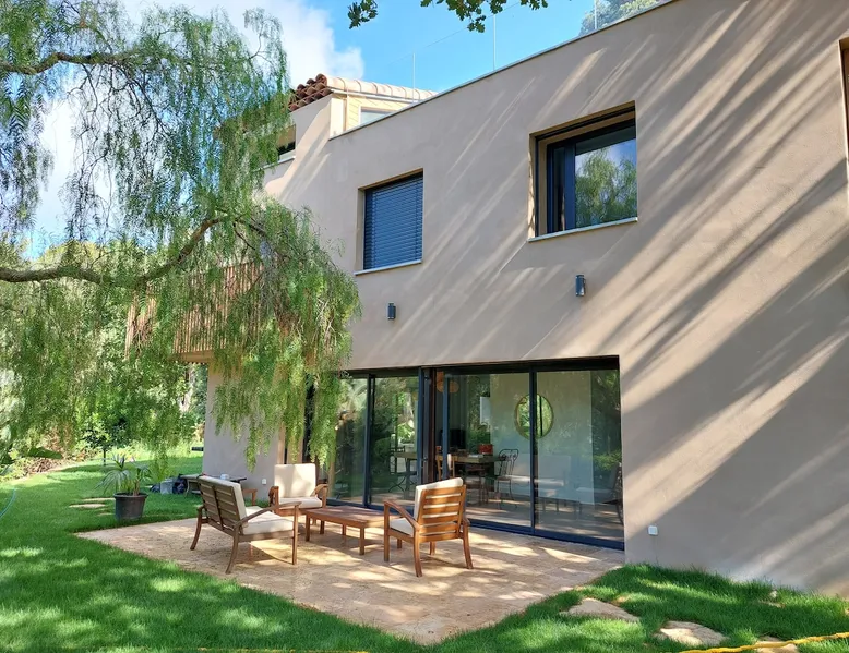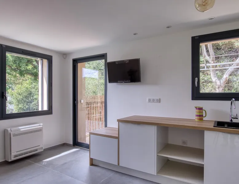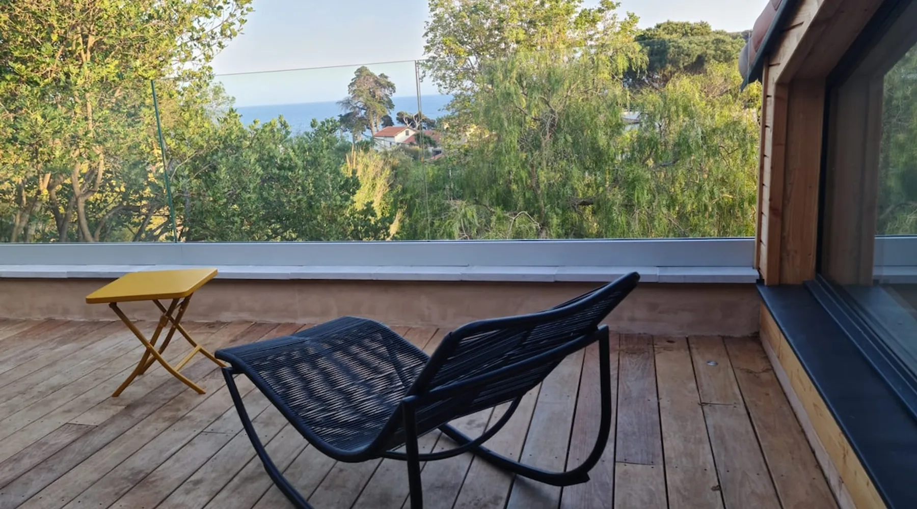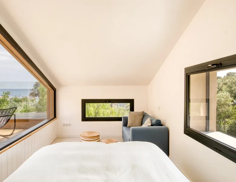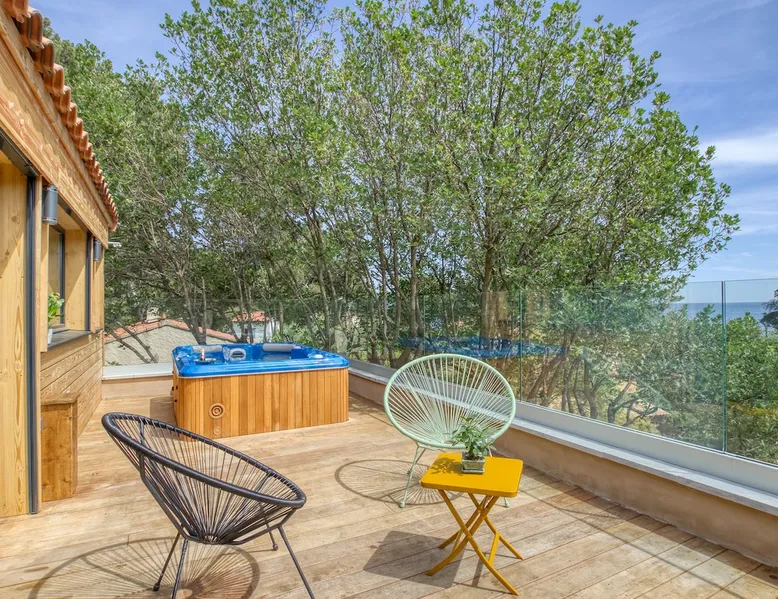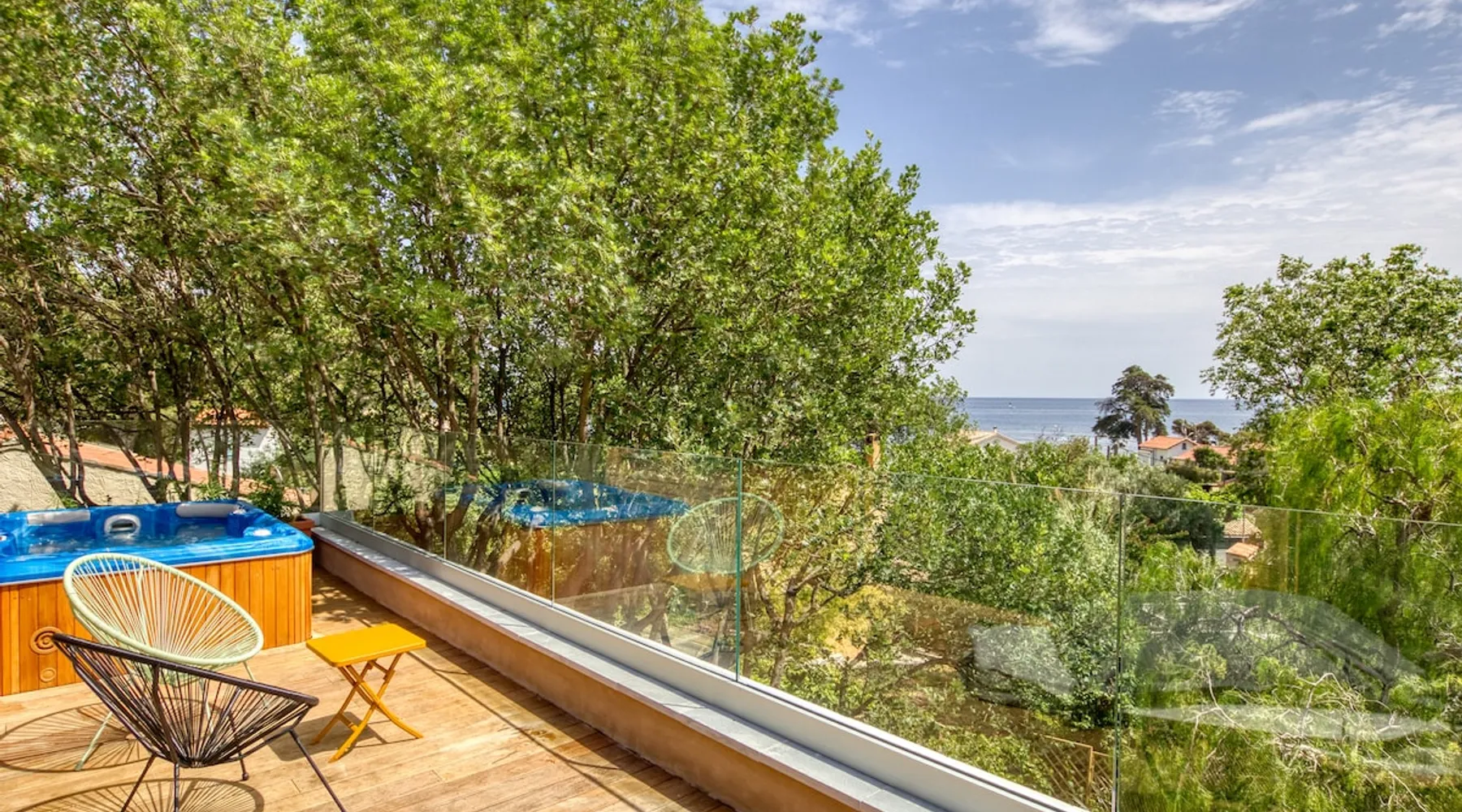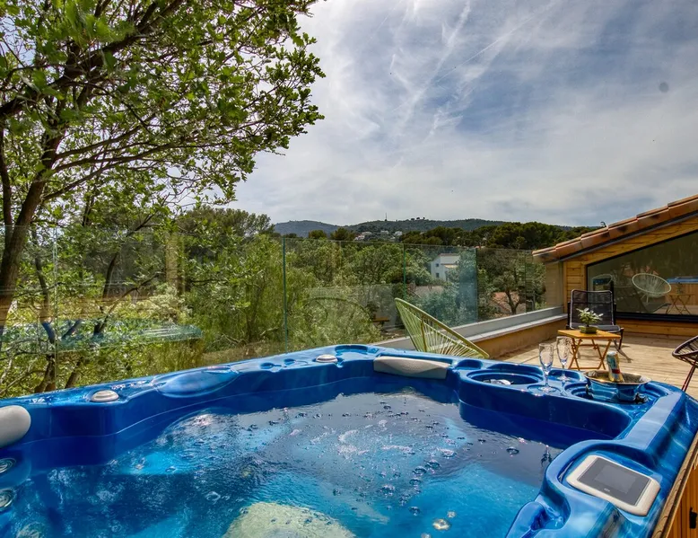 Dreaming of an unforgettable vacation in a sumptuous setting just steps from the sea? So come and take a break in Sylvie's wonderful house in absolute calm where you can take a nap in the shade of the oaks in a garden bathed in brightness. The house has many living spaces where you can find yourself for moments of conviviality where everyone can also have their privacy. Treat yourself to have the best moments together in this dream setting! The space - Large living room with galandage bay to be inside while being outside at a time. - Home cinema for evenings film with a huge very comfortable couch. - Large fully equipped kitchen with: ovens, fridge freezer, coffee machine, bread machine... - 4 bedrooms with one bathroom in each. - Upstairs one of the 4 bedrooms is in a t2 including a toilet, a bathroom, a small living room with pull-out sofa bed, a kitchen and its small terrace. Ideal for teenagers who want to isolate themselves from parents during the holidays or parents who want their privacy or for friends who want their well-being while spending their holidays together. - Jacuzzi in the shade of the oak tree with views of the sea and the forest of Janas. - Roof-top with panoramic sea and forest views. - Terraces with different exposures will allow you to choose according to the hours the light that suits you best. - I lend paddle on request, very light you go for a walk quickly a few meters from the house. - Paddles and a kayak at your disposal - Two parking spots in front of the house Guest access You will have access to the entire house. Other things to note Imperative, I want to have a phone contact before booking.. Thank you for understanding. Namely that you will be able to meet cats outside in the garden.