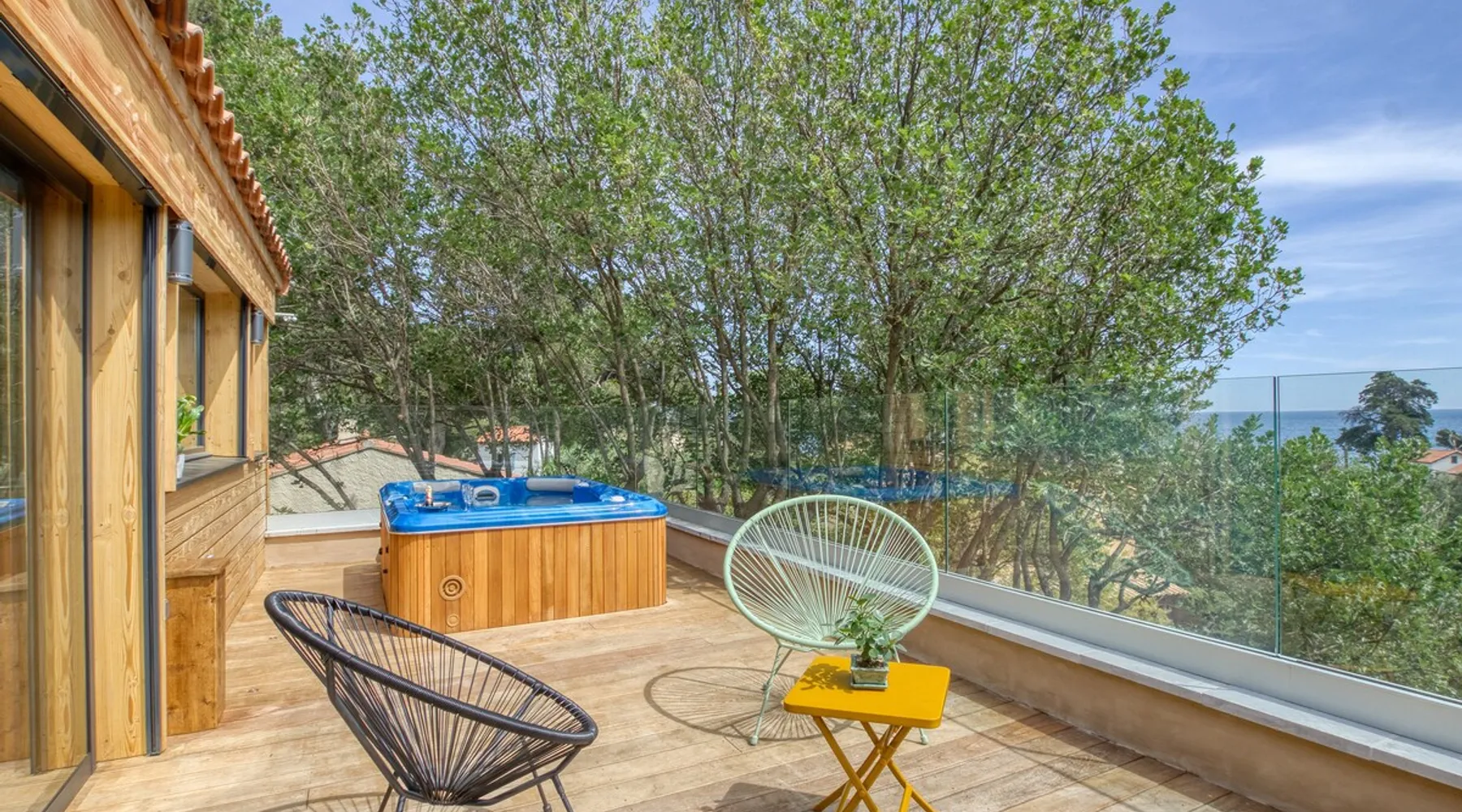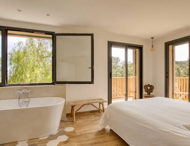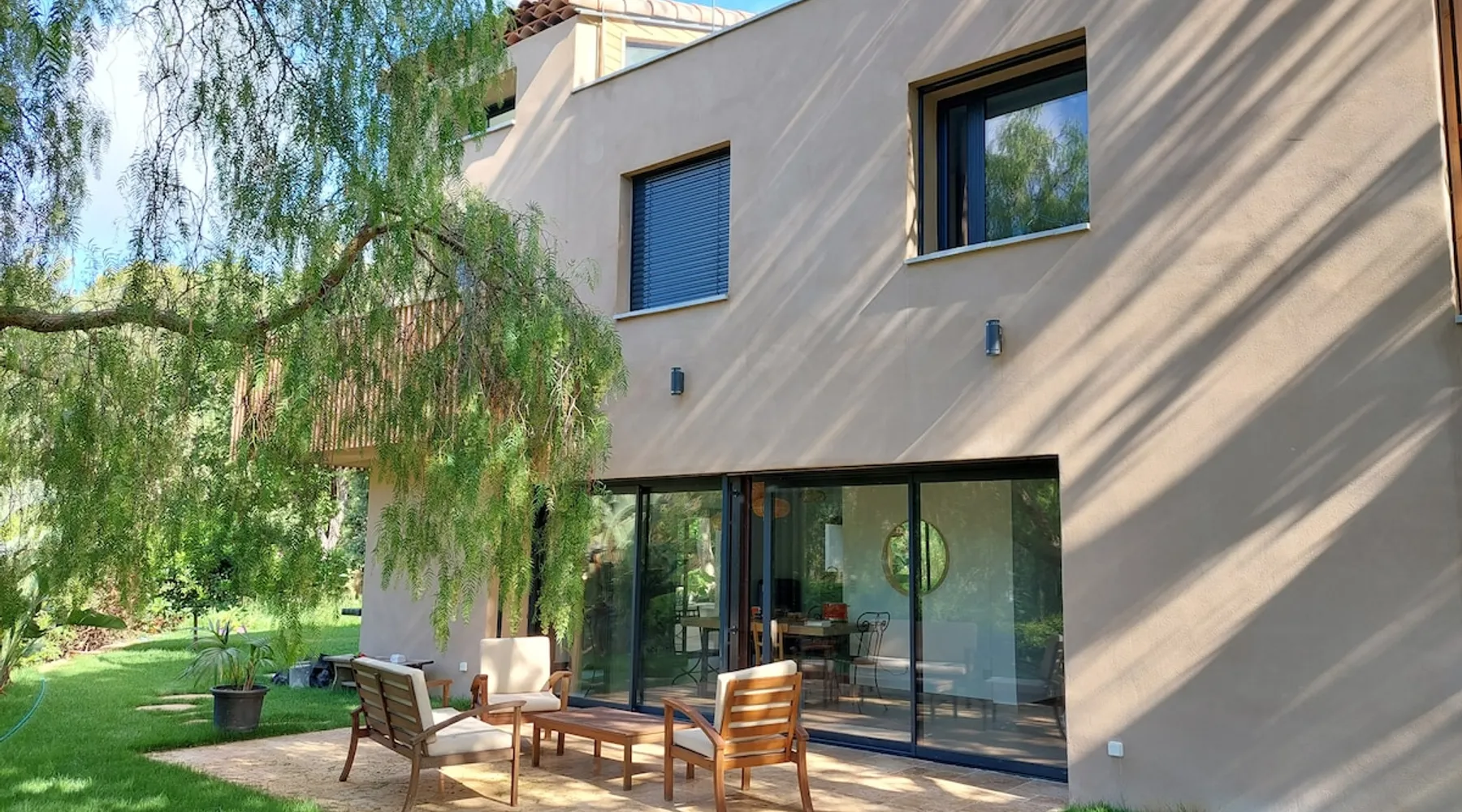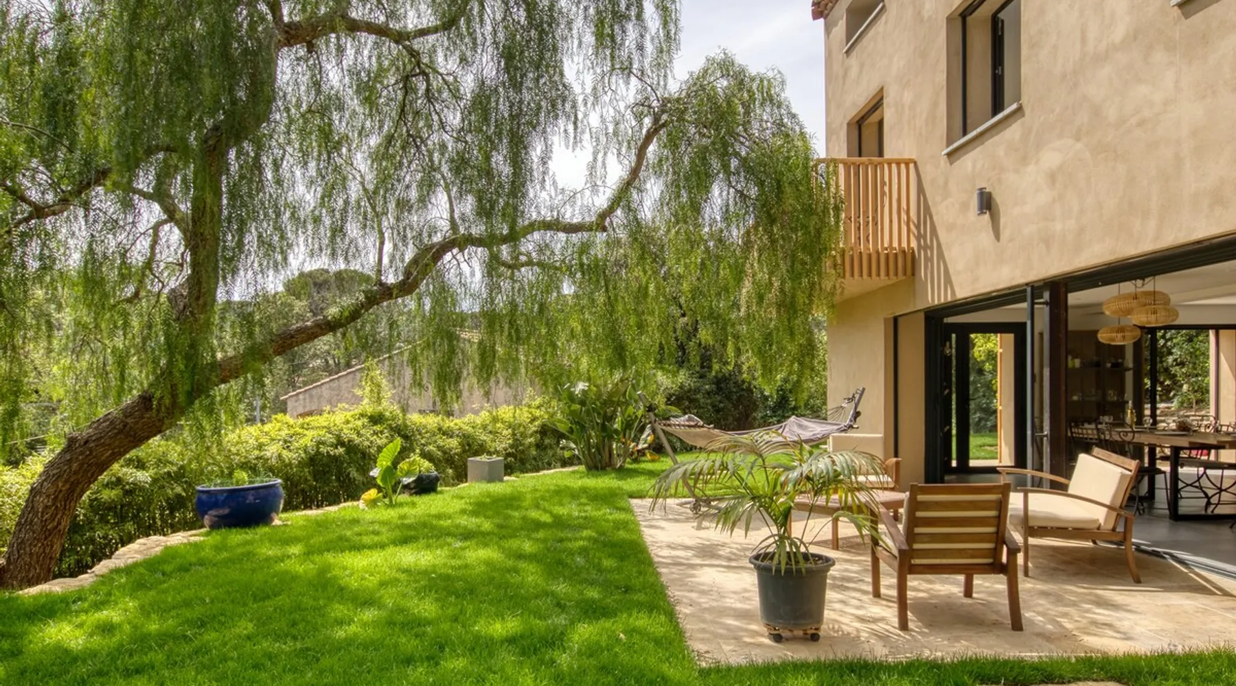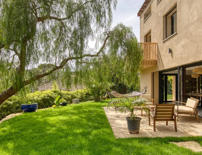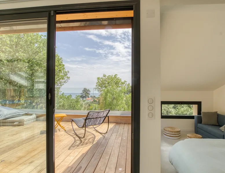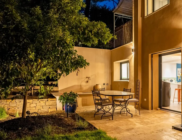 Dreaming of an unforgettable vacation in a sumptuous setting just steps from the sea? So come and take a break in Sylvie's wonderful house in absolute calm where you can take a nap in the shade of the oaks in a garden bathed in brightness. The house has many living spaces where you can find yourself for moments of conviviality where everyone can also have their privacy. Treat yourself to have the best moments together in this dream setting! The space - Large living room with galandage bay to be inside while being outside at a time. - Home cinema for evenings film with a huge very comfortable couch. - Large fully equipped kitchen with: ovens, fridge freezer, coffee machine, bread machine... - 4 bedrooms with one bathroom in each. - Upstairs one of the 4 bedrooms is in a t2 including a toilet, a bathroom, a small living room with pull-out sofa bed, a kitchen and its small terrace. Ideal for teenagers who want to isolate themselves from parents during the holidays or parents who want their privacy or for friends who want their well-being while spending their holidays together. - Jacuzzi in the shade of the oak tree with views of the sea and the forest of Janas. - Roof-top with panoramic sea and forest views. - Terraces with different exposures will allow you to choose according to the hours the light that suits you best. - I lend paddle on request, very light you go for a walk quickly a few meters from the house. - Paddles and a kayak at your disposal - Two parking spots in front of the house Guest access You will have access to the entire house. Other things to note Imperative, I want to have a phone contact before booking.. Thank you for understanding. Namely that you will be able to meet cats outside in the garden.