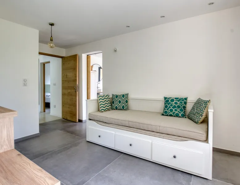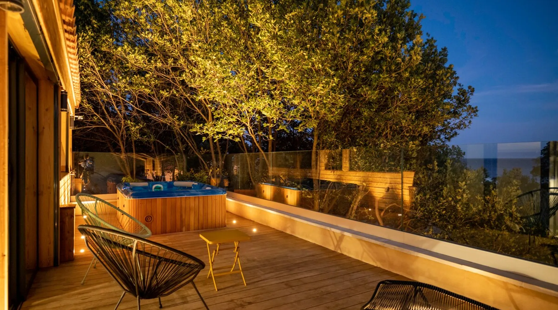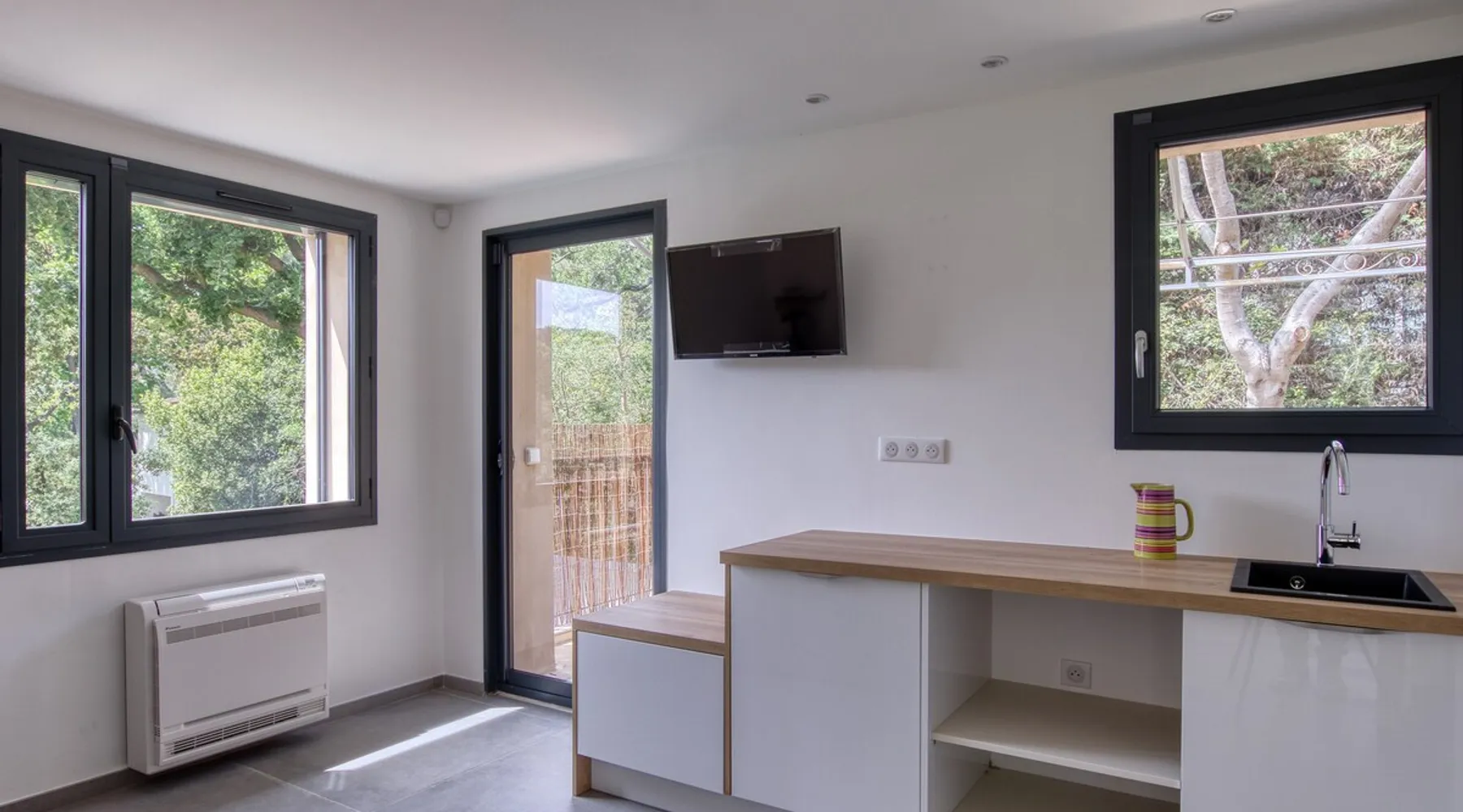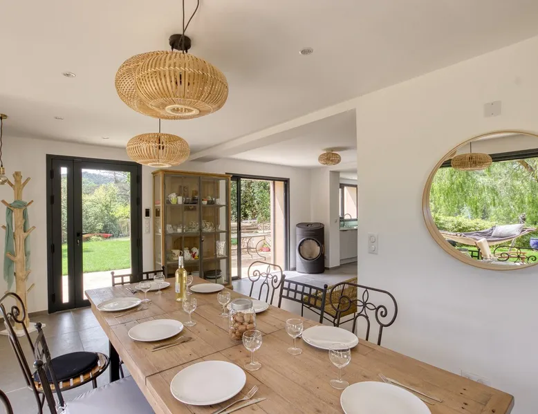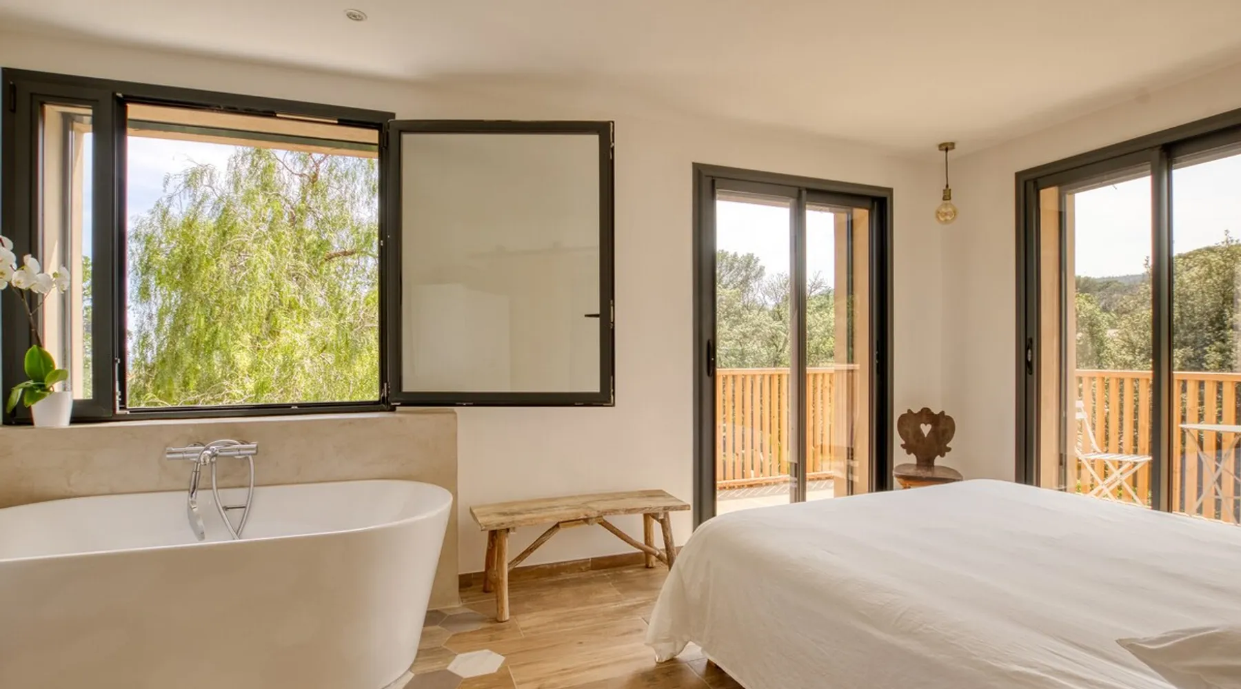 Dreaming of an unforgettable vacation in a sumptuous setting just steps from the sea? So come and take a break in Sylvie's wonderful house in absolute calm where you can take a nap in the shade of the oaks in a garden bathed in brightness. The house has many living spaces where you can find yourself for moments of conviviality where everyone can also have their privacy. Treat yourself to have the best moments together in this dream setting! The space - Large living room with galandage bay to be inside while being outside at a time. - Home cinema for evenings film with a huge very comfortable couch. - Large fully equipped kitchen with: ovens, fridge freezer, coffee machine, bread machine... - 4 bedrooms with one bathroom in each. - Upstairs one of the 4 bedrooms is in a t2 including a toilet, a bathroom, a small living room with pull-out sofa bed, a kitchen and its small terrace. Ideal for teenagers who want to isolate themselves from parents during the holidays or parents who want their privacy or for friends who want their well-being while spending their holidays together. - Jacuzzi in the shade of the oak tree with views of the sea and the forest of Janas. - Roof-top with panoramic sea and forest views. - Terraces with different exposures will allow you to choose according to the hours the light that suits you best. - I lend paddle on request, very light you go for a walk quickly a few meters from the house. - Paddles and a kayak at your disposal - Two parking spots in front of the house Guest access You will have access to the entire house. Other things to note Imperative, I want to have a phone contact before booking.. Thank you for understanding. Namely that you will be able to meet cats outside in the garden.