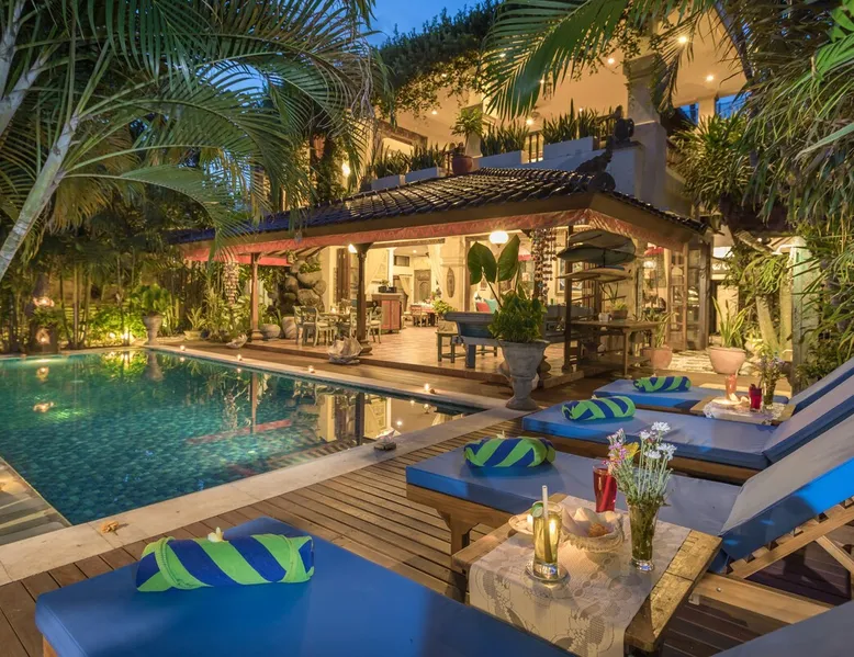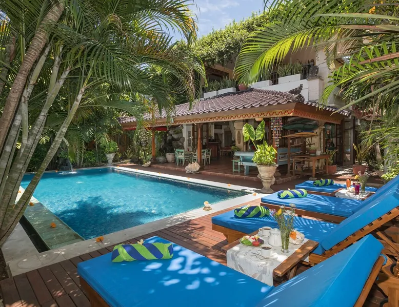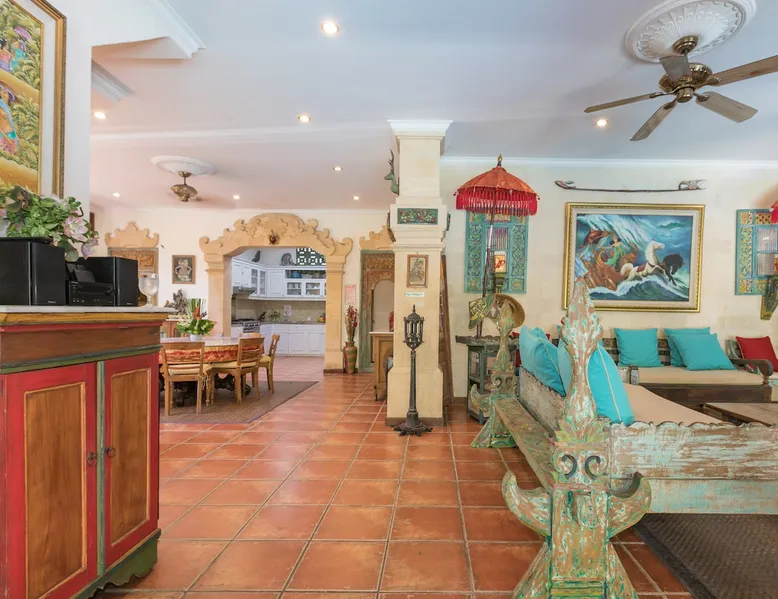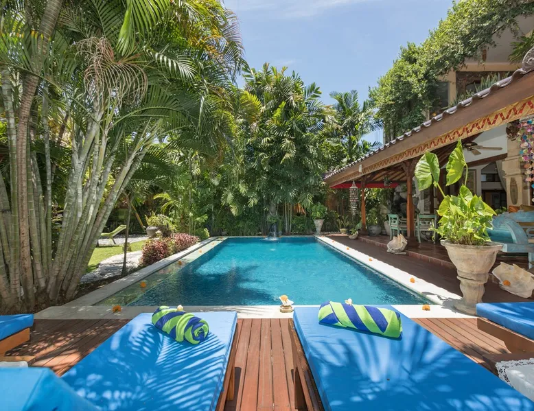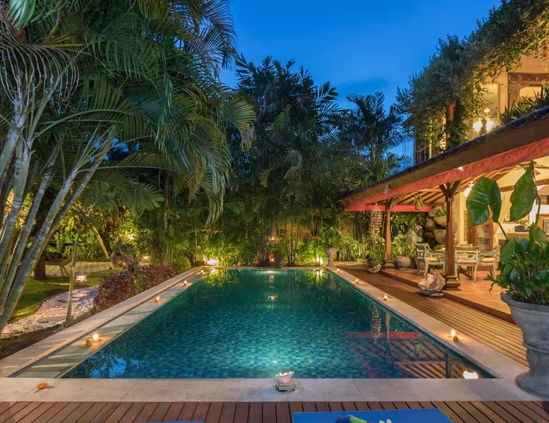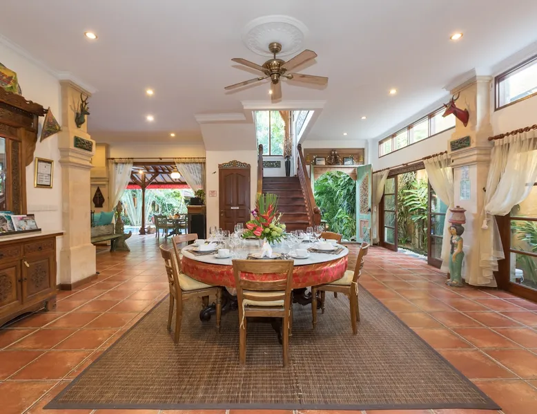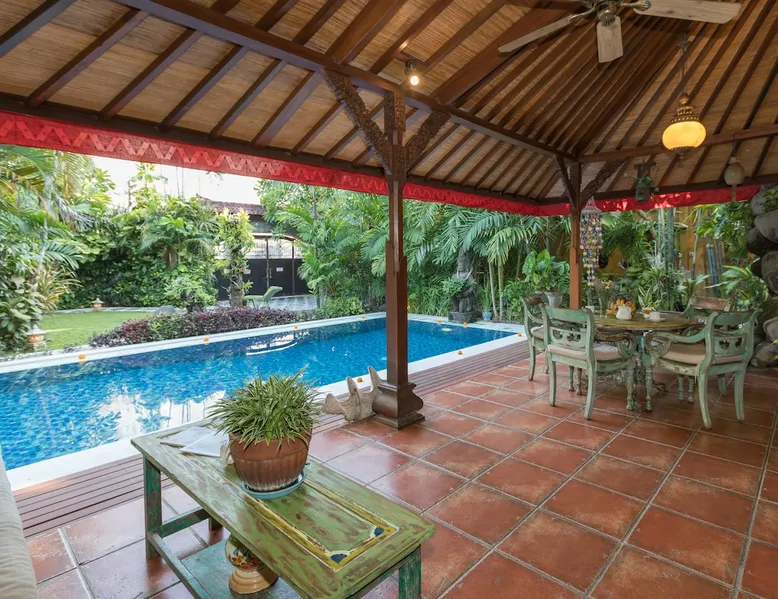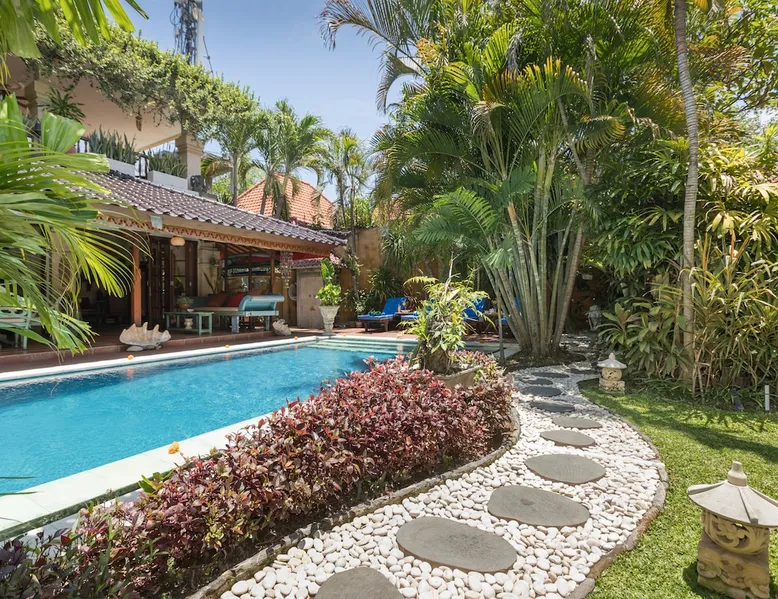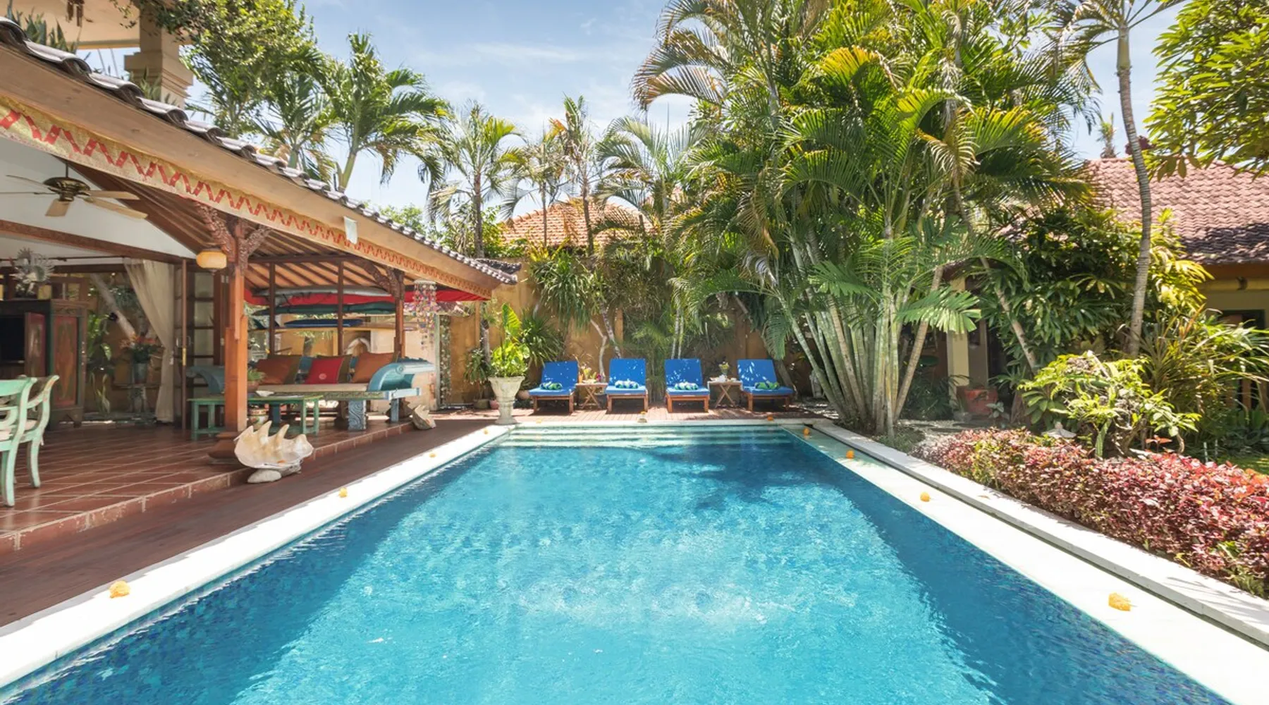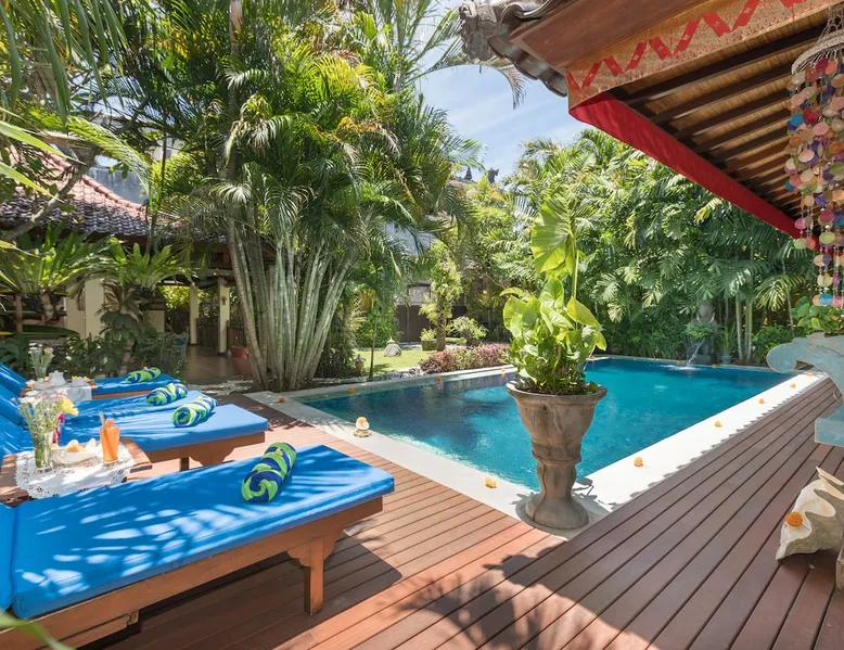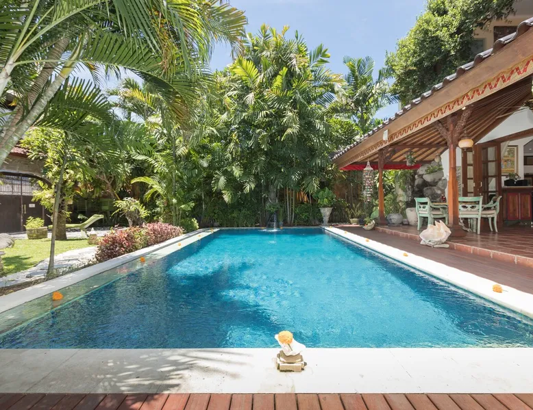 "Before sending a booking request, please contact us to inquire about any promotional rates that may be available. The pricing for the villa is dynamic and subject to change, with some dates potentially having discounted rates. Please note that the calendar for the villa may not always be up-to-date, so we recommend checking with us for last-minute availability." ============================================================= The space A charming 4-bedroom villa located in the heart of Seminyak. The villa is a true embodiment of Balinese culture, featuring traditional Balinese furnishings, design and ambiance that transports you to the charm of old Bali. Stepping inside, you are greeted by a well-landscaped garden, with stone steps leading you to the entrance of the villa. The villa has a spacious foreground, offering an open-plan living area that connects directly to the garden with a stunning view of the swimming pool. The living room is designed with multiple seating areas, allowing you to relax and enjoy the serene surroundings. The dining area, with its round table, creates a cozy and intimate space to gather with your family and friends. Perfect for outdoor relaxation, with sun loungers positioned in front of the swimming pool, where you can soak up the sun or watch your children play in the spacious garden. The fully equipped kitchen ensures that you have everything you need to prepare meals during your stay. Each of the four bedrooms is designed with a private bathroom, complete with a bathtub, offering a luxurious and comfortable retreat. The villa makes a great choice for guests who want to experience ethnic Balinese style while staying in the centre of Seminyak, with easy access to shops, restaurants, cafes and bars. It also provides a unique blend of traditional Balinese charm and modern comforts, making it the perfect destination for your Bali vacation. ============================================================= Our villas include the dedicated services of a Guest Relations Manager, available to assist with tours, transportation, massages, activities, reservations, and any other needs to ensure your vacation is memorable and hassle-free. From the moment you arrive, our team is committed to providing an unforgettable experience. We can arrange daily breakfast, lunch, dinner, or a BBQ at your villa, tailored to your preferences. To make your arrival and departure as seamless as possible, we offer airport transfer services at a reasonable cost. Please inform us if you require this service, and we will be happy to assist you.