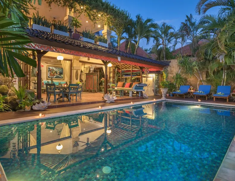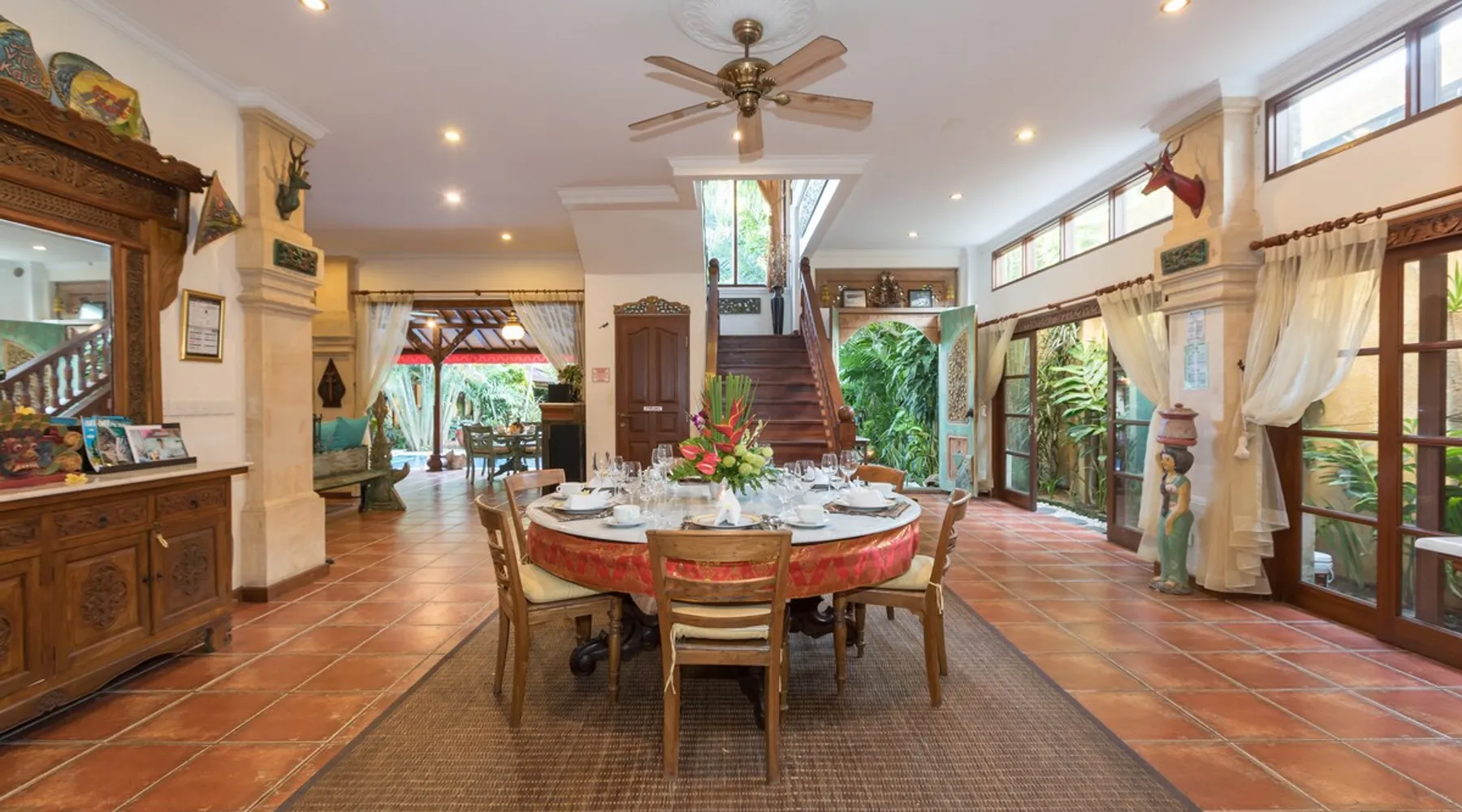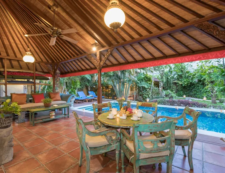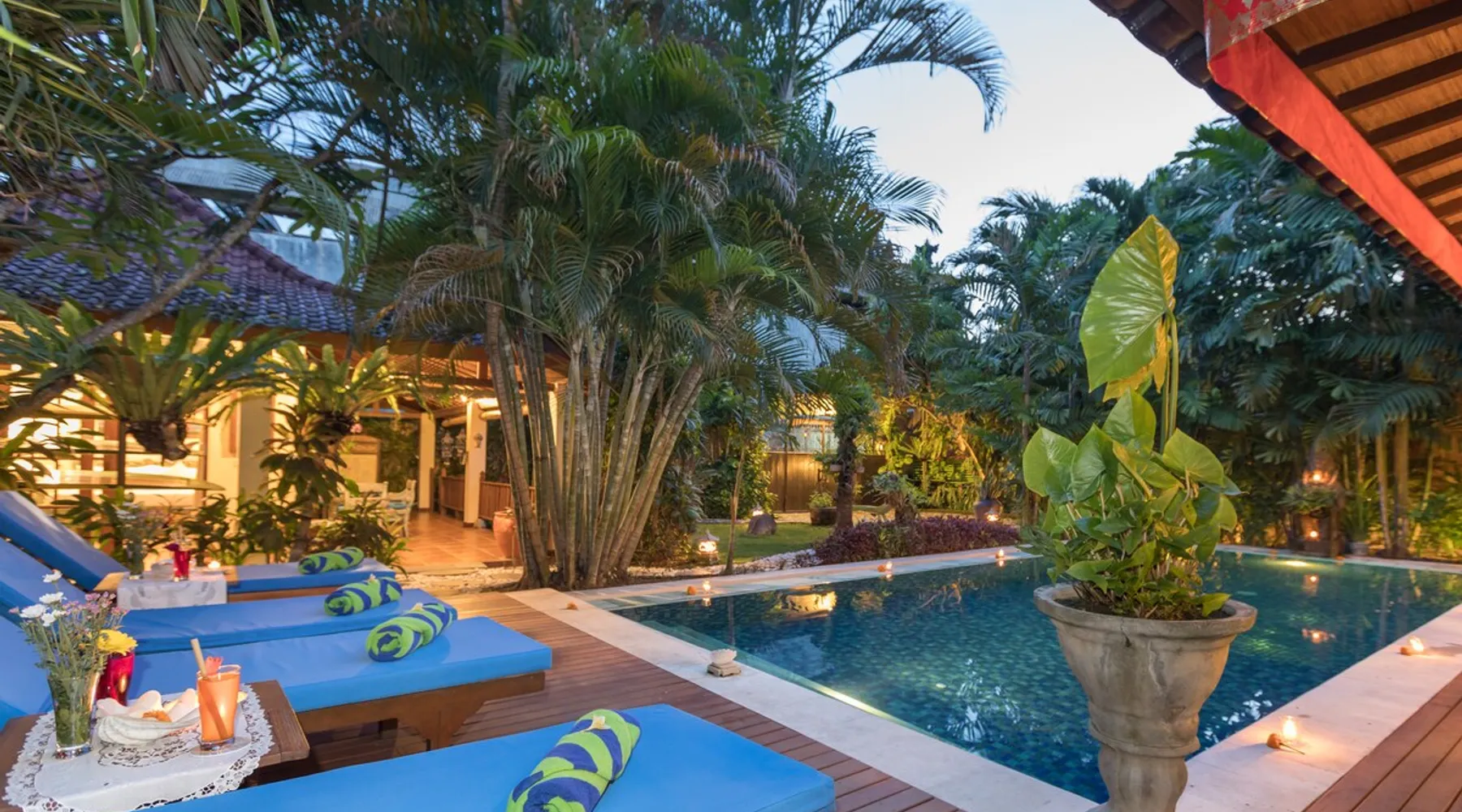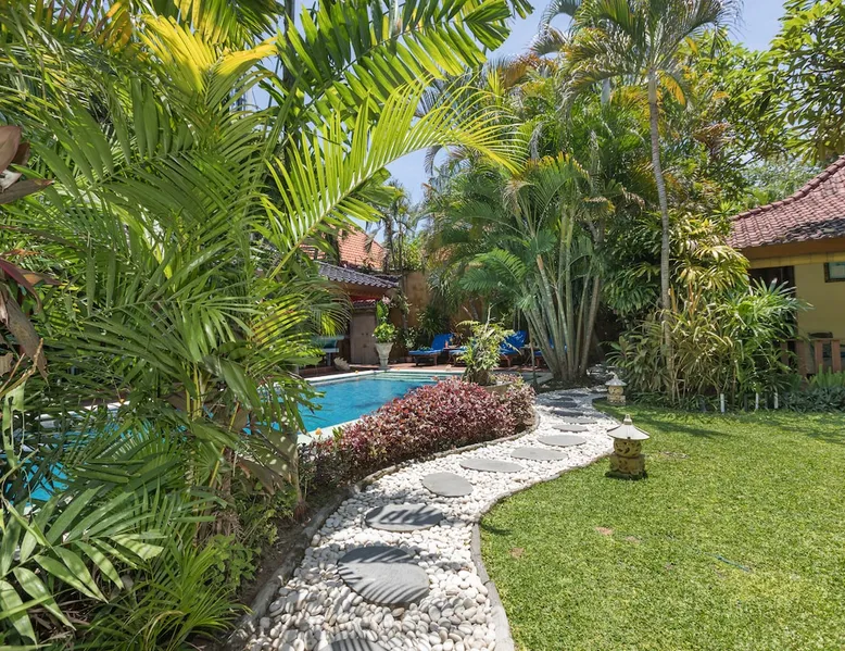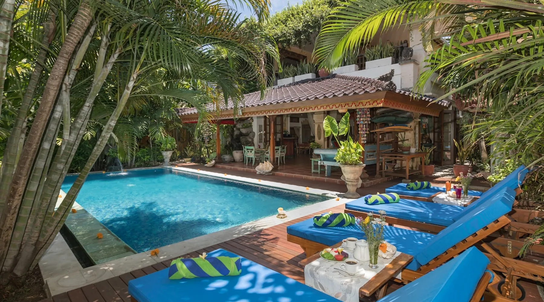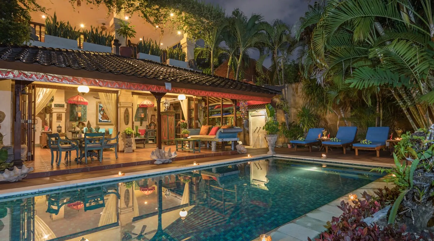 "Before sending a booking request, please contact us to inquire about any promotional rates that may be available. The pricing for the villa is dynamic and subject to change, with some dates potentially having discounted rates. Please note that the calendar for the villa may not always be up-to-date, so we recommend checking with us for last-minute availability." ============================================================= The space A charming 4-bedroom villa located in the heart of Seminyak. The villa is a true embodiment of Balinese culture, featuring traditional Balinese furnishings, design and ambiance that transports you to the charm of old Bali. Stepping inside, you are greeted by a well-landscaped garden, with stone steps leading you to the entrance of the villa. The villa has a spacious foreground, offering an open-plan living area that connects directly to the garden with a stunning view of the swimming pool. The living room is designed with multiple seating areas, allowing you to relax and enjoy the serene surroundings. The dining area, with its round table, creates a cozy and intimate space to gather with your family and friends. Perfect for outdoor relaxation, with sun loungers positioned in front of the swimming pool, where you can soak up the sun or watch your children play in the spacious garden. The fully equipped kitchen ensures that you have everything you need to prepare meals during your stay. Each of the four bedrooms is designed with a private bathroom, complete with a bathtub, offering a luxurious and comfortable retreat. The villa makes a great choice for guests who want to experience ethnic Balinese style while staying in the centre of Seminyak, with easy access to shops, restaurants, cafes and bars. It also provides a unique blend of traditional Balinese charm and modern comforts, making it the perfect destination for your Bali vacation. ============================================================= Our villas include the dedicated services of a Guest Relations Manager, available to assist with tours, transportation, massages, activities, reservations, and any other needs to ensure your vacation is memorable and hassle-free. From the moment you arrive, our team is committed to providing an unforgettable experience. We can arrange daily breakfast, lunch, dinner, or a BBQ at your villa, tailored to your preferences. To make your arrival and departure as seamless as possible, we offer airport transfer services at a reasonable cost. Please inform us if you require this service, and we will be happy to assist you.