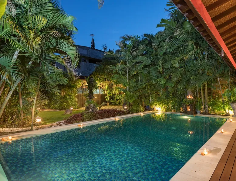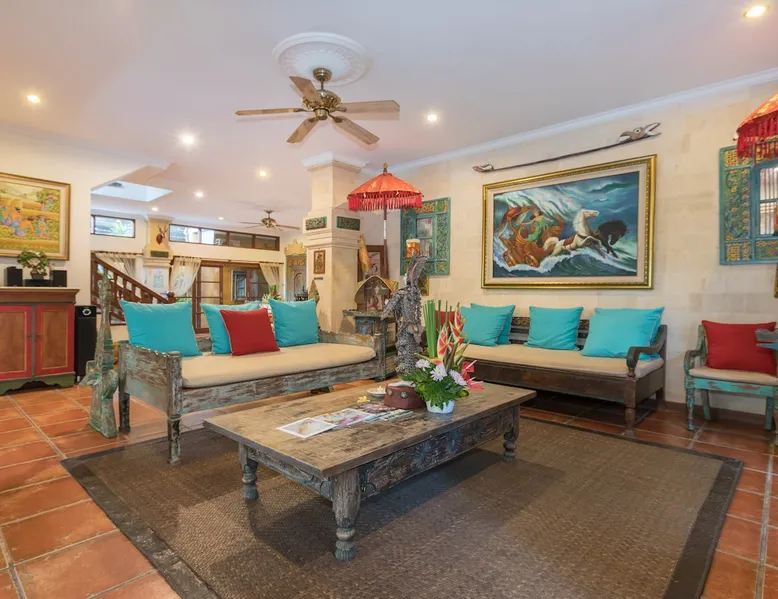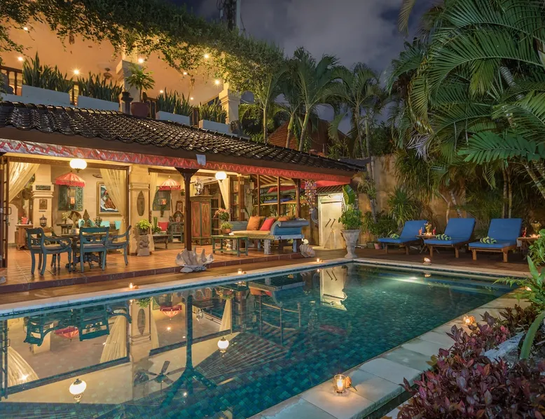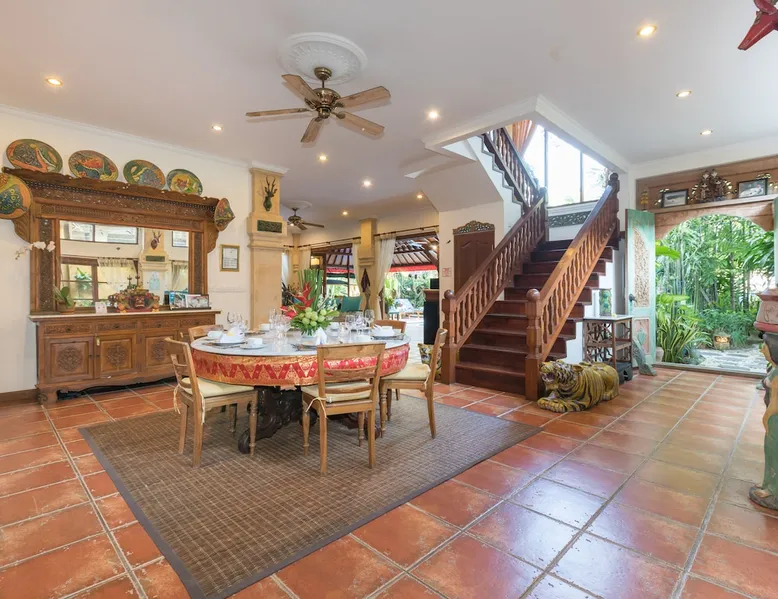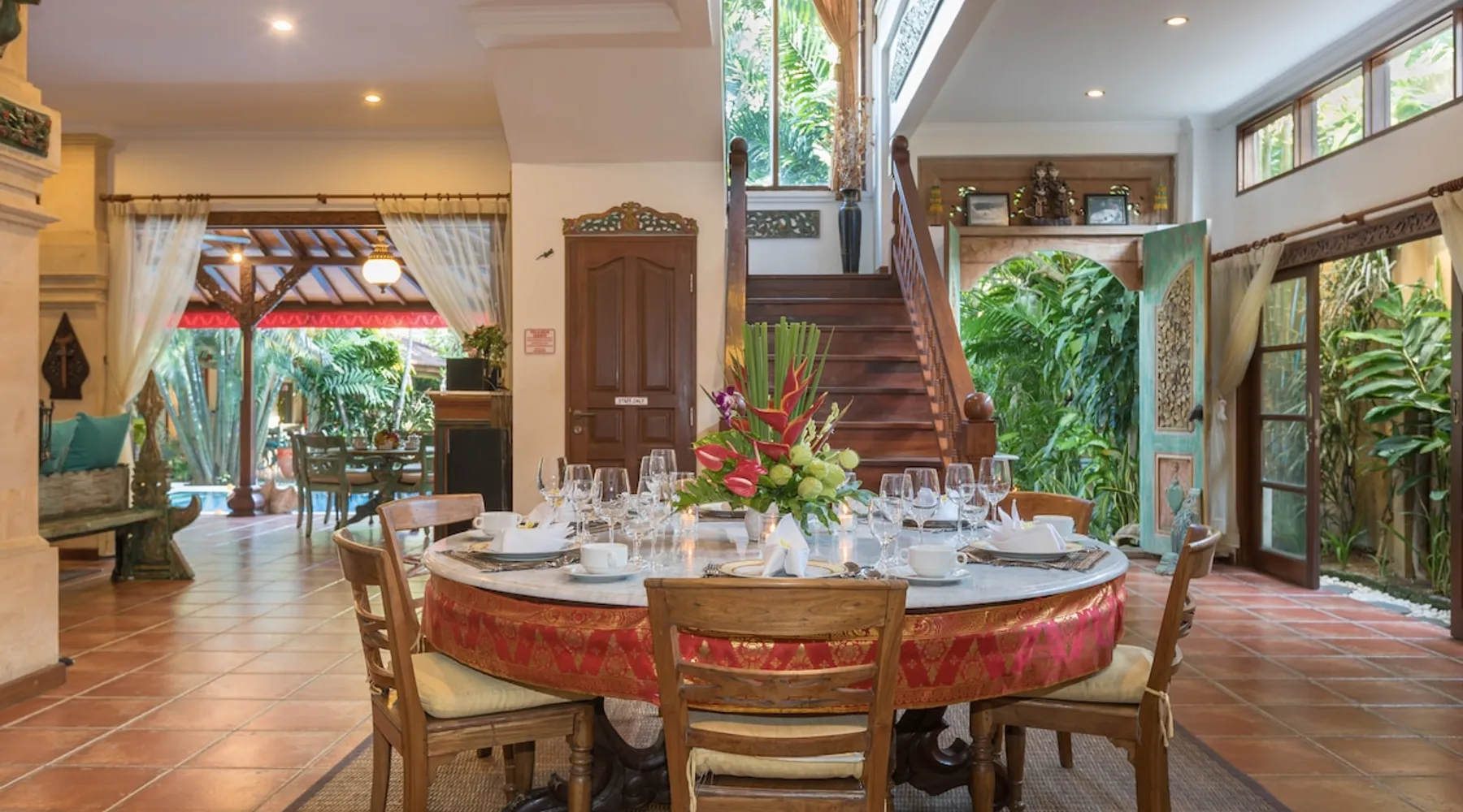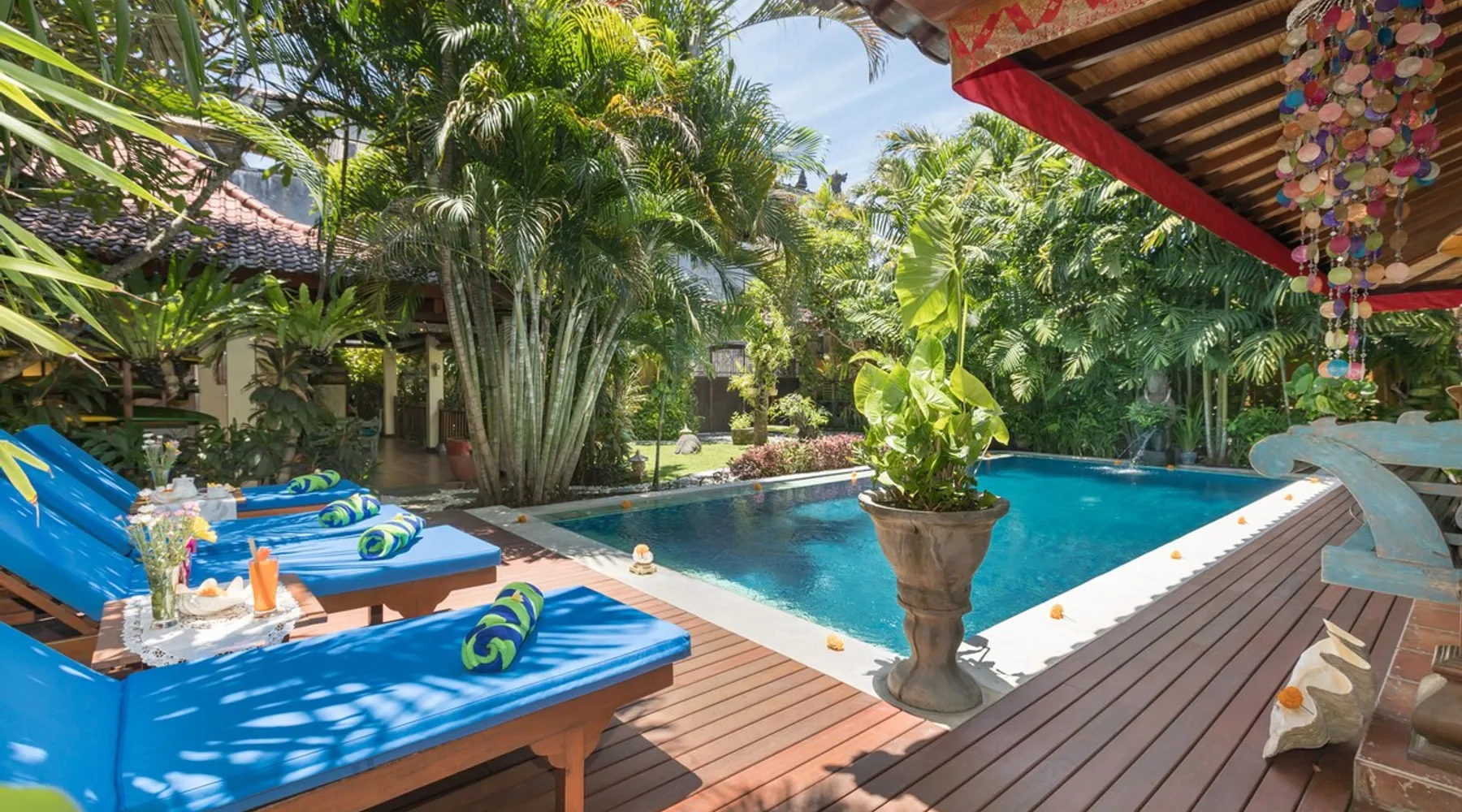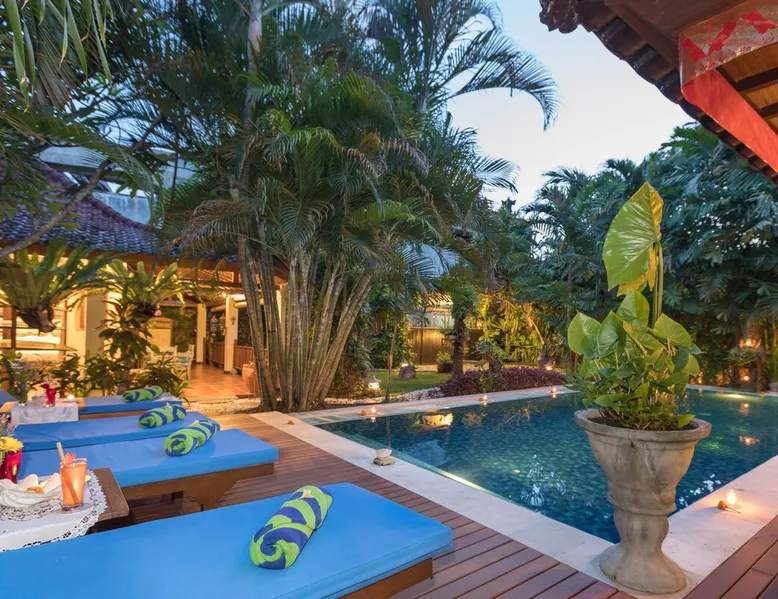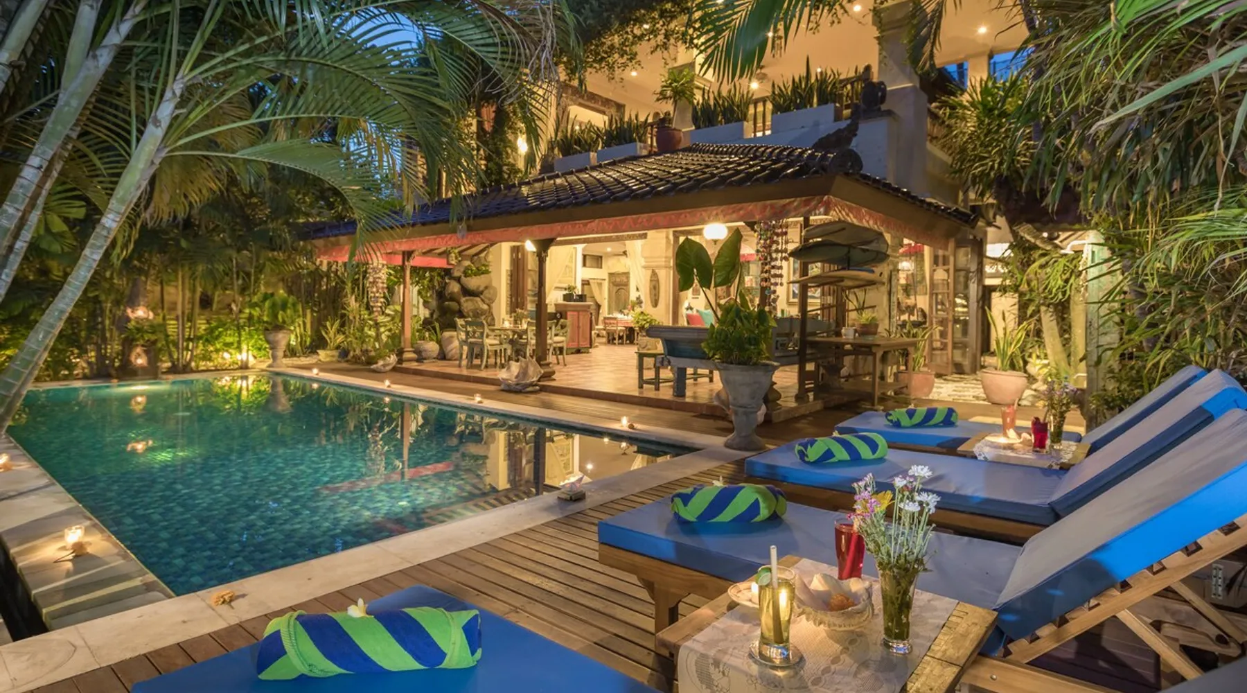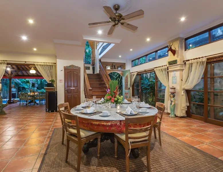 "Before sending a booking request, please contact us to inquire about any promotional rates that may be available. The pricing for the villa is dynamic and subject to change, with some dates potentially having discounted rates. Please note that the calendar for the villa may not always be up-to-date, so we recommend checking with us for last-minute availability." ============================================================= The space A charming 4-bedroom villa located in the heart of Seminyak. The villa is a true embodiment of Balinese culture, featuring traditional Balinese furnishings, design and ambiance that transports you to the charm of old Bali. Stepping inside, you are greeted by a well-landscaped garden, with stone steps leading you to the entrance of the villa. The villa has a spacious foreground, offering an open-plan living area that connects directly to the garden with a stunning view of the swimming pool. The living room is designed with multiple seating areas, allowing you to relax and enjoy the serene surroundings. The dining area, with its round table, creates a cozy and intimate space to gather with your family and friends. Perfect for outdoor relaxation, with sun loungers positioned in front of the swimming pool, where you can soak up the sun or watch your children play in the spacious garden. The fully equipped kitchen ensures that you have everything you need to prepare meals during your stay. Each of the four bedrooms is designed with a private bathroom, complete with a bathtub, offering a luxurious and comfortable retreat. The villa makes a great choice for guests who want to experience ethnic Balinese style while staying in the centre of Seminyak, with easy access to shops, restaurants, cafes and bars. It also provides a unique blend of traditional Balinese charm and modern comforts, making it the perfect destination for your Bali vacation. ============================================================= Our villas include the dedicated services of a Guest Relations Manager, available to assist with tours, transportation, massages, activities, reservations, and any other needs to ensure your vacation is memorable and hassle-free. From the moment you arrive, our team is committed to providing an unforgettable experience. We can arrange daily breakfast, lunch, dinner, or a BBQ at your villa, tailored to your preferences. To make your arrival and departure as seamless as possible, we offer airport transfer services at a reasonable cost. Please inform us if you require this service, and we will be happy to assist you.