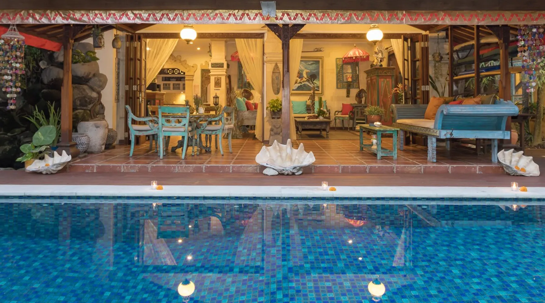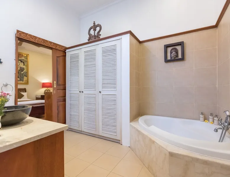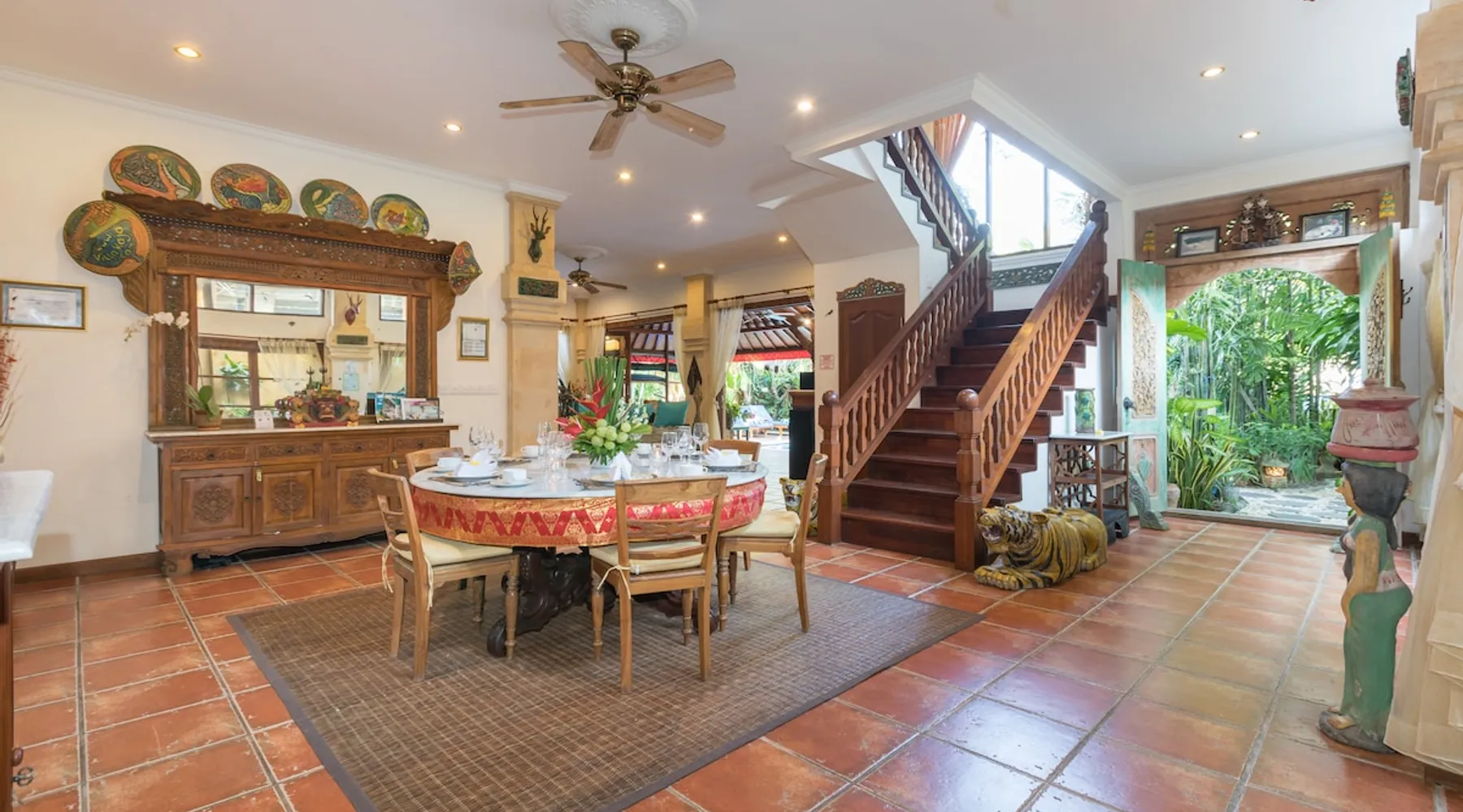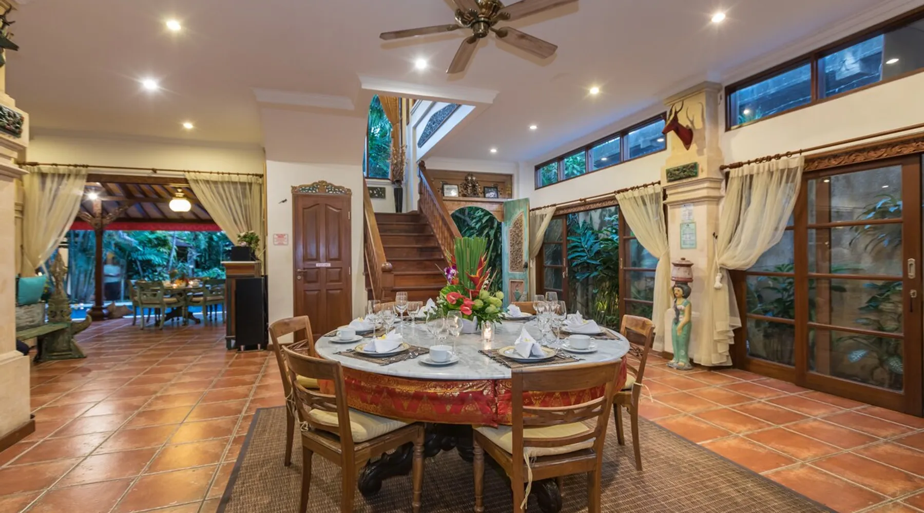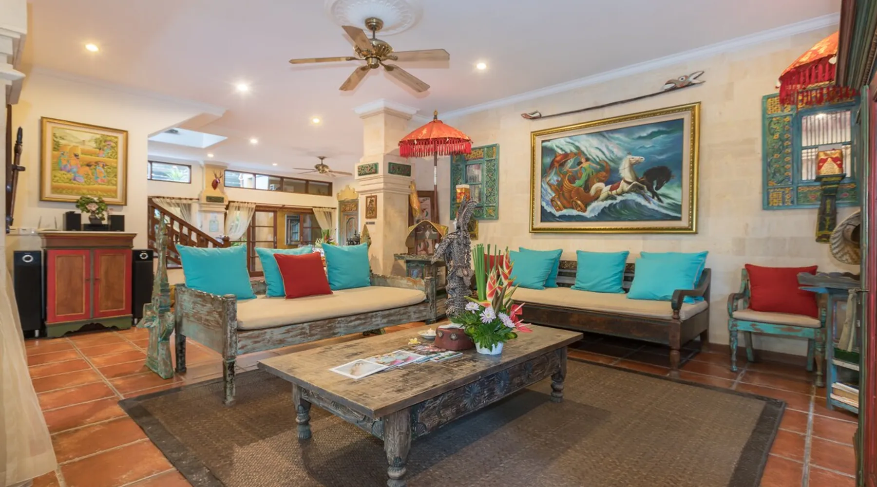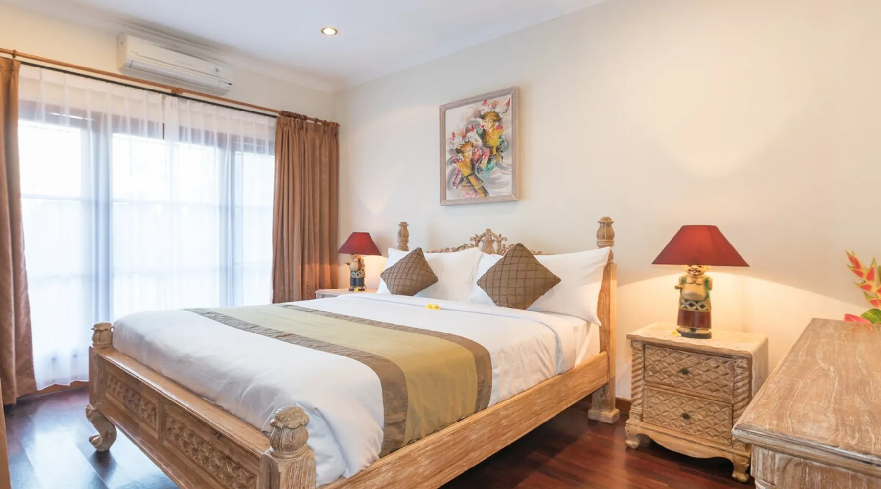 "Before sending a booking request, please contact us to inquire about any promotional rates that may be available. The pricing for the villa is dynamic and subject to change, with some dates potentially having discounted rates. Please note that the calendar for the villa may not always be up-to-date, so we recommend checking with us for last-minute availability." ============================================================= The space A charming 4-bedroom villa located in the heart of Seminyak. The villa is a true embodiment of Balinese culture, featuring traditional Balinese furnishings, design and ambiance that transports you to the charm of old Bali. Stepping inside, you are greeted by a well-landscaped garden, with stone steps leading you to the entrance of the villa. The villa has a spacious foreground, offering an open-plan living area that connects directly to the garden with a stunning view of the swimming pool. The living room is designed with multiple seating areas, allowing you to relax and enjoy the serene surroundings. The dining area, with its round table, creates a cozy and intimate space to gather with your family and friends. Perfect for outdoor relaxation, with sun loungers positioned in front of the swimming pool, where you can soak up the sun or watch your children play in the spacious garden. The fully equipped kitchen ensures that you have everything you need to prepare meals during your stay. Each of the four bedrooms is designed with a private bathroom, complete with a bathtub, offering a luxurious and comfortable retreat. The villa makes a great choice for guests who want to experience ethnic Balinese style while staying in the centre of Seminyak, with easy access to shops, restaurants, cafes and bars. It also provides a unique blend of traditional Balinese charm and modern comforts, making it the perfect destination for your Bali vacation. ============================================================= Our villas include the dedicated services of a Guest Relations Manager, available to assist with tours, transportation, massages, activities, reservations, and any other needs to ensure your vacation is memorable and hassle-free. From the moment you arrive, our team is committed to providing an unforgettable experience. We can arrange daily breakfast, lunch, dinner, or a BBQ at your villa, tailored to your preferences. To make your arrival and departure as seamless as possible, we offer airport transfer services at a reasonable cost. Please inform us if you require this service, and we will be happy to assist you.