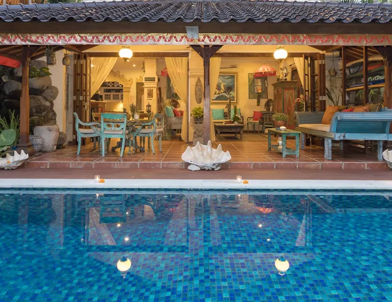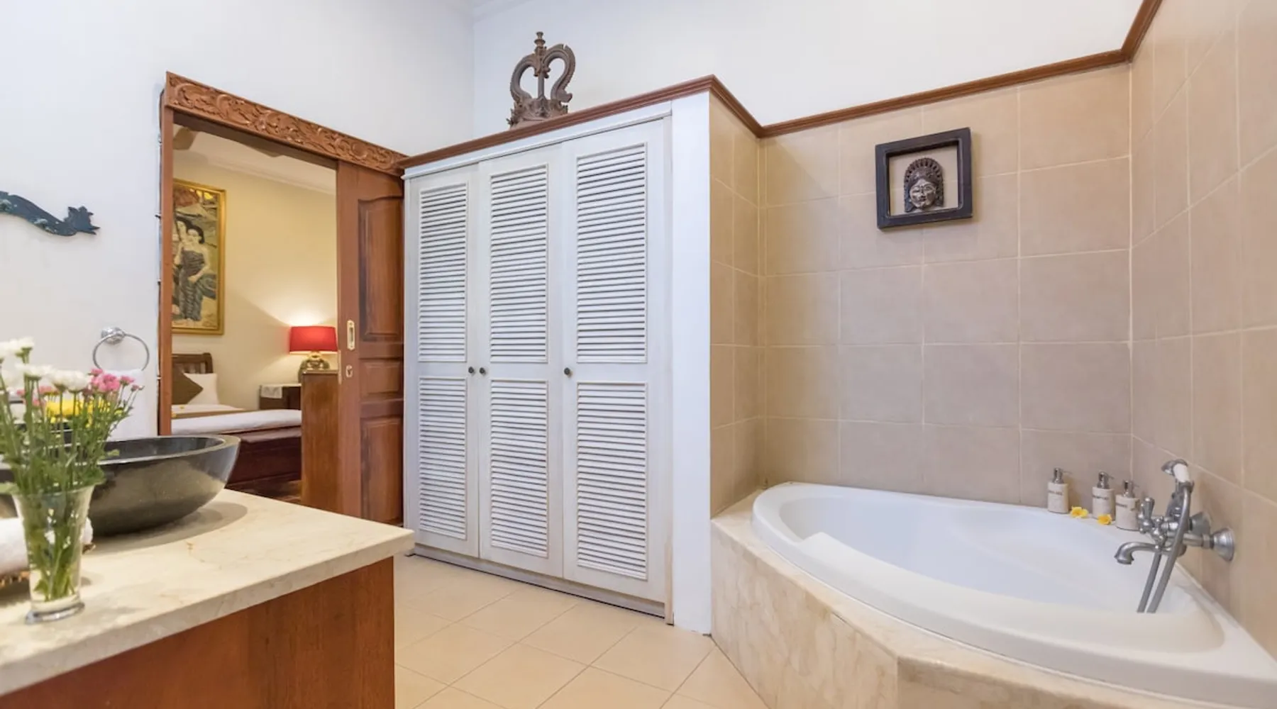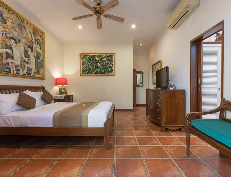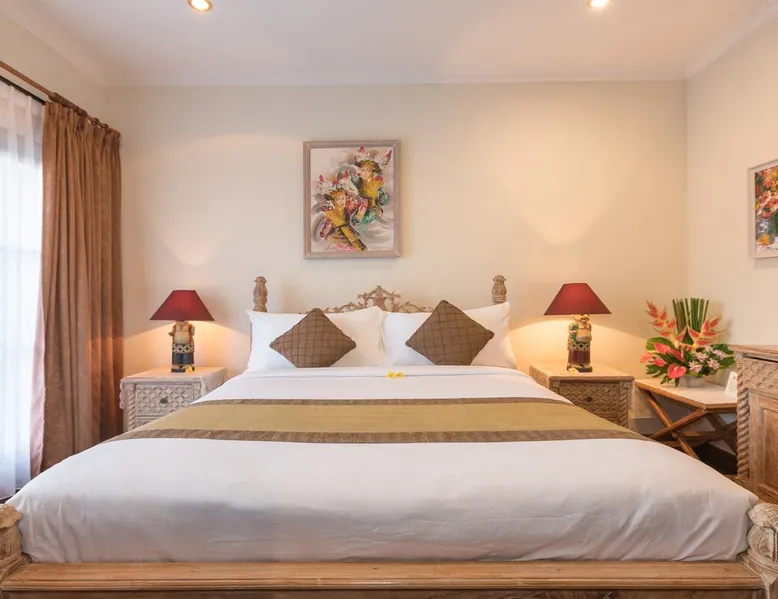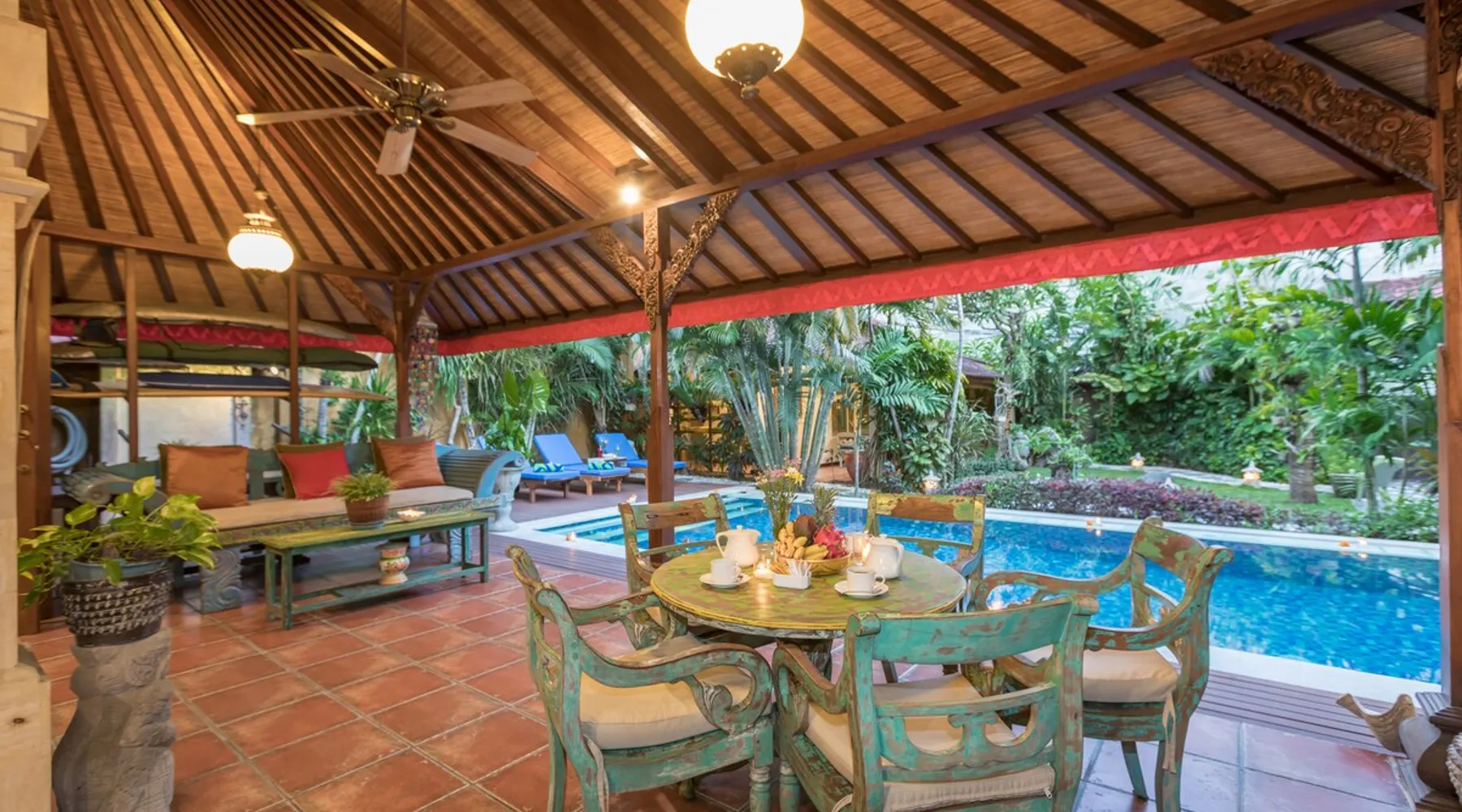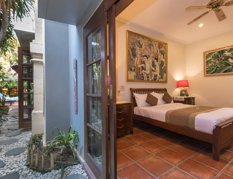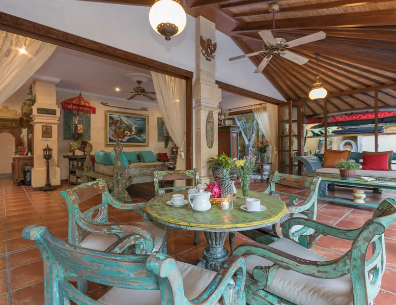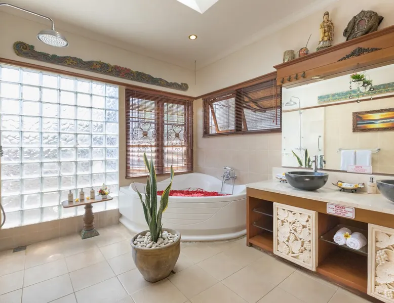 "Before sending a booking request, please contact us to inquire about any promotional rates that may be available. The pricing for the villa is dynamic and subject to change, with some dates potentially having discounted rates. Please note that the calendar for the villa may not always be up-to-date, so we recommend checking with us for last-minute availability." ============================================================= The space A charming 4-bedroom villa located in the heart of Seminyak. The villa is a true embodiment of Balinese culture, featuring traditional Balinese furnishings, design and ambiance that transports you to the charm of old Bali. Stepping inside, you are greeted by a well-landscaped garden, with stone steps leading you to the entrance of the villa. The villa has a spacious foreground, offering an open-plan living area that connects directly to the garden with a stunning view of the swimming pool. The living room is designed with multiple seating areas, allowing you to relax and enjoy the serene surroundings. The dining area, with its round table, creates a cozy and intimate space to gather with your family and friends. Perfect for outdoor relaxation, with sun loungers positioned in front of the swimming pool, where you can soak up the sun or watch your children play in the spacious garden. The fully equipped kitchen ensures that you have everything you need to prepare meals during your stay. Each of the four bedrooms is designed with a private bathroom, complete with a bathtub, offering a luxurious and comfortable retreat. The villa makes a great choice for guests who want to experience ethnic Balinese style while staying in the centre of Seminyak, with easy access to shops, restaurants, cafes and bars. It also provides a unique blend of traditional Balinese charm and modern comforts, making it the perfect destination for your Bali vacation. ============================================================= Our villas include the dedicated services of a Guest Relations Manager, available to assist with tours, transportation, massages, activities, reservations, and any other needs to ensure your vacation is memorable and hassle-free. From the moment you arrive, our team is committed to providing an unforgettable experience. We can arrange daily breakfast, lunch, dinner, or a BBQ at your villa, tailored to your preferences. To make your arrival and departure as seamless as possible, we offer airport transfer services at a reasonable cost. Please inform us if you require this service, and we will be happy to assist you.