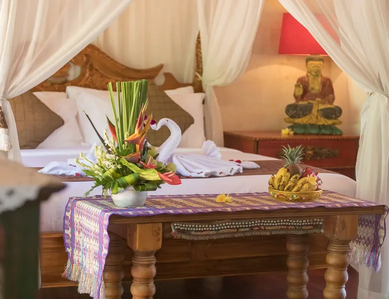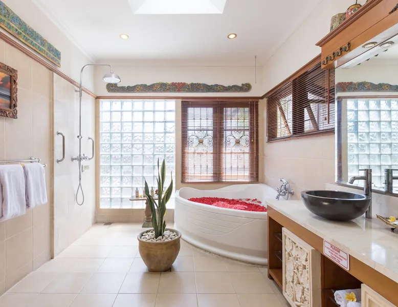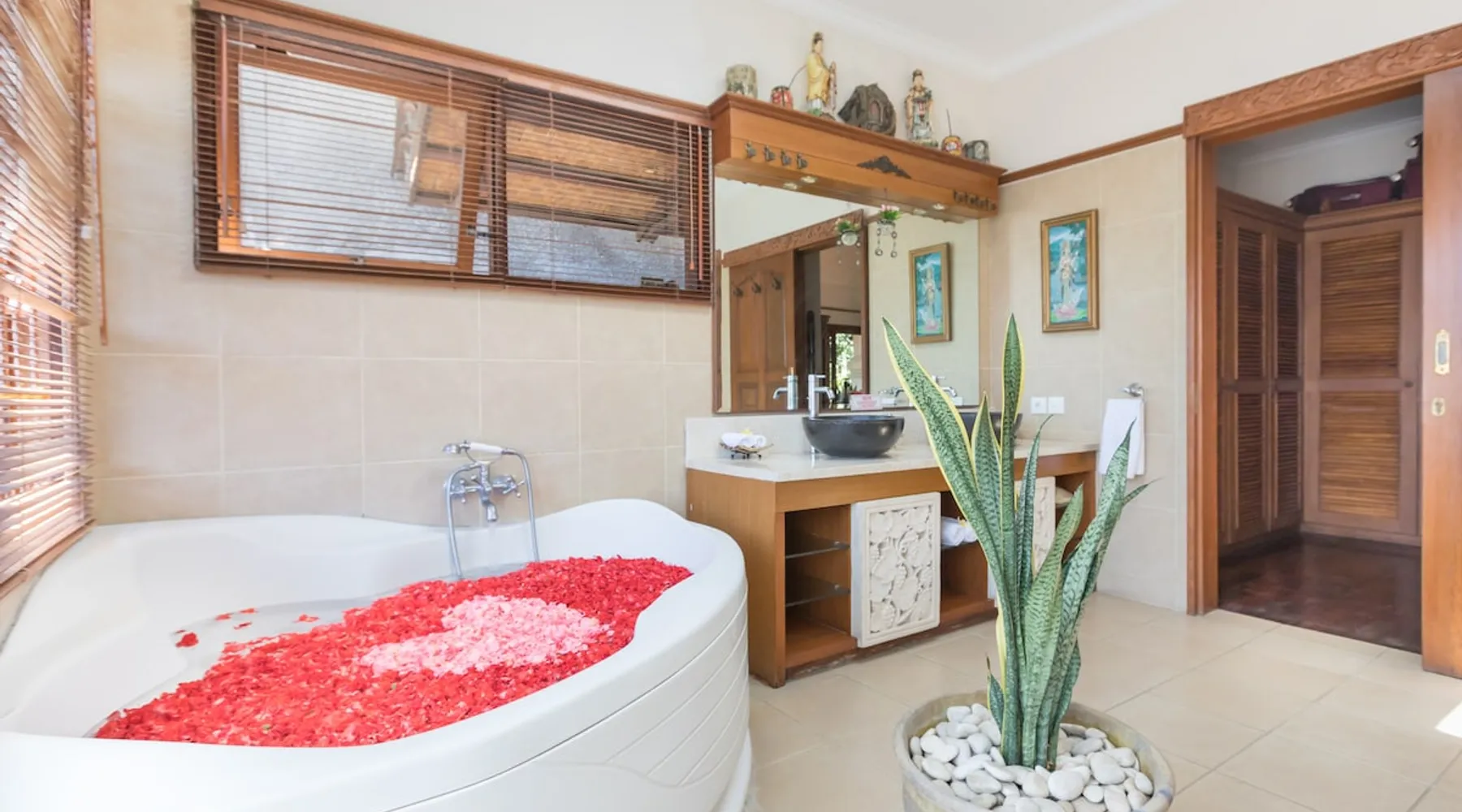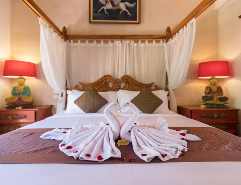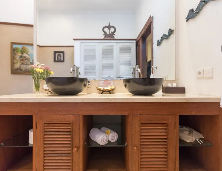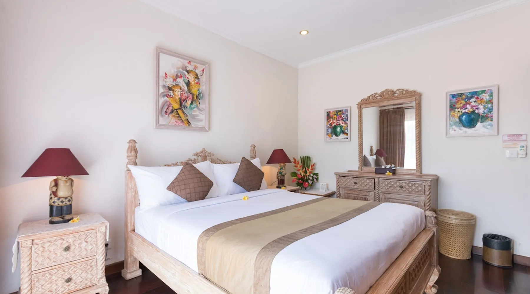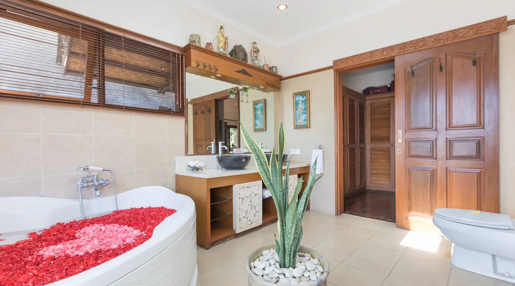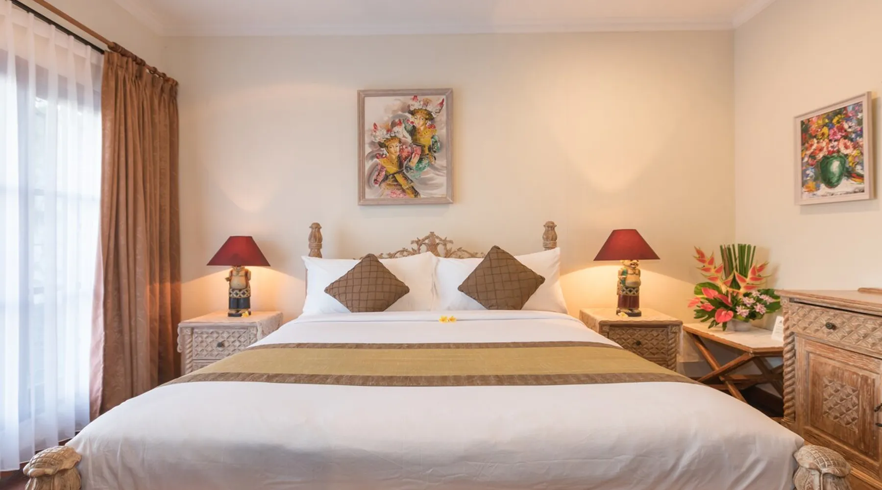 "Before sending a booking request, please contact us to inquire about any promotional rates that may be available. The pricing for the villa is dynamic and subject to change, with some dates potentially having discounted rates. Please note that the calendar for the villa may not always be up-to-date, so we recommend checking with us for last-minute availability." ============================================================= The space A charming 4-bedroom villa located in the heart of Seminyak. The villa is a true embodiment of Balinese culture, featuring traditional Balinese furnishings, design and ambiance that transports you to the charm of old Bali. Stepping inside, you are greeted by a well-landscaped garden, with stone steps leading you to the entrance of the villa. The villa has a spacious foreground, offering an open-plan living area that connects directly to the garden with a stunning view of the swimming pool. The living room is designed with multiple seating areas, allowing you to relax and enjoy the serene surroundings. The dining area, with its round table, creates a cozy and intimate space to gather with your family and friends. Perfect for outdoor relaxation, with sun loungers positioned in front of the swimming pool, where you can soak up the sun or watch your children play in the spacious garden. The fully equipped kitchen ensures that you have everything you need to prepare meals during your stay. Each of the four bedrooms is designed with a private bathroom, complete with a bathtub, offering a luxurious and comfortable retreat. The villa makes a great choice for guests who want to experience ethnic Balinese style while staying in the centre of Seminyak, with easy access to shops, restaurants, cafes and bars. It also provides a unique blend of traditional Balinese charm and modern comforts, making it the perfect destination for your Bali vacation. ============================================================= Our villas include the dedicated services of a Guest Relations Manager, available to assist with tours, transportation, massages, activities, reservations, and any other needs to ensure your vacation is memorable and hassle-free. From the moment you arrive, our team is committed to providing an unforgettable experience. We can arrange daily breakfast, lunch, dinner, or a BBQ at your villa, tailored to your preferences. To make your arrival and departure as seamless as possible, we offer airport transfer services at a reasonable cost. Please inform us if you require this service, and we will be happy to assist you.