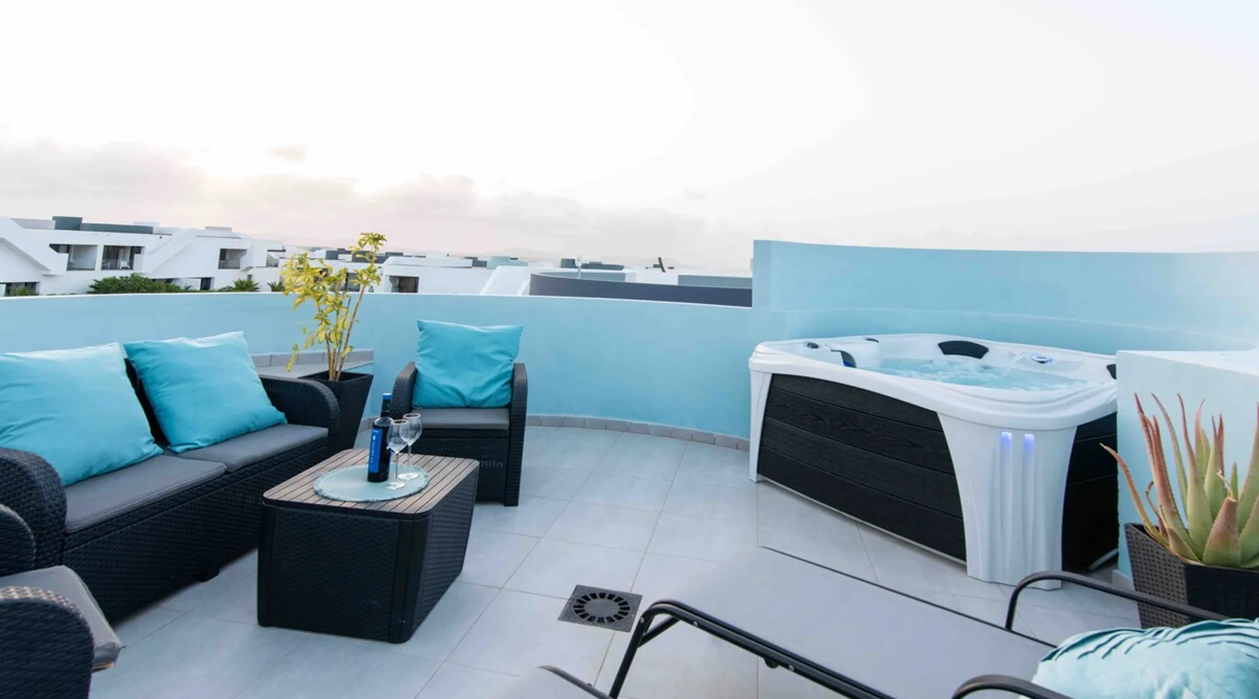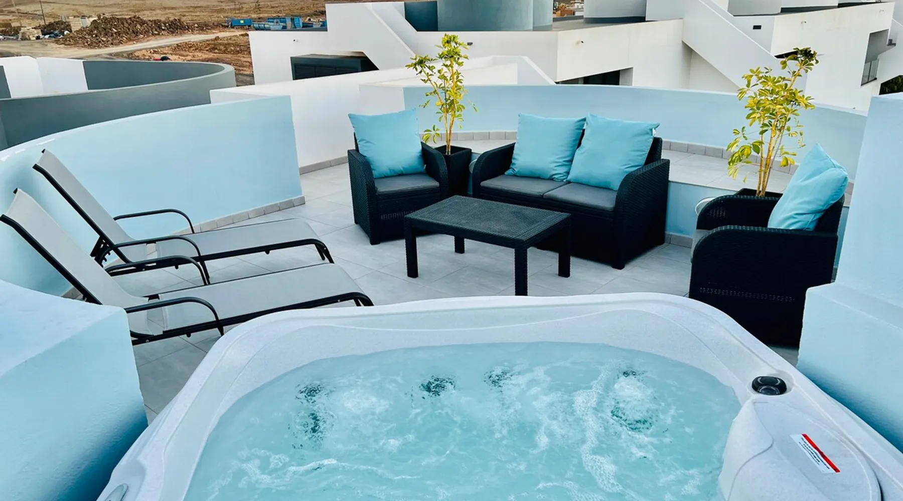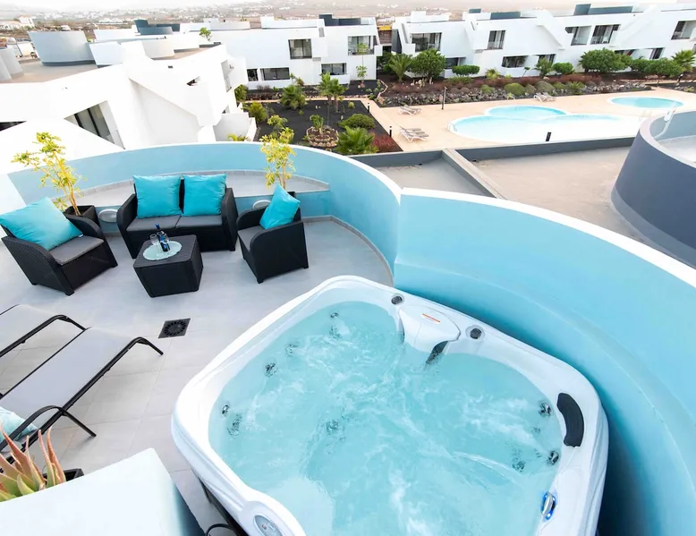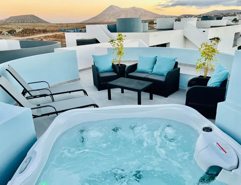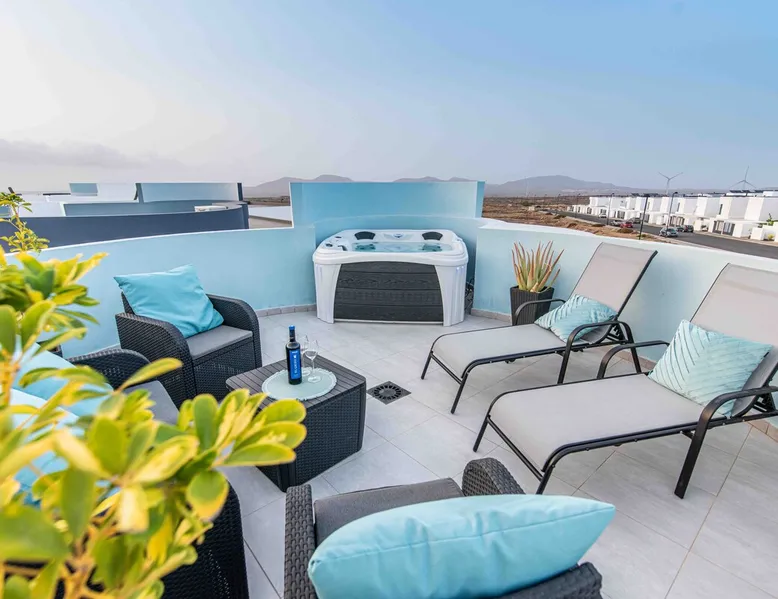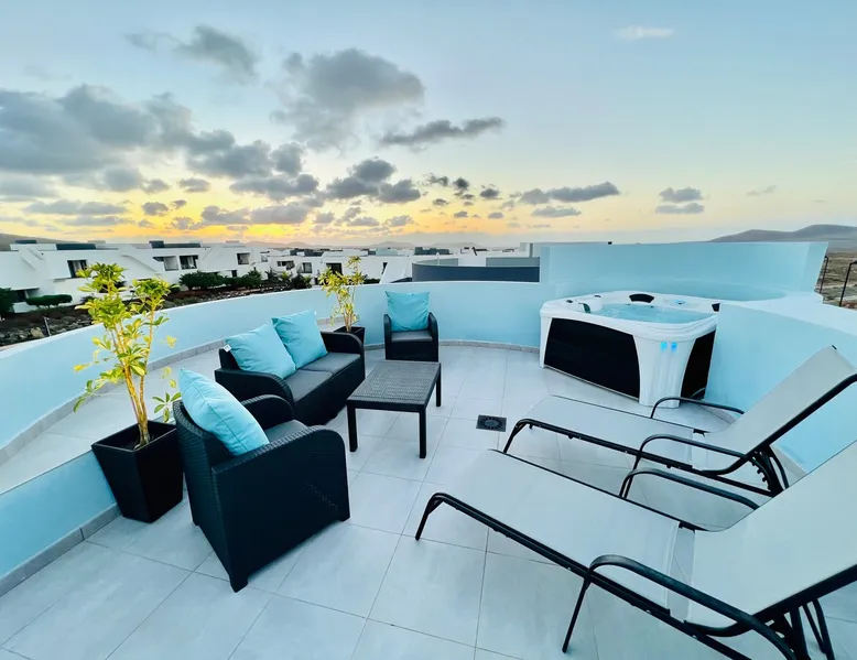 FUERTEVENTURA AZUL Vv - Solarium, Panoramic Terrace & JACUZZI With Views of Mountains, Volcanoes, Lanzarote Coast, Isla de Lobos, Lajares, El Cotillo and Corralejo Fuerteventura.Site AZUL Vv - Solarium, Panoramic Terrace & JACUZZI With Views of Mountains, Volcanoes, Lanzarote Coast, Isla de Lobos, Lajares, El Cotillo and Corralejo Super Host Vv Apartments S.L COMPANY INFORMATION Hello, I am Martin, responsible for the company SUPER HOST VV APARTMENTS S.L. (Luxury Holiday Apartments for rent in Fuerteventura) Always at the service of the guest and his comfort trying to provide solutions, ideas and unique experiences. At your disposal 24hs/7 DESCRIPTION OF THE ACCOMMODATION APARTAMENT "AZUL Vv"- NEW LUXURY ACCOMMODATION, HIGH QUALITY DESIGN, FIRST FLOOR WITH STAIRCASE TO A PANORAMIC TERRACE WITH VIEWS, SOLARIUM AND JACUZZI®. AIR CONDITIONING, HEATING by radiator and JACUZZI®. Impeccable with details not shown in the photos. We have High Speed and Quality Wifi Fiber Optic connection, ideal for TELE-WORKING OR ENJOY STREAMING SERVICES. LIVING ROOM equipped with 55' TV with smart TV, Audio Bar by Bluetooth ENERGY SYSTEM of great SOUND QUALITY! MATRIMONIAL BEDROOM, double bed, 32' TV with SAMSUNG smart TV, direct access to the BALCONY overlooking the pool, designed to enjoy alone or in company. FULL KITCHEN, cooking utensils, cutlery, DISHWASHER, VITROCERATOR, MICROWAVE, OVEN, FRIDGE, FREEZER, we have ORANGE EXPRIMATOR, BREAD TOASTER, ELECTRIC WATER HEATER. AS A COURTESY, we always leave pieces of fruit, bread, jams, butter, water and DOLCE GUSTO capsules for breakfast on the first day! FULL BATHROOM, floor-level shower tray, full sliding shower screen, SHAMPOO, SOAP, BATH SPONGE, CONDITIONER, HAIR DRYER, TOWELS. LAUNDRY ROOM, with WASHING MACHINE, ELECTRIC DRYER, STAND, IRONING BOARD, IRONING IRON, utensils and cleaning products. PANORAMIC TERRACE on the first floor, with sun loungers, outdoor furniture and JACUZZI®. BEACH and POOL You won't need to bring anything! The flat is equipped with CHAIRS, SUN SHADE AND TOWEL SET FOR THE BEACH, POOL or JACUZZI®, and for more fun games and entertainments for children and adults on the beach as well as at home; BALLS, SHOVELS, WATER GAMES, TABLE GAMES, such as TRIVIAL, CHESS, CARDS. This residence is the most beautiful of the island of Fuerteventura. It is new, quiet, modern and very well maintained thanks to the gardeners and employees. The swimming pools are great! In total there is 1 swimming pool for adults and 1 for children, surrounded by beautiful gardens with native plants and volcanic stones. The urbanisation has a security service and access control. SUPER HOST VV APARTMENTS S.L, adds 24hs alarm service from SECURITAS DIRECT and CAJA FUERTE in its flats AZUL Vv and AMARILLO Vv. The staff of SUPER HOST VV APARTMENTS S.L. speaks English, Spanish, French, Italian and sign language (deaf people). The APARTMENT looks like a suite of a BIG LUXURY HOTEL but with the comfort of being at HOME. INFORMATION ABOUT THE AREA CASILLA DE COSTA is 9 km from Corralejo and provides free parking, it is located in Villaverde, it has a strategic location, it is VERY NECESSARY to rent a car as it is IMPOSSIBLE to move around without it, being the largest island, SUPER HOST VV APARTMENTS S.L. offers contact with Car, Surf, Windsurf and Bicycle rental service providers. SUPERMARKETS HIPER DINO (Lajares, Corralejo, Villaverde, El Cotillo), LIDL (Corralejo and Puerto del Rosario) MERCADONA (Corralejo, Puerto del rosario) ALDI (Puerto del rosario) MARKET Saturday: Craft market in Lajares. RECOMMENDATIONS CAFES AND BAKERIES El Archo (Lajares) Panateca (Lajares) El Goloso (Lajares) Confectionery Mi Dulce Hogar (Villaverde) Restaurants near the Apartment: CASA MARCOS (Villaverde) EL MAHON (Villaverde) EL MORAL (Villaverde) EL HORNO (Villaverde) LA ABUELA MARÍA (Villaverde) In Lajares: You will find a lively area, affordable pinchos, restaurants and pizzerias. In Corralejo you will find beach bars (Chiringuitos), for example the one on the beach of the RIU hotel. In El Cotillo you will find restaurants with fresh catch of the day, octopus, fish, seafood and fresh seafood. Corralejo has a great nightlife and during the day you can enjoy the tranquillity of its beaches and hiking trails such as the route of the oldest volcanoes of the archipelago and Fuerteventura. Caleta de Fuste (El Castillo) is 29 km from the property, while Puerto del Rosario is 18 km away. The nearest airport is Fuerteventura, 23 km from the accommodation, PLACES OF INTEREST: Surroundings of the accommodation MAP What's nearby? Malpais de la Arena - 4,2 km Corralejo Botanical Park - 9 km Paleontological site of Barranco de los Encantados or Enamorados - 9 km Mountain of TindayA - 10 km Cancha de Majada Marcial - 17 km Majada Marcial Park - 17 km Native flowers - 7 km Park of Fabelo - 17 km New urbanisation of El Charco - 17 km Garden City - 17 km Recommended Restaurants and Cafeterias Cafeteria/bar El Horno - 2,3 km Cafeteria/bar Restaurante Casa Marcos - 2,4 km Cafeteria/bar Casa Marcos - 2,4 km Cafeteria/bar Escanfraga - 3,2 km Cafeteria/bar Cafe Manduca - 3,2 km Café/bar The Return Bar - 3,9 km Tourist attractions of note Ecomuseum of Alcogida - 18 km Unamuno's House Museum (Fuerteventura) - 18 km Natural surroundings Escanfraga (The highest mountain in La Oliva) - 3 km (Hiking) Atlantico - 6 km Beaches in the area El Moro Beach - 7 km El Burro Beach - 7 km Corralejo Natural Park - 8 km El Pozo Beach - 9 km El Jablito Beach - 9 km Nearest airports Fuerteventura Airport 23 km Lanzarote Airport 43 km * All distances are calculated in a straight line. Most popular services Outside Outdoor furniture Outdoor dining area Terrace / solarium Barbecue Jacuzzi® Patio Balcony Garden Views Views to an inner courtyard Views to a place of interest Views to the mountain Views to the swimming pool Garden view Carbon monoxide detector Safety deposit box Languages English Spanish French Italian Catalan Sign Lang