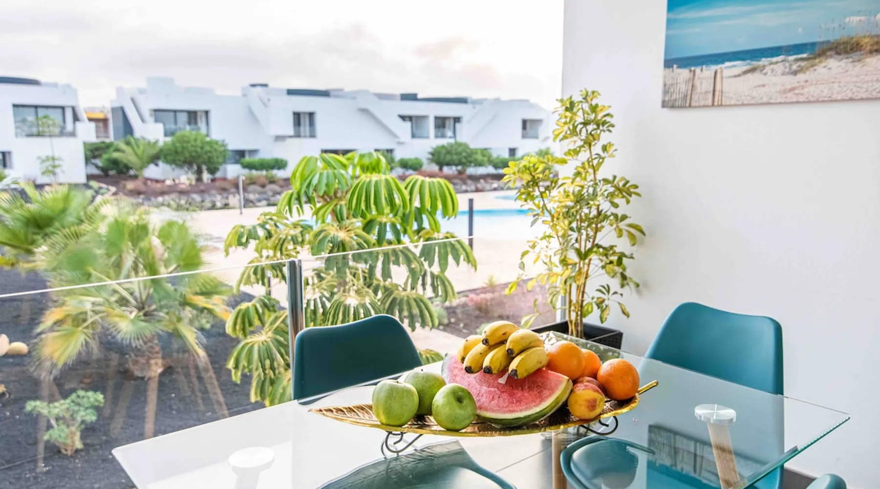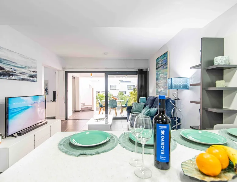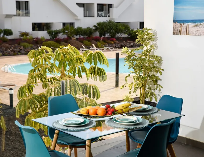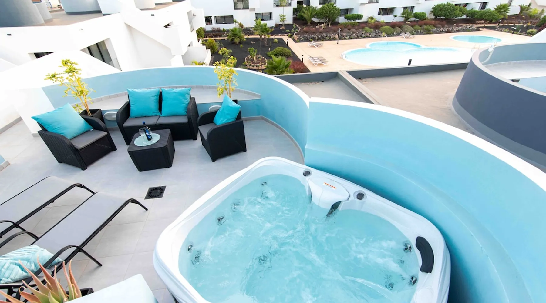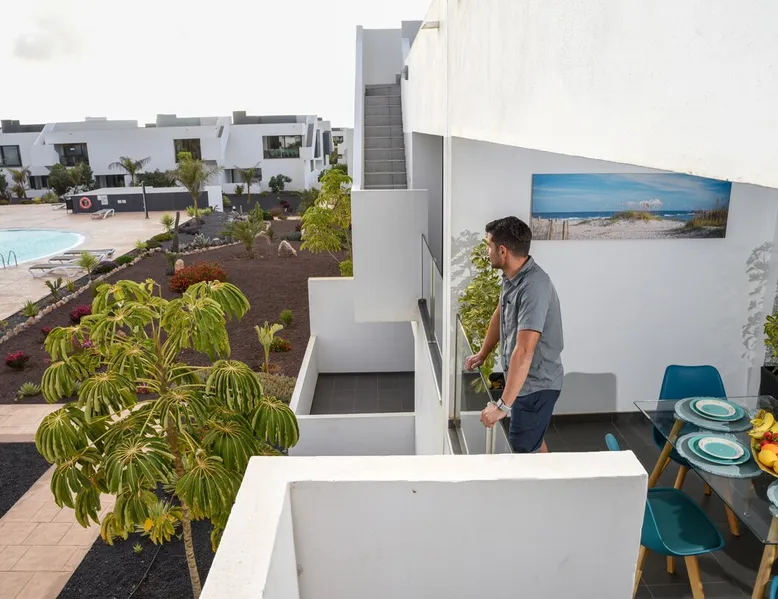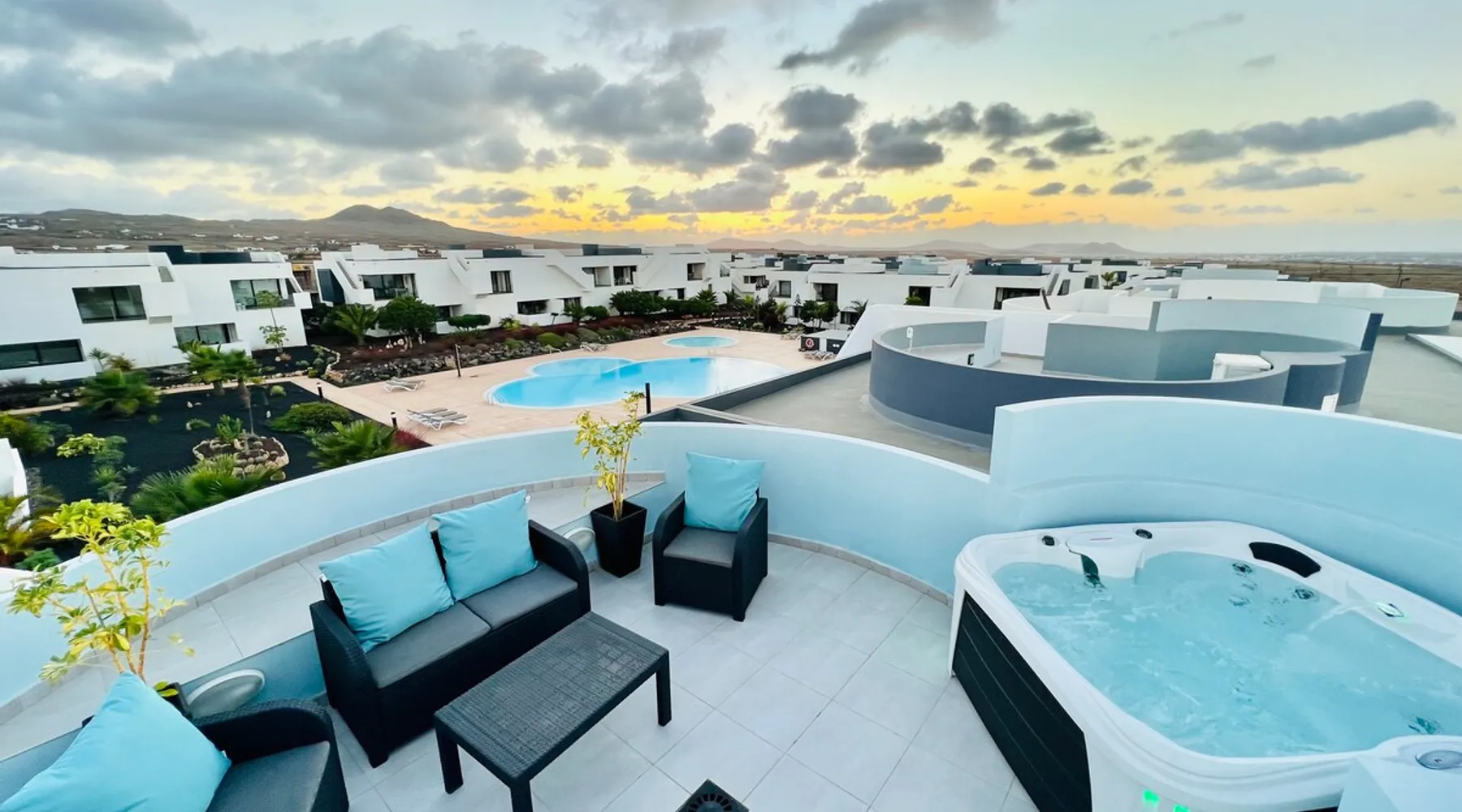 FUERTEVENTURA AZUL Vv - Solarium, Panoramic Terrace & JACUZZI With Views of Mountains, Volcanoes, Lanzarote Coast, Isla de Lobos, Lajares, El Cotillo and Corralejo Fuerteventura.Site AZUL Vv - Solarium, Panoramic Terrace & JACUZZI With Views of Mountains, Volcanoes, Lanzarote Coast, Isla de Lobos, Lajares, El Cotillo and Corralejo Super Host Vv Apartments S.L COMPANY INFORMATION Hello, I am Martin, responsible for the company SUPER HOST VV APARTMENTS S.L. (Luxury Holiday Apartments for rent in Fuerteventura) Always at the service of the guest and his comfort trying to provide solutions, ideas and unique experiences. At your disposal 24hs/7 DESCRIPTION OF THE ACCOMMODATION APARTAMENT "AZUL Vv"- NEW LUXURY ACCOMMODATION, HIGH QUALITY DESIGN, FIRST FLOOR WITH STAIRCASE TO A PANORAMIC TERRACE WITH VIEWS, SOLARIUM AND JACUZZI®. AIR CONDITIONING, HEATING by radiator and JACUZZI®. Impeccable with details not shown in the photos. We have High Speed and Quality Wifi Fiber Optic connection, ideal for TELE-WORKING OR ENJOY STREAMING SERVICES. LIVING ROOM equipped with 55' TV with smart TV, Audio Bar by Bluetooth ENERGY SYSTEM of great SOUND QUALITY! MATRIMONIAL BEDROOM, double bed, 32' TV with SAMSUNG smart TV, direct access to the BALCONY overlooking the pool, designed to enjoy alone or in company. FULL KITCHEN, cooking utensils, cutlery, DISHWASHER, VITROCERATOR, MICROWAVE, OVEN, FRIDGE, FREEZER, we have ORANGE EXPRIMATOR, BREAD TOASTER, ELECTRIC WATER HEATER. AS A COURTESY, we always leave pieces of fruit, bread, jams, butter, water and DOLCE GUSTO capsules for breakfast on the first day! FULL BATHROOM, floor-level shower tray, full sliding shower screen, SHAMPOO, SOAP, BATH SPONGE, CONDITIONER, HAIR DRYER, TOWELS. LAUNDRY ROOM, with WASHING MACHINE, ELECTRIC DRYER, STAND, IRONING BOARD, IRONING IRON, utensils and cleaning products. PANORAMIC TERRACE on the first floor, with sun loungers, outdoor furniture and JACUZZI®. BEACH and POOL You won't need to bring anything! The flat is equipped with CHAIRS, SUN SHADE AND TOWEL SET FOR THE BEACH, POOL or JACUZZI®, and for more fun games and entertainments for children and adults on the beach as well as at home; BALLS, SHOVELS, WATER GAMES, TABLE GAMES, such as TRIVIAL, CHESS, CARDS. This residence is the most beautiful of the island of Fuerteventura. It is new, quiet, modern and very well maintained thanks to the gardeners and employees. The swimming pools are great! In total there is 1 swimming pool for adults and 1 for children, surrounded by beautiful gardens with native plants and volcanic stones. The urbanisation has a security service and access control. SUPER HOST VV APARTMENTS S.L, adds 24hs alarm service from SECURITAS DIRECT and CAJA FUERTE in its flats AZUL Vv and AMARILLO Vv. The staff of SUPER HOST VV APARTMENTS S.L. speaks English, Spanish, French, Italian and sign language (deaf people). The APARTMENT looks like a suite of a BIG LUXURY HOTEL but with the comfort of being at HOME. INFORMATION ABOUT THE AREA CASILLA DE COSTA is 9 km from Corralejo and provides free parking, it is located in Villaverde, it has a strategic location, it is VERY NECESSARY to rent a car as it is IMPOSSIBLE to move around without it, being the largest island, SUPER HOST VV APARTMENTS S.L. offers contact with Car, Surf, Windsurf and Bicycle rental service providers. SUPERMARKETS HIPER DINO (Lajares, Corralejo, Villaverde, El Cotillo), LIDL (Corralejo and Puerto del Rosario) MERCADONA (Corralejo, Puerto del rosario) ALDI (Puerto del rosario) MARKET Saturday: Craft market in Lajares. RECOMMENDATIONS CAFES AND BAKERIES El Archo (Lajares) Panateca (Lajares) El Goloso (Lajares) Confectionery Mi Dulce Hogar (Villaverde) Restaurants near the Apartment: CASA MARCOS (Villaverde) EL MAHON (Villaverde) EL MORAL (Villaverde) EL HORNO (Villaverde) LA ABUELA MARÍA (Villaverde) In Lajares: You will find a lively area, affordable pinchos, restaurants and pizzerias. In Corralejo you will find beach bars (Chiringuitos), for example the one on the beach of the RIU hotel. In El Cotillo you will find restaurants with fresh catch of the day, octopus, fish, seafood and fresh seafood. Corralejo has a great nightlife and during the day you can enjoy the tranquillity of its beaches and hiking trails such as the route of the oldest volcanoes of the archipelago and Fuerteventura. Caleta de Fuste (El Castillo) is 29 km from the property, while Puerto del Rosario is 18 km away. The nearest airport is Fuerteventura, 23 km from the accommodation, PLACES OF INTEREST: Surroundings of the accommodation MAP What's nearby? Malpais de la Arena - 4,2 km Corralejo Botanical Park - 9 km Paleontological site of Barranco de los Encantados or Enamorados - 9 km Mountain of TindayA - 10 km Cancha de Majada Marcial - 17 km Majada Marcial Park - 17 km Native flowers - 7 km Park of Fabelo - 17 km New urbanisation of El Charco - 17 km Garden City - 17 km Recommended Restaurants and Cafeterias Cafeteria/bar El Horno - 2,3 km Cafeteria/bar Restaurante Casa Marcos - 2,4 km Cafeteria/bar Casa Marcos - 2,4 km Cafeteria/bar Escanfraga - 3,2 km Cafeteria/bar Cafe Manduca - 3,2 km Café/bar The Return Bar - 3,9 km Tourist attractions of note Ecomuseum of Alcogida - 18 km Unamuno's House Museum (Fuerteventura) - 18 km Natural surroundings Escanfraga (The highest mountain in La Oliva) - 3 km (Hiking) Atlantico - 6 km Beaches in the area El Moro Beach - 7 km El Burro Beach - 7 km Corralejo Natural Park - 8 km El Pozo Beach - 9 km El Jablito Beach - 9 km Nearest airports Fuerteventura Airport 23 km Lanzarote Airport 43 km * All distances are calculated in a straight line. Most popular services Outside Outdoor furniture Outdoor dining area Terrace / solarium Barbecue Jacuzzi® Patio Balcony Garden Views Views to an inner courtyard Views to a place of interest Views to the mountain Views to the swimming pool Garden view Carbon monoxide detector Safety deposit box Languages English Spanish French Italian Catalan Sign Lang