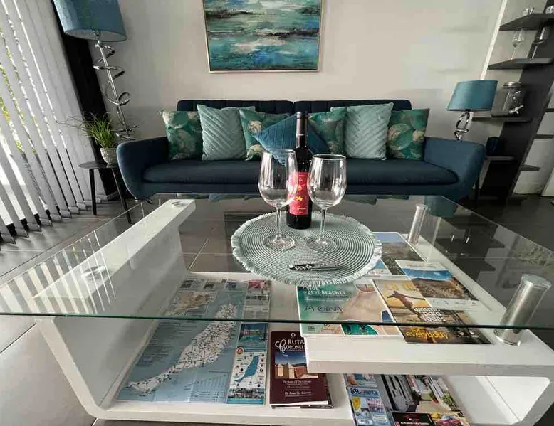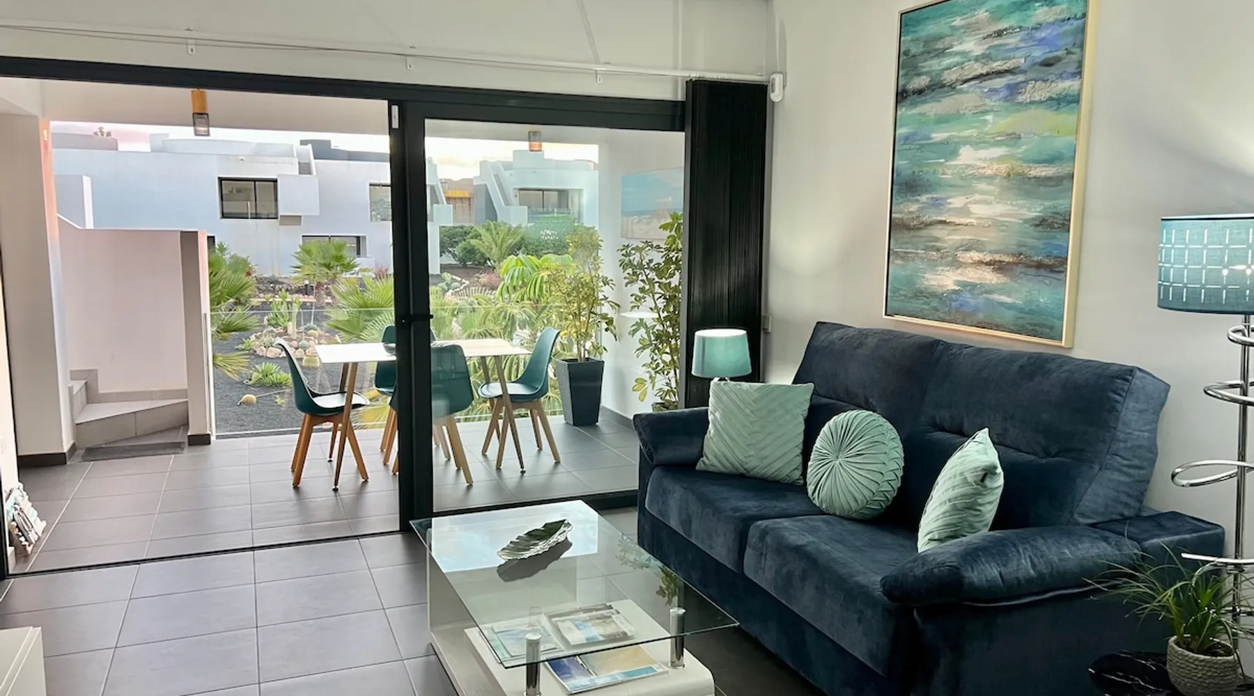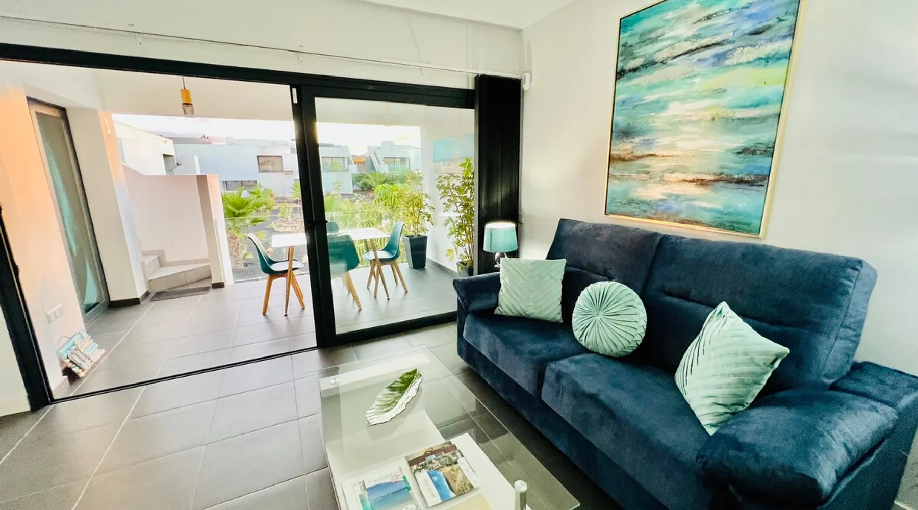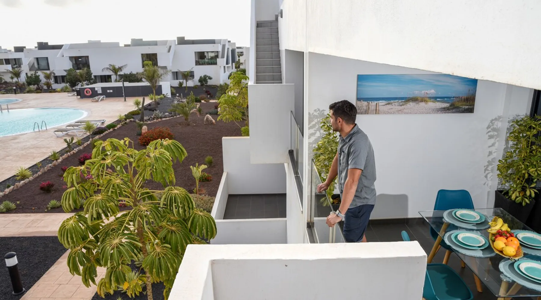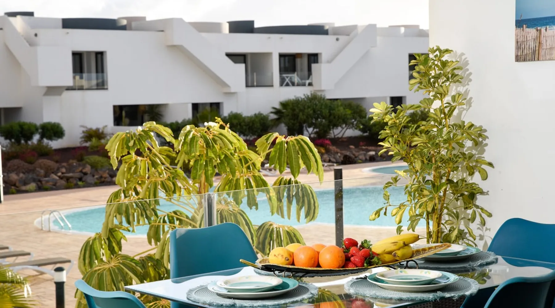 FUERTEVENTURA AZUL Vv - Solarium, Panoramic Terrace & JACUZZI With Views of Mountains, Volcanoes, Lanzarote Coast, Isla de Lobos, Lajares, El Cotillo and Corralejo Fuerteventura.Site AZUL Vv - Solarium, Panoramic Terrace & JACUZZI With Views of Mountains, Volcanoes, Lanzarote Coast, Isla de Lobos, Lajares, El Cotillo and Corralejo Super Host Vv Apartments S.L COMPANY INFORMATION Hello, I am Martin, responsible for the company SUPER HOST VV APARTMENTS S.L. (Luxury Holiday Apartments for rent in Fuerteventura) Always at the service of the guest and his comfort trying to provide solutions, ideas and unique experiences. At your disposal 24hs/7 DESCRIPTION OF THE ACCOMMODATION APARTAMENT "AZUL Vv"- NEW LUXURY ACCOMMODATION, HIGH QUALITY DESIGN, FIRST FLOOR WITH STAIRCASE TO A PANORAMIC TERRACE WITH VIEWS, SOLARIUM AND JACUZZI®. AIR CONDITIONING, HEATING by radiator and JACUZZI®. Impeccable with details not shown in the photos. We have High Speed and Quality Wifi Fiber Optic connection, ideal for TELE-WORKING OR ENJOY STREAMING SERVICES. LIVING ROOM equipped with 55' TV with smart TV, Audio Bar by Bluetooth ENERGY SYSTEM of great SOUND QUALITY! MATRIMONIAL BEDROOM, double bed, 32' TV with SAMSUNG smart TV, direct access to the BALCONY overlooking the pool, designed to enjoy alone or in company. FULL KITCHEN, cooking utensils, cutlery, DISHWASHER, VITROCERATOR, MICROWAVE, OVEN, FRIDGE, FREEZER, we have ORANGE EXPRIMATOR, BREAD TOASTER, ELECTRIC WATER HEATER. AS A COURTESY, we always leave pieces of fruit, bread, jams, butter, water and DOLCE GUSTO capsules for breakfast on the first day! FULL BATHROOM, floor-level shower tray, full sliding shower screen, SHAMPOO, SOAP, BATH SPONGE, CONDITIONER, HAIR DRYER, TOWELS. LAUNDRY ROOM, with WASHING MACHINE, ELECTRIC DRYER, STAND, IRONING BOARD, IRONING IRON, utensils and cleaning products. PANORAMIC TERRACE on the first floor, with sun loungers, outdoor furniture and JACUZZI®. BEACH and POOL You won't need to bring anything! The flat is equipped with CHAIRS, SUN SHADE AND TOWEL SET FOR THE BEACH, POOL or JACUZZI®, and for more fun games and entertainments for children and adults on the beach as well as at home; BALLS, SHOVELS, WATER GAMES, TABLE GAMES, such as TRIVIAL, CHESS, CARDS. This residence is the most beautiful of the island of Fuerteventura. It is new, quiet, modern and very well maintained thanks to the gardeners and employees. The swimming pools are great! In total there is 1 swimming pool for adults and 1 for children, surrounded by beautiful gardens with native plants and volcanic stones. The urbanisation has a security service and access control. SUPER HOST VV APARTMENTS S.L, adds 24hs alarm service from SECURITAS DIRECT and CAJA FUERTE in its flats AZUL Vv and AMARILLO Vv. The staff of SUPER HOST VV APARTMENTS S.L. speaks English, Spanish, French, Italian and sign language (deaf people). The APARTMENT looks like a suite of a BIG LUXURY HOTEL but with the comfort of being at HOME. INFORMATION ABOUT THE AREA CASILLA DE COSTA is 9 km from Corralejo and provides free parking, it is located in Villaverde, it has a strategic location, it is VERY NECESSARY to rent a car as it is IMPOSSIBLE to move around without it, being the largest island, SUPER HOST VV APARTMENTS S.L. offers contact with Car, Surf, Windsurf and Bicycle rental service providers. SUPERMARKETS HIPER DINO (Lajares, Corralejo, Villaverde, El Cotillo), LIDL (Corralejo and Puerto del Rosario) MERCADONA (Corralejo, Puerto del rosario) ALDI (Puerto del rosario) MARKET Saturday: Craft market in Lajares. RECOMMENDATIONS CAFES AND BAKERIES El Archo (Lajares) Panateca (Lajares) El Goloso (Lajares) Confectionery Mi Dulce Hogar (Villaverde) Restaurants near the Apartment: CASA MARCOS (Villaverde) EL MAHON (Villaverde) EL MORAL (Villaverde) EL HORNO (Villaverde) LA ABUELA MARÍA (Villaverde) In Lajares: You will find a lively area, affordable pinchos, restaurants and pizzerias. In Corralejo you will find beach bars (Chiringuitos), for example the one on the beach of the RIU hotel. In El Cotillo you will find restaurants with fresh catch of the day, octopus, fish, seafood and fresh seafood. Corralejo has a great nightlife and during the day you can enjoy the tranquillity of its beaches and hiking trails such as the route of the oldest volcanoes of the archipelago and Fuerteventura. Caleta de Fuste (El Castillo) is 29 km from the property, while Puerto del Rosario is 18 km away. The nearest airport is Fuerteventura, 23 km from the accommodation, PLACES OF INTEREST: Surroundings of the accommodation MAP What's nearby? Malpais de la Arena - 4,2 km Corralejo Botanical Park - 9 km Paleontological site of Barranco de los Encantados or Enamorados - 9 km Mountain of TindayA - 10 km Cancha de Majada Marcial - 17 km Majada Marcial Park - 17 km Native flowers - 7 km Park of Fabelo - 17 km New urbanisation of El Charco - 17 km Garden City - 17 km Recommended Restaurants and Cafeterias Cafeteria/bar El Horno - 2,3 km Cafeteria/bar Restaurante Casa Marcos - 2,4 km Cafeteria/bar Casa Marcos - 2,4 km Cafeteria/bar Escanfraga - 3,2 km Cafeteria/bar Cafe Manduca - 3,2 km Café/bar The Return Bar - 3,9 km Tourist attractions of note Ecomuseum of Alcogida - 18 km Unamuno's House Museum (Fuerteventura) - 18 km Natural surroundings Escanfraga (The highest mountain in La Oliva) - 3 km (Hiking) Atlantico - 6 km Beaches in the area El Moro Beach - 7 km El Burro Beach - 7 km Corralejo Natural Park - 8 km El Pozo Beach - 9 km El Jablito Beach - 9 km Nearest airports Fuerteventura Airport 23 km Lanzarote Airport 43 km * All distances are calculated in a straight line. Most popular services Outside Outdoor furniture Outdoor dining area Terrace / solarium Barbecue Jacuzzi® Patio Balcony Garden Views Views to an inner courtyard Views to a place of interest Views to the mountain Views to the swimming pool Garden view Carbon monoxide detector Safety deposit box Languages English Spanish French Italian Catalan Sign Lang