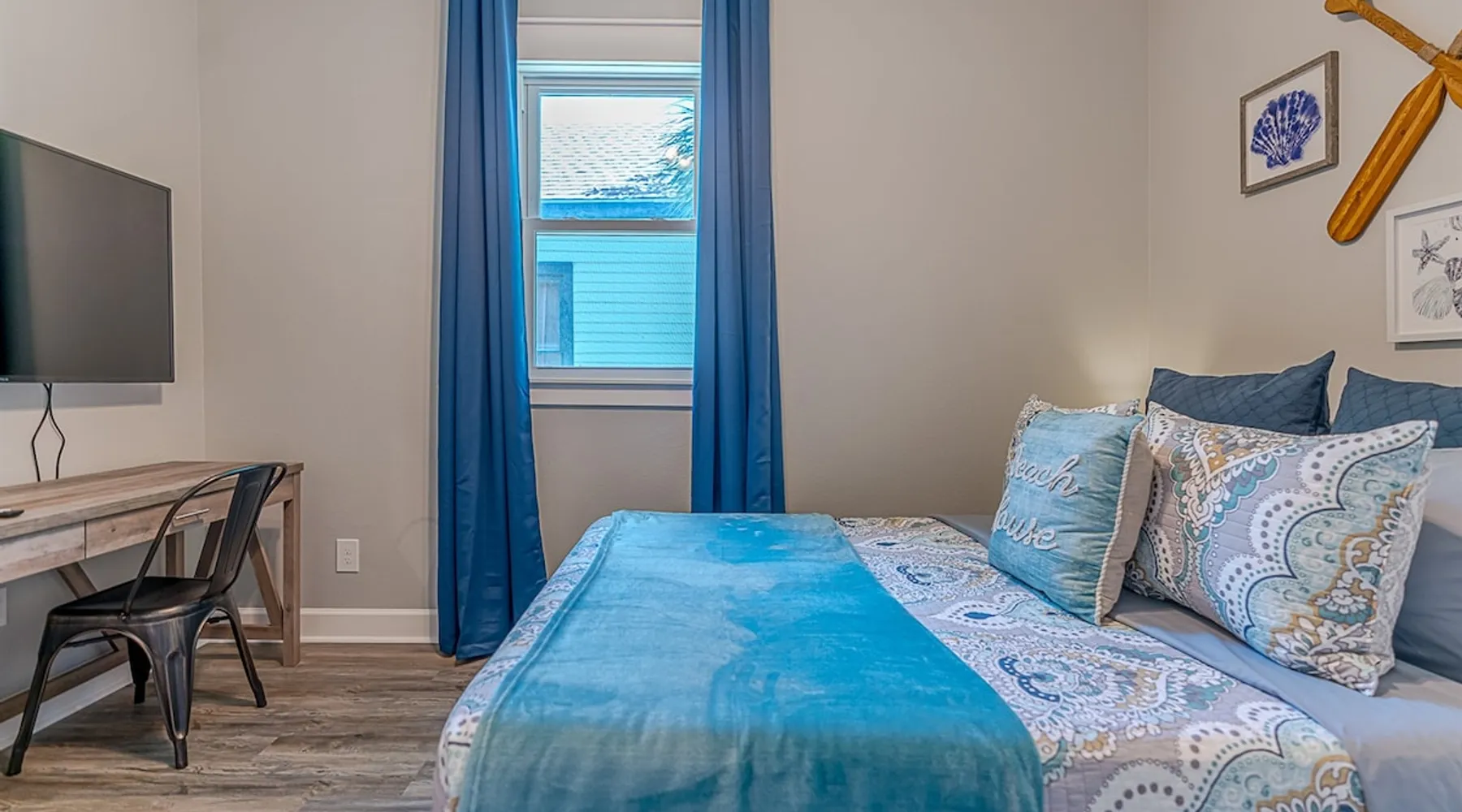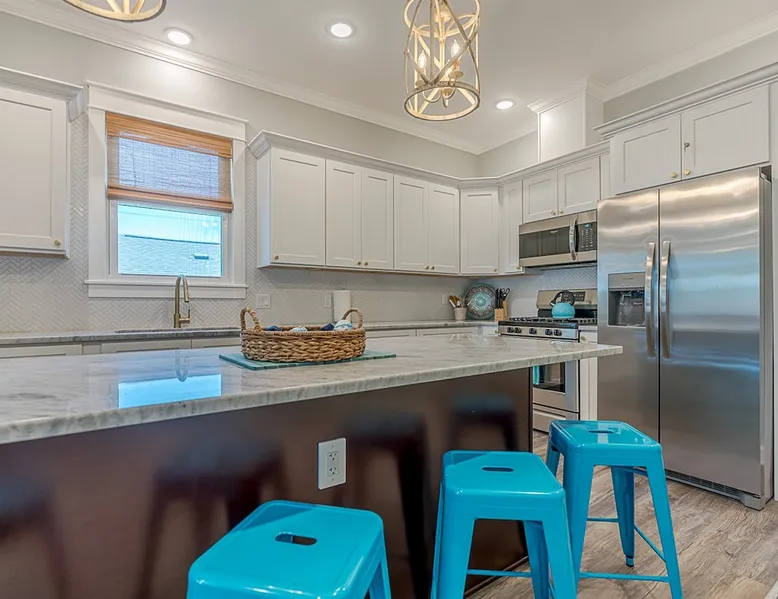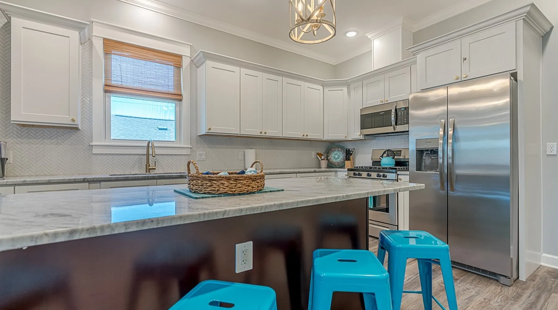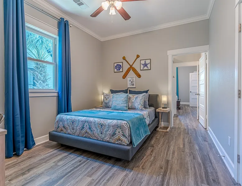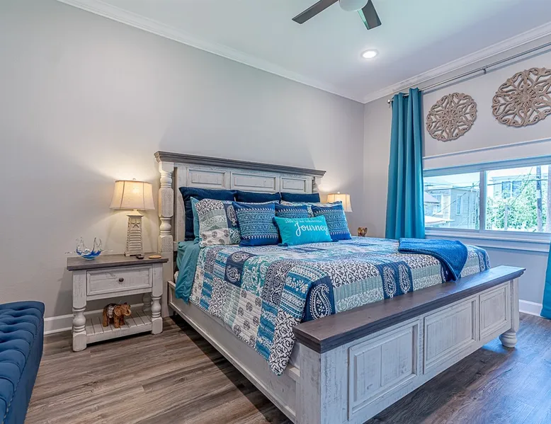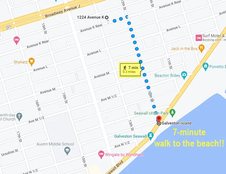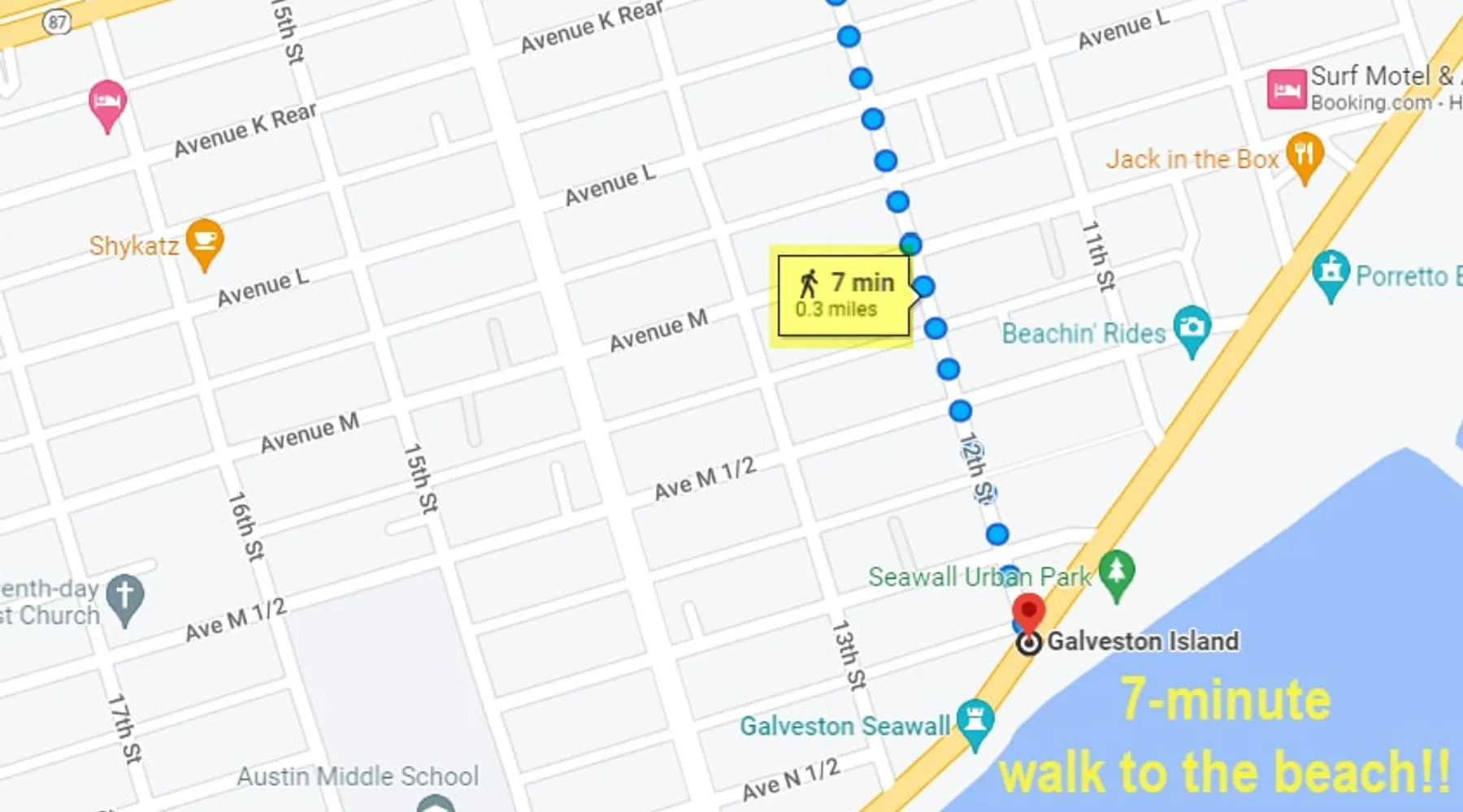 3 Bedrooms, 2.5 Bathrooms, Sleeps 8 - 1 king, 2 queens, 1 queen sofa bed Turquoise Shells is a beautiful coastal home located on the East end of the Island. As you enter the home, you will feel the calmness of the Island from the modern coastal décor. On some evenings, you can hear the ocean from the rocking chairs on the patio. Pets are considered on a case-by-case basis with a non-refundable pet fee. ALL RENTERS AGREE TO FOLLOW HOUSE RULES TO BOOK THIS HOUSE: The space As you enter Turquoise Shells, you will be wowed by the open floor plan! Spend relaxing evenings in the living room with a 65-inch smart TV. Be sure to check out the chef's dream kitchen, which is fully stocked, including cookware, crockpot, griddle, etc. The Coffee Bar has 2 types of coffee makers- Keurig for one or brew up a pot whole pot for the entire family. Turquoise Shells features 3 elegant bedrooms with black-out curtains in every bedroom for a perfect night's sleep after a busy day at the beach. All bedrooms have smart ROKU TVs where guests can log into their favorite streaming service using their own login credentials. The primary suite boasts a plush king-sized bed and has a spa-like ensuite with a walk-in shower, tub, and large closet with plenty of storage. The secondary bedrooms have comfy queen beds with a shared Jack n Jill bathroom. There is also a half bath so everyone can get ready at the same time. For our youngest guests, this home also has a pack-n-play, a highchair, and a ton of beach toys. The house also comes equipped with fun family games, including a ping-pong table in the garage. Turquoise Shells is conveniently located CLOSE TO SO MANY ATTRACTIONS: - Beach: 4.5 blocks away and only 0.3 miles/2-minute drive/9-minute walk - Pleasure Pier: 1.3 miles/5-minute drive - Schlitterbahn Water Park: 5.7 miles/18-minute drive - The Strand Historic District: 1.1 miles/4-minute drive - Bishop's Palace: 0.2 miles/1 minute drive/4-minute walk - Moody Gardens: 5.4 miles/18-minute drive - Moody Mansion: 1.1miles/3-minute drive - Galveston Railroad Museum: 1.6 miles/5-minute drive - Galveston Children's Museum: 1.1miles/3-minute drive We will email you our list of favorite "local" restaurants in the check-in instructions which you will receive 24-hours before your check-in date! Prepare to embark on an unforgettable experience at Turquoise Shells in Galveston, TX!! COMMUNITY POOLS: To help you make the most of your vacation, we’re pleased to inform you about two nearby community pools available for your use: Jamaica Beach Community Pool: Located 7 miles from Beachfront Bliss at 16721 Jolly Roger, Jamaica Beach, TX 77554, this pool is ideal for guests staying at Beachfront Bliss. Lasker Community Pool: Situated at 2016 43rd St, Galveston, TX 77550, Lasker Community Pool is just half a mile from Sapphire Shells and 3 miles from Turquoise Shells. You will receive an email with links to both pools in your check-in instructions. Please review the information for pool hours, fees, and other important details as they may vary throughout the year. RULES TO BOOK THIS HOUSE: 1. Rental agreement needs to be filled out within 48 hours of booking this home and a copy of a valid government-issued ID will need to be uploaded as a file when filling out the rental agreement (per insurance requirements). The rental agreement will be emailed to you immediately after booking if you book on an online booking site. 2. This home has a strict NO SMOKING and NO EVENTS/PARTY POLICY 3. Maximum number of guests is 8 and limited to those listed on the rental agreement. 4. Minimum age of primary renter is 25 PET RULES: Pets: This is a private Rental Property and only two pets (dogs only) are allowed that weigh 25 pounds each or less. Please keep your pet off the furniture and monitor them closely as the Owners are not responsible for their safety. THE GUESTS AGREE: - There will be an additional $200 fee if pet hair is found on furniture or bedding. - All excess dog hair will be swept, vacuumed, or otherwise picked up and removed from the inside of the home before departure. - Pets must be house-broken, up to date on all vaccinations, especially rabies, and at least one year old. - All pets must be treated with topical flea repellant 3 days before arrival. - Pets must be crated if left alone in the home and leashed in all public areas. - Guests are responsible for their pet's supplies including food, beds, blankets, bowls, etc. - To rinse off dirt and sand that the pet may have accumulated while outside, and dry thoroughly before entering the Rental Property. - To clean up after their dog and dispose of their waste promptly. - To keep the dog from being noisy and/or aggressive and causing annoyance or discomfort to others. - Dog beds, blankets, etc. will not be washed in the washer and dryer in the Rental Property. - Any dog with a recorded history of biting is strictly prohibited. - If any sign of pet damage or an unauthorized pet is discovered, then the Guest authorizes the Owner to charge the Guest an additional minimum $500 fee. - The Pet fee is per dog and nonrefundable. - To communicate with the Owner about bringing a dog and getting approval from the Owner via the booking platform messenger, text, or phone call before bringing a dog or risk being charged $500 for nondisclosure for each animal. ****Please note the owner and her 2 kids are highly allergic to cats so cats WILL NOT be allowed on the property. Guest access Access to the home will only be given if the rental agreement and a valid government-issued ID are on file. The ID can be uploaded through a secure portal at the same time the rental agreement is filled out. This is a requirement of our insurance policy. Guest will receive access codes 24 hours before check-in via the email address that was used to book the home. Other things to note Turquoise Shells Features: 1. A fully stocked chef's kitchen with everything you need to cook meals at home. 2. Charcoal BBQ grill, pin