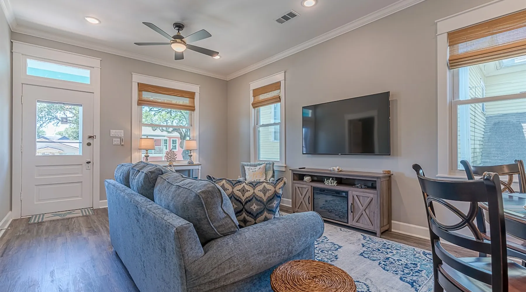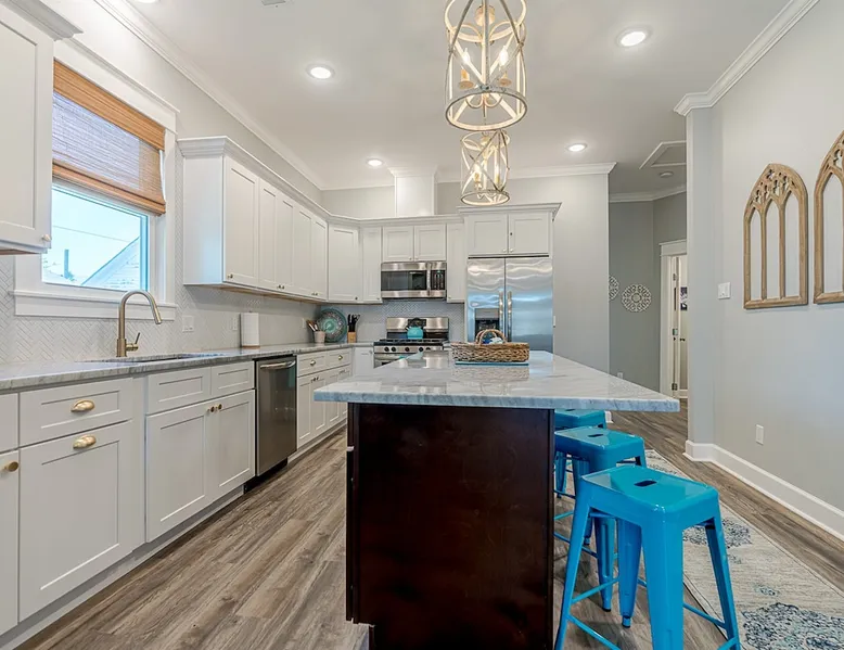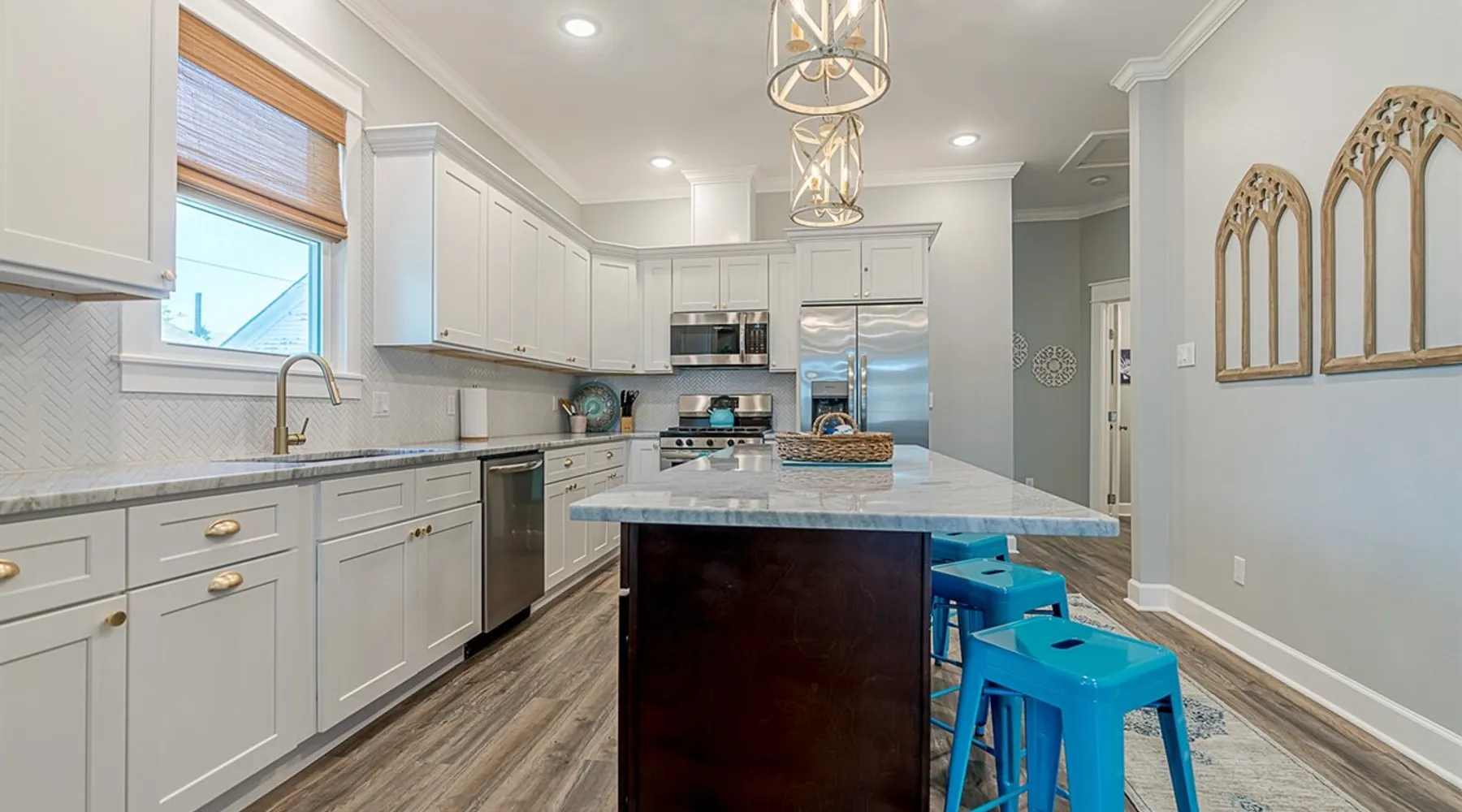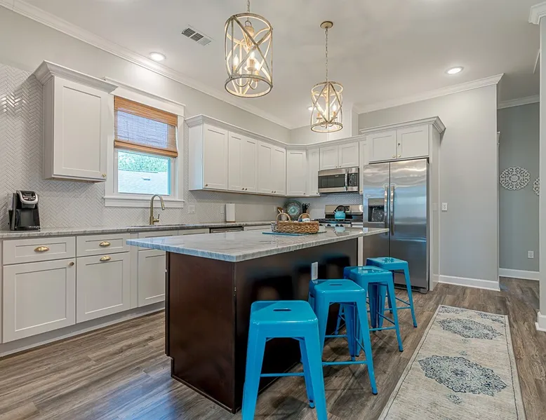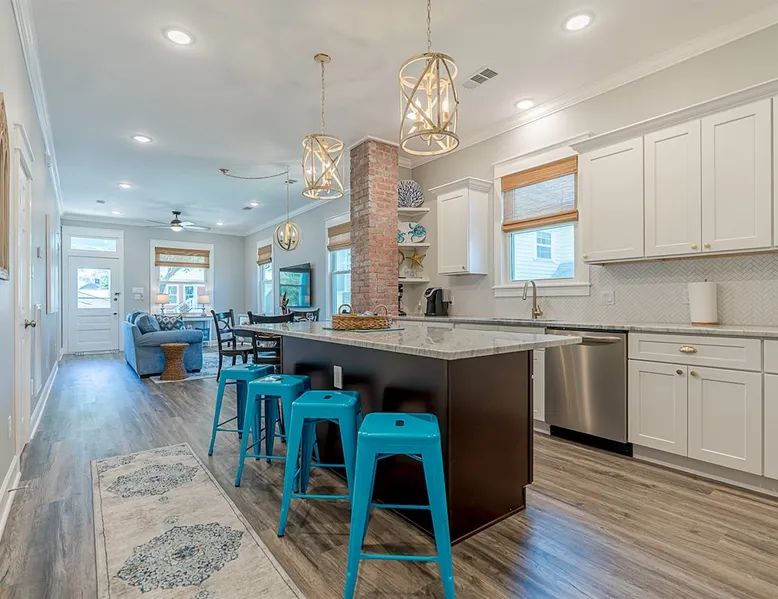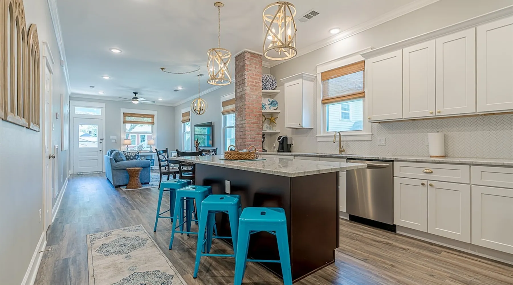 3 Bedrooms, 2.5 Bathrooms, Sleeps 8 - 1 king, 2 queens, 1 queen sofa bed Turquoise Shells is a beautiful coastal home located on the East end of the Island. As you enter the home, you will feel the calmness of the Island from the modern coastal décor. On some evenings, you can hear the ocean from the rocking chairs on the patio. Pets are considered on a case-by-case basis with a non-refundable pet fee. ALL RENTERS AGREE TO FOLLOW HOUSE RULES TO BOOK THIS HOUSE: The space As you enter Turquoise Shells, you will be wowed by the open floor plan! Spend relaxing evenings in the living room with a 65-inch smart TV. Be sure to check out the chef's dream kitchen, which is fully stocked, including cookware, crockpot, griddle, etc. The Coffee Bar has 2 types of coffee makers- Keurig for one or brew up a pot whole pot for the entire family. Turquoise Shells features 3 elegant bedrooms with black-out curtains in every bedroom for a perfect night's sleep after a busy day at the beach. All bedrooms have smart ROKU TVs where guests can log into their favorite streaming service using their own login credentials. The primary suite boasts a plush king-sized bed and has a spa-like ensuite with a walk-in shower, tub, and large closet with plenty of storage. The secondary bedrooms have comfy queen beds with a shared Jack n Jill bathroom. There is also a half bath so everyone can get ready at the same time. For our youngest guests, this home also has a pack-n-play, a highchair, and a ton of beach toys. The house also comes equipped with fun family games, including a ping-pong table in the garage. Turquoise Shells is conveniently located CLOSE TO SO MANY ATTRACTIONS: - Beach: 4.5 blocks away and only 0.3 miles/2-minute drive/9-minute walk - Pleasure Pier: 1.3 miles/5-minute drive - Schlitterbahn Water Park: 5.7 miles/18-minute drive - The Strand Historic District: 1.1 miles/4-minute drive - Bishop's Palace: 0.2 miles/1 minute drive/4-minute walk - Moody Gardens: 5.4 miles/18-minute drive - Moody Mansion: 1.1miles/3-minute drive - Galveston Railroad Museum: 1.6 miles/5-minute drive - Galveston Children's Museum: 1.1miles/3-minute drive We will email you our list of favorite "local" restaurants in the check-in instructions which you will receive 24-hours before your check-in date! Prepare to embark on an unforgettable experience at Turquoise Shells in Galveston, TX!! COMMUNITY POOLS: To help you make the most of your vacation, we’re pleased to inform you about two nearby community pools available for your use: Jamaica Beach Community Pool: Located 7 miles from Beachfront Bliss at 16721 Jolly Roger, Jamaica Beach, TX 77554, this pool is ideal for guests staying at Beachfront Bliss. Lasker Community Pool: Situated at 2016 43rd St, Galveston, TX 77550, Lasker Community Pool is just half a mile from Sapphire Shells and 3 miles from Turquoise Shells. You will receive an email with links to both pools in your check-in instructions. Please review the information for pool hours, fees, and other important details as they may vary throughout the year. RULES TO BOOK THIS HOUSE: 1. Rental agreement needs to be filled out within 48 hours of booking this home and a copy of a valid government-issued ID will need to be uploaded as a file when filling out the rental agreement (per insurance requirements). The rental agreement will be emailed to you immediately after booking if you book on an online booking site. 2. This home has a strict NO SMOKING and NO EVENTS/PARTY POLICY 3. Maximum number of guests is 8 and limited to those listed on the rental agreement. 4. Minimum age of primary renter is 25 PET RULES: Pets: This is a private Rental Property and only two pets (dogs only) are allowed that weigh 25 pounds each or less. Please keep your pet off the furniture and monitor them closely as the Owners are not responsible for their safety. THE GUESTS AGREE: - There will be an additional $200 fee if pet hair is found on furniture or bedding. - All excess dog hair will be swept, vacuumed, or otherwise picked up and removed from the inside of the home before departure. - Pets must be house-broken, up to date on all vaccinations, especially rabies, and at least one year old. - All pets must be treated with topical flea repellant 3 days before arrival. - Pets must be crated if left alone in the home and leashed in all public areas. - Guests are responsible for their pet's supplies including food, beds, blankets, bowls, etc. - To rinse off dirt and sand that the pet may have accumulated while outside, and dry thoroughly before entering the Rental Property. - To clean up after their dog and dispose of their waste promptly. - To keep the dog from being noisy and/or aggressive and causing annoyance or discomfort to others. - Dog beds, blankets, etc. will not be washed in the washer and dryer in the Rental Property. - Any dog with a recorded history of biting is strictly prohibited. - If any sign of pet damage or an unauthorized pet is discovered, then the Guest authorizes the Owner to charge the Guest an additional minimum $500 fee. - The Pet fee is per dog and nonrefundable. - To communicate with the Owner about bringing a dog and getting approval from the Owner via the booking platform messenger, text, or phone call before bringing a dog or risk being charged $500 for nondisclosure for each animal. ****Please note the owner and her 2 kids are highly allergic to cats so cats WILL NOT be allowed on the property. Guest access Access to the home will only be given if the rental agreement and a valid government-issued ID are on file. The ID can be uploaded through a secure portal at the same time the rental agreement is filled out. This is a requirement of our insurance policy. Guest will receive access codes 24 hours before check-in via the email address that was used to book the home. Other things to note Turquoise Shells Features: 1. A fully stocked chef's kitchen with everything you need to cook meals at home. 2. Charcoal BBQ grill, pin