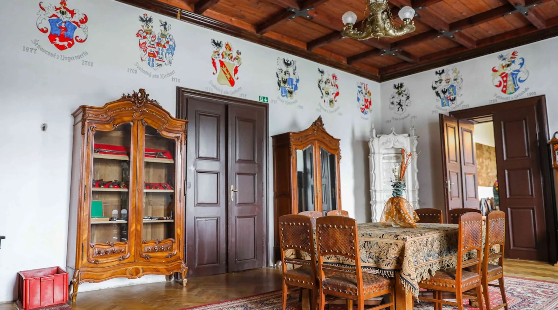 We offer 4 economy rooms (2x 2-bedded room, 1x 3-bedded room, 1x family 4-bedded room). Each room has its own WC and a shower. There is a shared living room with a couch, two armchairs and a coffee table located in the hall and also one shared refrigerator. Price is for 1 person per night. Each additional person 550CZK/1night. INCLUDED: breakfast NOT INCLUDED: City tax 5 CZK/person/night, dinner The space The Úsobí castle is more than suitable for couples as well as for families with kids or bigger groups of tourists, bikers, travellers or friends. We are only 1 hour driving to Praha! Our castle is located just 10 minutes driving to the Šacberk ski areal, 25 minutes to the Luka nad Jihlavou ski areal and 15 minutes to aquapark! And our hot tub is only a few stairs from your room! Come to enjoy the winter at our castle. Transfer yourself into the early 18th century at The Úsobí Castle. You can sit on a historical chair or browse a hundred-year-old book. The castle includes a tavern called At the White Lady, where you can enjoy a refreshing drink or a traditional meal. If you wish to organize a celebration, the Knights and Heroes Halls offer seating space for 120 persons. The chapel of the castle is perfect for weddings. We also have a French park and an English park with a playground for kids. You can enjoy your evening in our hot tub located in the castle cellar. Guest access The whole castle is accessible for our guests. Only the castle caretaker's apartment in the lower right part of the castle is private. During your stay There is always someone at the castle who can help you with any problem. The castle caretaker lives at the castle.