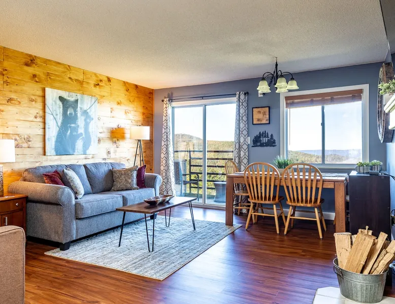 The Mountains are calling! Enjoy the breathtaking views of the beautiful Smoky Mountains during the day & the city lights at night, from your private balcony! The Summit condos are nestled high in the mountains over 3,000ft atop Ski Mountain Rd for all the amazing views! A perfect place to relax & enjoy a getaway in the Smokies! Be above the clouds & escape to our mountain place! ✦Brand New! State of the Art! - Indoor Heated Pool & Jacuzzis✦ The space **Add my listing to your wishlist by clicking the ❤ in the upper-right corner** "Wish I knew about Jake, and his airbnb way sooner!! From check in to checkout, everything was perfect! Clean, beautiful views, and an amazing trip on top of the mountain" - Pamela *Downtown Gatlinburg → 10 Minutes *Dollywood Park → 20 Minutes *Ober Gatlinburg → 6 Minutes *Pigeon Forge → Drive: 20 Minutes *Ripley's Aquarium → 12 Minutes *Gatlinburg Pigeon Forge Airport (KGKT) → 30 Minutes Away This is your chance to get away and enjoy everything the outdoors has to offer! ✦Brand New! State of the Art! - Indoor Heated pool & Jacuzzis ✦Sleeps six: 2 queen bed + sleeper sofa ✦NETFLIX login capability via SMART TV ✦2 indoor whirlpools/Hot Tubs ✦Arcade Games for Kids ✦Children’s playground ✦Unbelievable 2nd Floor views for miles ✦Fully equipped kitchen: stove, oven, full size refrigerator, microwave, coffee maker, toaster, blender, dishes, pots and pans ✦SMART Flat screen TV in living room and both bedrooms ✦Cozy wood burning fireplace ✦Cable TV with free high speed wifi ✦Linens and starter amenities provided ✦Central air conditioning and heating ✦Large outdoor pool ✦Coin operated laundry in the main building ✦Picnic area w/ BBQ grills ✦No onsite elevator (must use stairs) Please no pets / no smoking "Beautiful location with sunset views from the balcony. Amazing experience seeing wild animals like black bears right off the balcony is a major plus!" - Kaz ☎ Don't see the dates you're looking for or they're booked? Please refer to our other place in the exact same resort ➛ https://www.airbnb.com/rooms/52934213