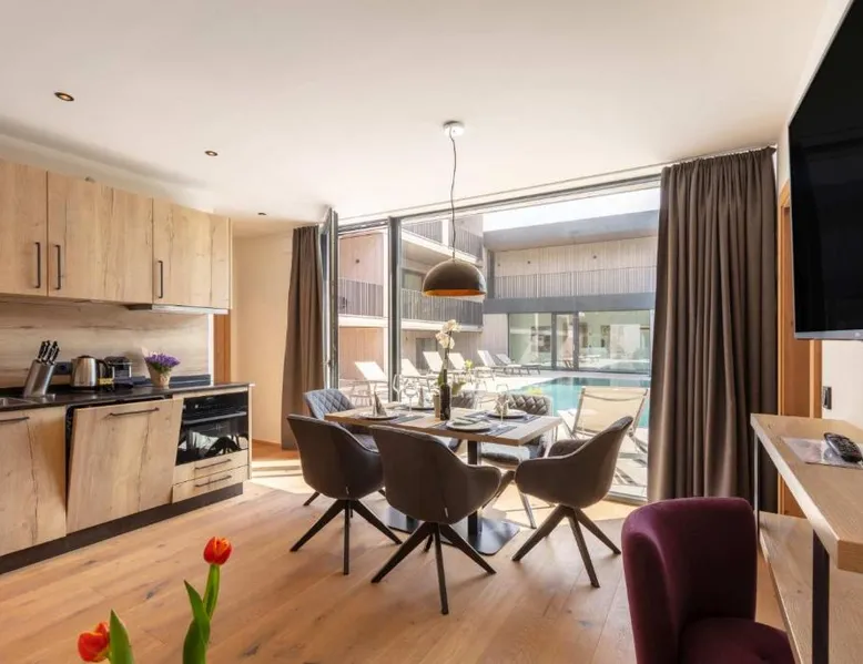 Comfortable Accommodations: Emma Deluxe Aparthotel in Piesendorf offers recently renovated aparthotel units with kitchenettes, private bathrooms, and modern amenities. Each apartment includes a dining area, work desk, and free WiFi. Leisure Facilities: Guests enjoy a year-round outdoor swimming pool, sun terrace, and lush garden. Additional facilities include a sauna, steam room, and fitness center. Free on-site private parking is available. Convenient Location: Located 63 mi from Salzburg W. A. Mozart Airport, the aparthotel is near winter sports attractions such as Zell am See-Kaprun Golf Course (1.7 mi) and Kaprun Castle (2.2 mi). Free toiletries and interconnected rooms enhance comfort. Guest Services: The aparthotel provides a paid shuttle service, lounge, minimarket, and electric vehicle charging station. Express check-in and check-out, ski storage, and bicycle parking are also available. This apartment features 1 living room, 2 separate bedrooms and 1 bathroom with a shower and a hairdryer. The well-fitted kitchen has a stovetop, a refrigerator, a dishwasher and kitchenware. Boasting a terrace with garden views, this apartment also features soundproof walls and a flat-screen TV with streaming services. The unit has 3 beds.