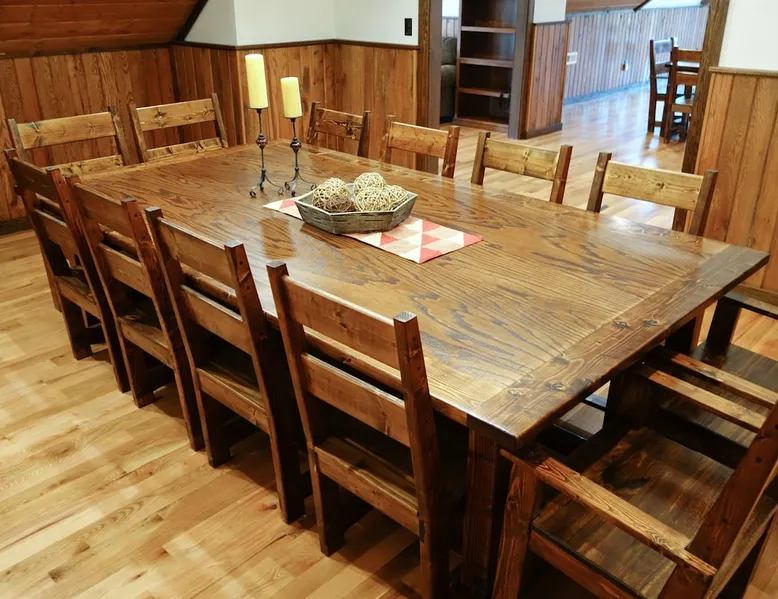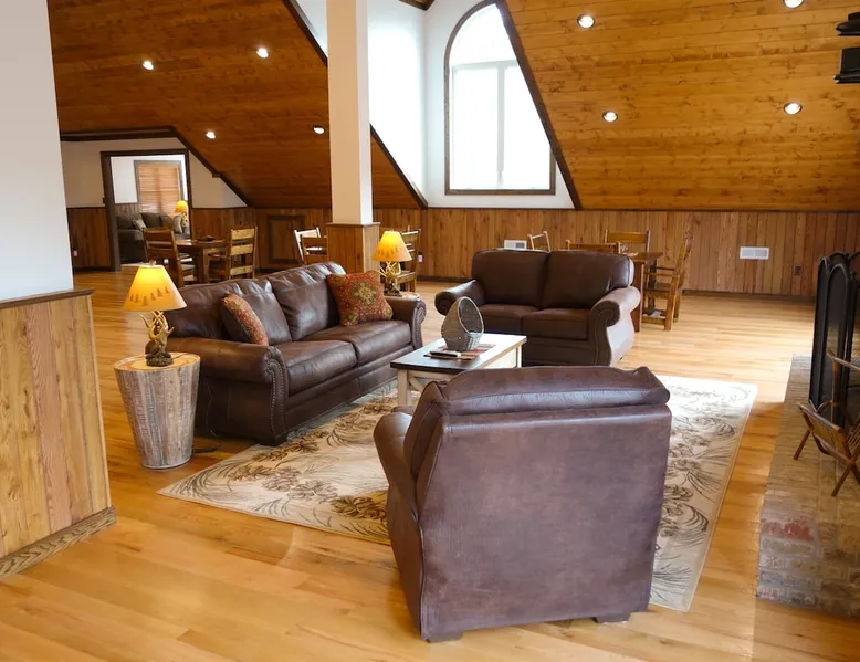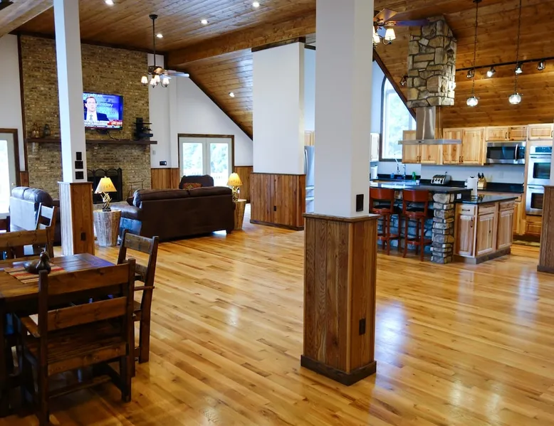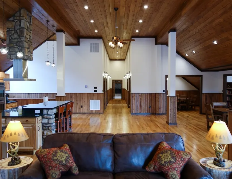 Escape the ordinary and elevate your vacation experience at our magnificent Lodge-style house nestled in the heart of the breathtaking mountains. This spectacular vacation rental offers an expansive 11,000 square feet of pure luxury, accommodating up to 42 guests comfortably. With 8 bedrooms and 5 bathrooms, this mountain oasis is the perfect destination for family reunions, corporate retreats, or any occasion worth celebrating. The space Parties and events are allowed. Interested in having an event at Westcott House? A fee of $600 covers the first 50 guests, and $400 for each 50 guests above that. Ask about events at Westcott today! Check-in is 4:00 pm and check-out is 11:00 am. Early check-in or late check-out may be available, please feel free to ask! Please note: The base rate includes 8 people. Additional guests are extra, please read the itemized charges carefully. Thank you! While this cabin does not accept furry friends, there is a great pet resort very close to Westcott- please feel free to ask us for details and contact information! Other things to note 🛌 Elegant Bedrooms: Each of the 8 spacious bedrooms is a haven adorned with cozy furnishings and plush bedding. Wake up to stunning views of the surrounding mountains and woods, breathing in the crisp, fresh air to start your day on the right note. 🍳 Gourmet Kitchens: The lodge boasts 2 fully-equipped gourmet kitchens with ample space and high-end appliances, making it a joy for culinary enthusiasts to prepare delicious meals for the entire group. Share laughter and stories as you gather around the grand dining area that comfortably seats everyone. 🔥 Cozy Common Areas: The lodge features spacious living areas designed for both relaxation and entertainment. Unwind in front of any of the three roaring fireplaces, watch your favorite movies on the large screen TV in the large rec room, or engage in friendly competitions in the game room equipped with billiards and ping pong. 🌲 Spectacular Views: Step outside onto the expansive deck and be greeted by awe-inspiring views of the majestic mountains and lush forests. Enjoy your morning coffee while listening to the serene sounds of nature, or gather around the enormous outdoor fire pit in the evenings for s'mores and stargazing. 🌟 Amenities Galore: High-speed Wi-Fi, streaming services (including Netflix, Hulu, YouTubeTV, Disney+, and ESPN+), a hot tub under the stars, a washer and dryer, and a barbecue area (charcoal) with picnic tables complete the package, ensuring that every moment of your stay is filled with comfort and convenience. 📍 Prime Location: Tucked away in the tranquility of the mountains, yet conveniently close to local attractions, restaurants, and shops, you'll enjoy the perfect blend of seclusion and accessibility.