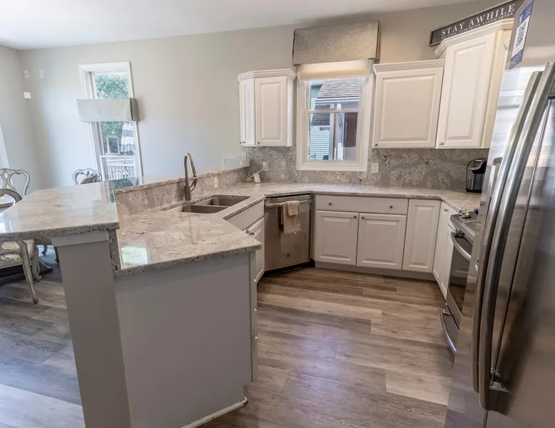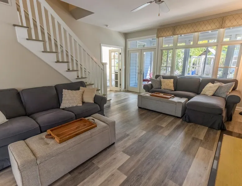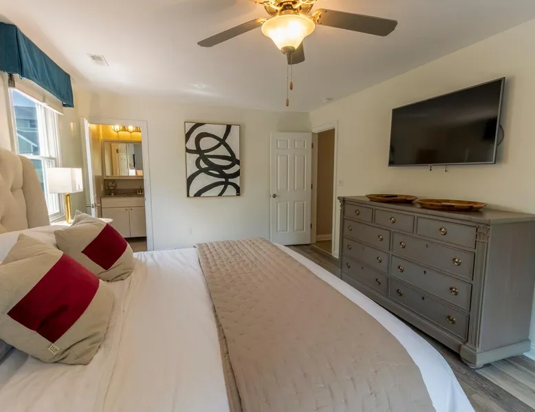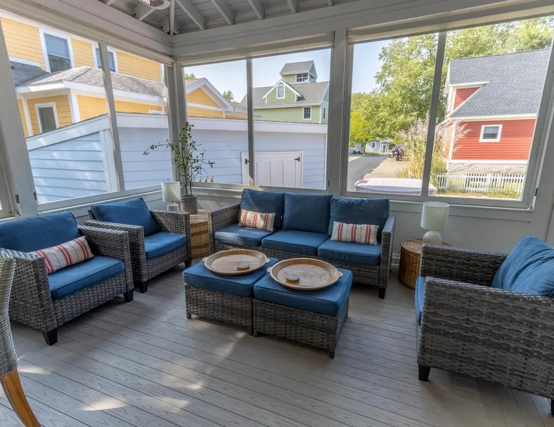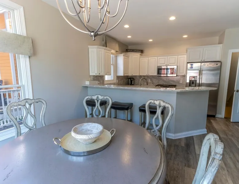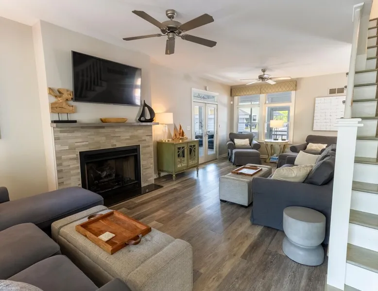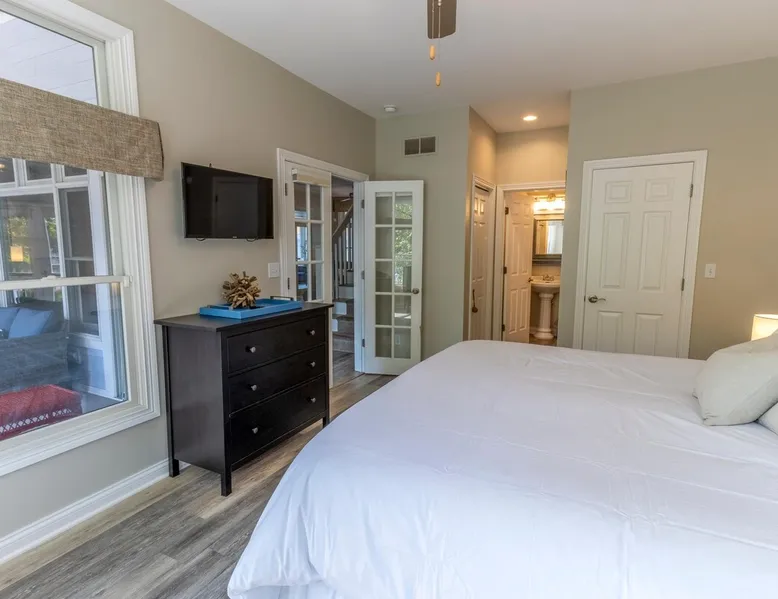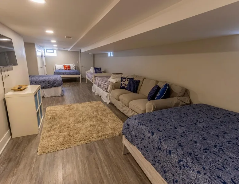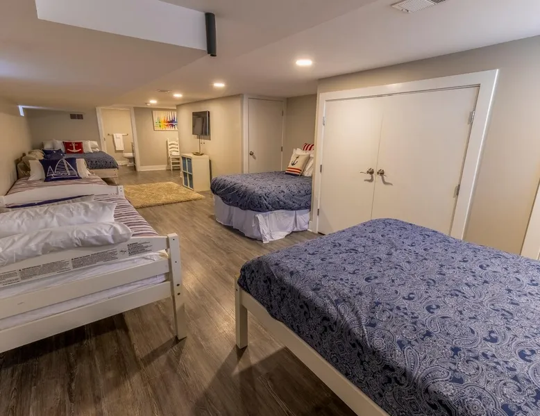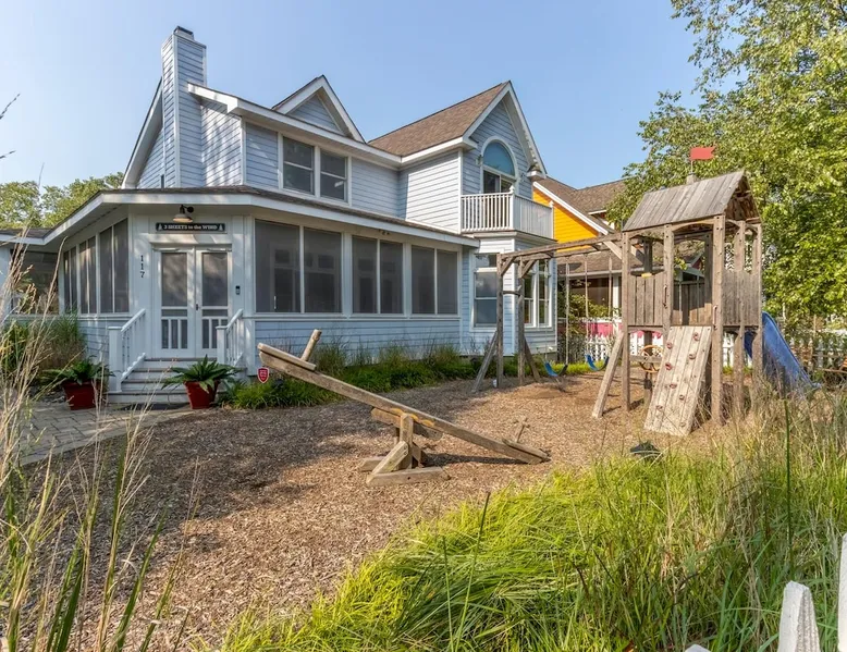 .Bring your family and friends to this beautifully furnished Beachwalk Resort home. The only home in all of the resort with its very own playscape, the kids will never want to leave. The space Bedroom: 4 | Bathroom: 3 | Sleeps: 16 Bring your family and friends to this beautifully furnished Beachwalk Resort home. The only home in all of the resort with its very own playscape, the kids will never want to leave. Please note, this home has a ring doorbell camera. BEDROOM and BATHROOM SET UP Main Level -Bedroom 1: King with Attached Bath -Bath 1: Attached to Bedroom 1 -Powder Room -Laundry Second Level -Bedroom 2: King with Attached Bath -Bedroom 3: King -Bedroom 4: Two Queens -Bath 2: Attached to Bedroom 2 -Bath 3: Standalone Full Bath Basement -Two Full Beds -Two Twins -One Queen -Powder Room INDOOR GATHERING SPACE The open floor plan allows for you and your guests to gather comfortably. Enjoy a family dinner together around the table or turn on your favorite movie for movie night. OUTDOOR GATHERING SPACE Relax on the wrap around screened in porch while the kids play in the fenced in yard. Reminisce your favorite past time with friends and family around the fire pit. HOUSE SPECIFIC AMENITIES Streaming TV, Wi-Fi, Linens, Fire Pit, Private Playscape LOCATION Centrally located in the Beachwalk Resort a short walk to the amenities and just minutes to the beach. PARKING Parking for 3 cars in front of the house, 3 cars in the back driveway, please do not block the neighbors and be sure your car is off the road as much as possible. HOUSE RULES -No smoking or vaping indoors -No pets -No PARTIES -No Prom Parties without Prior Authorization (Additional Fees Apply) -No Bachelor/Bachelorette Parties -No fireworks -Must be 25 years old and present for the duration of the stay to reserve. PROFESSIONALLY MANAGED Professionally managed means peace of mind during your stay. Front desk associates, housekeeping and maintenance staff are nearby should you need anything during your stay. It’s your vacation, we are here to ensure you enjoy it. RESORT AMENITIES AND INFO * indicates a seasonal amenity. 4ft heated pool*, toddler pool, basketball court*, tennis court, bocce ball court, shuffleboard, Sandcastle playground, putting green, paddle boarding and kayaking*, catch and release fishing. Parking Passes ($5 each) and Wristbands ($15 each) are required for all guests ages 4 and up mid-May through September. 3 Sheets to the Wind rents with a 7 night minimum with check-in and check-out on Sunday in peak season mid-June to mid-August.