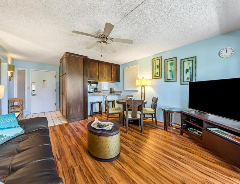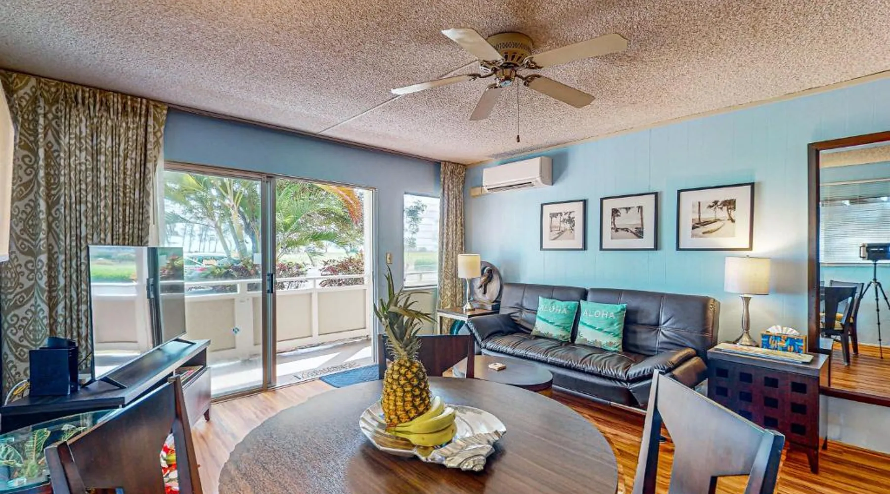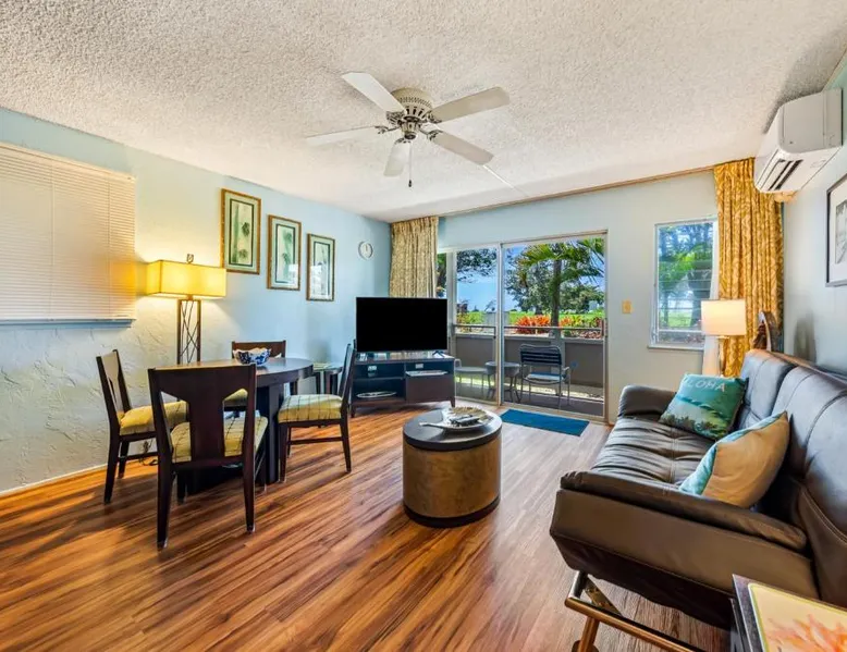 Comfortable Living: Plantation Hale F5 in Kapaa offers a one-bedroom apartment with a living room. The property features air-conditioning, a terrace, balcony, and a fully equipped kitchenette. Relaxing Amenities: Guests can enjoy an outdoor swimming pool and a hot tub. Additional amenities include streaming services, a work desk, and free toiletries. Convenient Location: Located 7.5 mi from Lihue Airport, the apartment is a 6-minute walk from Papaloa Beach. Nearby attractions include Lydgate Beach Park (1.9 mi) and Wailua Falls (9.3 mi). Boasting a private entrance, this air-conditioned apartment includes 1 living room, 1 separate bedroom and 1 bathroom with a hairdryer. In the well-fitted kitchen, guests will find a stovetop, a refrigerator, kitchenware and an oven. This apartment has a tea and coffee maker, a seating area, a TV with streaming services and a terrace. The unit has 3 beds.