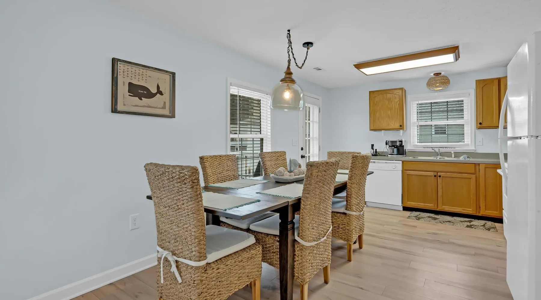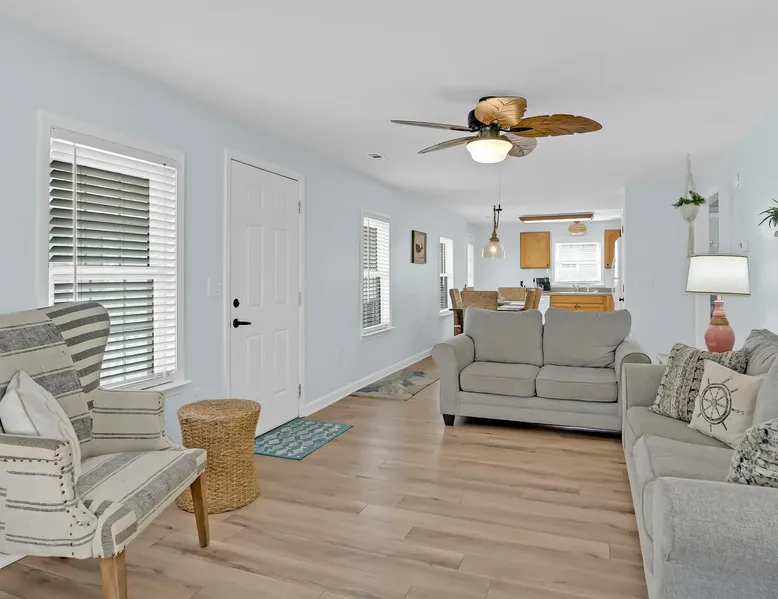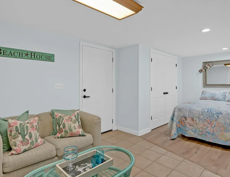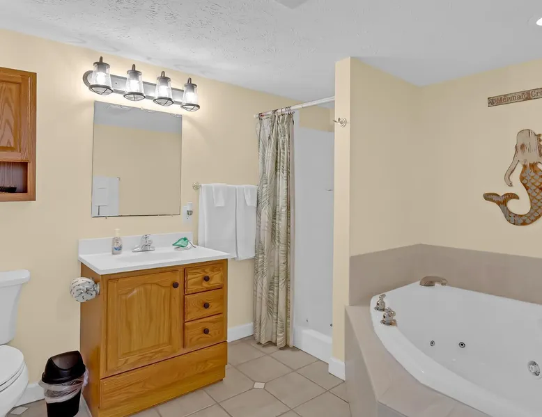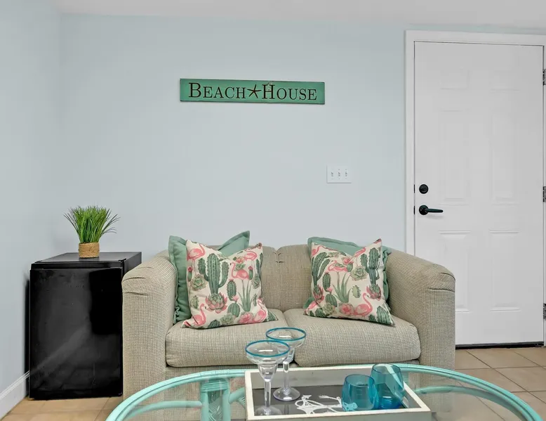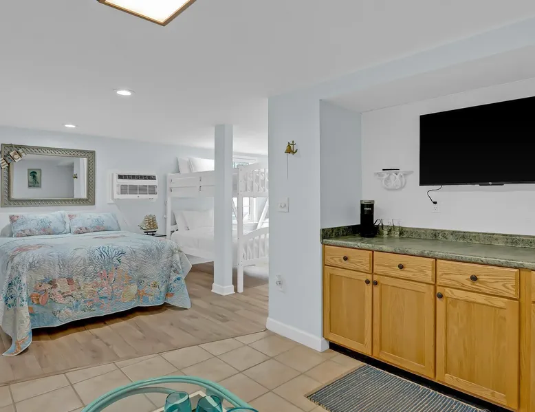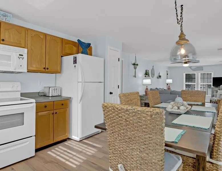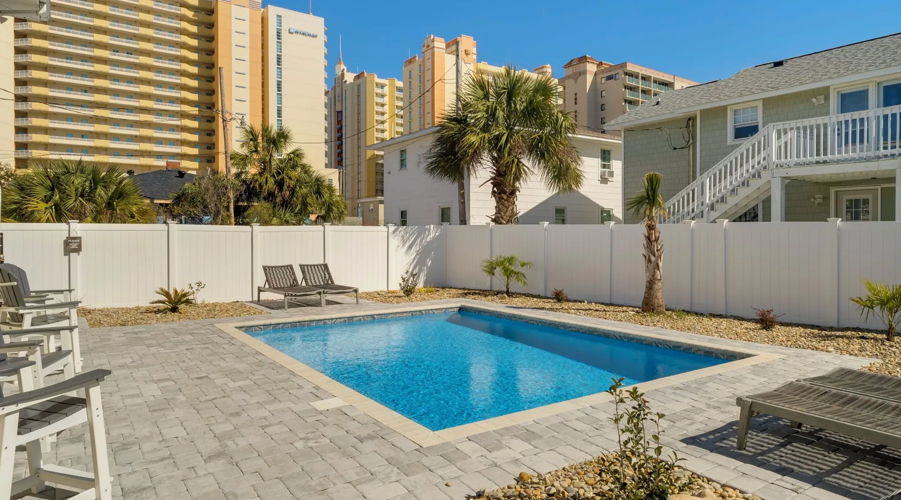 This private beach house, named The Wicked Whale, is only 0.1 miles from the beach and is located in the Ocean Drive section of North Myrtle Beach. This private house is pet friendly, has its own private pool and can accommodate a total of 16 people with 1 king, 1 queen, 2 fulls, 4 twins & 2 sleeper sofas. The main house (on the 2nd floor) has a total of 2 bedrooms and 1.5 bathrooms. This part of the house features a fully equipped kitchen, spacious living room w/1 sleeper sofa, dining area, washer & dryer and large balcony. Bedroom #1 has 1 king and an attached 1/2 bathroom and bedroom #2 has 1 full & 1 twin. The full bathroom is located in the hall. The 2nd part of the house is mother-in-law suite on the ground floor with private entrance. The mother-in-law suite is perfect for older kids who want their own space or guests that have difficulty with too many stairs. The mother-in-law suite is set up like a studio and features a small living room w/ 1 sleeper sofa, a kitchenette, mini fridge, 1 queen size bed and 2 sets of bunk beds (1 set is a twin over twin, the other set is a twin over full). This level also features a full bathroom with garden tub and stand up shower. The over sized lot includes a fenced in yard, private pool, professionally landscaped yard, and seating around the pool. Additional features include free W-Fi, cable TV and parking for multiple vehicles. PET FRIENDLY (DOGS ONLY) WITH $200 NON-REFUNDABLE PET FEE!! The Wicked Whale is only 3 blocks (0.4 miles) from McClean Park which has 2 playgrounds, a baseball field, pond w/fountain, walking trail & picnic gazebos and only 5 blocks (0.5 miles) from Main Street where you can enjoy The Pavilion Arcade & ice cream shop, several restaurants, souvenir & specialty shops and popular shag clubs & beach bars (some places are only open seasonally). During the summer months, there is also a small amusement park set up with rides, food & games. There is also a 1 car garage full of beach equipment for your convenience. Exterior of property is under 24 video surveillance. Free Fun Included Every Day! To enhance your vacation experience, North Beach Vacations has partnered with Xplorie, which means your stay includes over $250.00 in complimentary activities, per day. Just for booking with us, you’ll receive free tickets, every day of your stay to top activities like golfing, water parks, dinner shows, and more!!! ***ONLY VALID FOR SHORT TERM STAYS 27 NIGHTS OR LESS*** MOTORCYCLES, TRAILERS BOATS, RV'S, AND GOLF CARTS ARE ALLOWED TO BE PARKED ONSITE! HOWEVER, PARKING IS LIMITED. WE DO OFFER FREE PARKING AT OUR LOCAL RENTAL OFFICE. PARK AT YOUR OWN RISK. NO SMOKING! PETS ARE WELCOME (DOGS ONLY) WITH $200 NON-REFUNDABLE PET FEE! 25 YEAR AGE REQUIRMENT! FOR ALL NON-FAMILY GROUPS, EVERYONE MUST MEET THIS AGE REQUIRMENT AT THE TIME OF CHECK-IN!