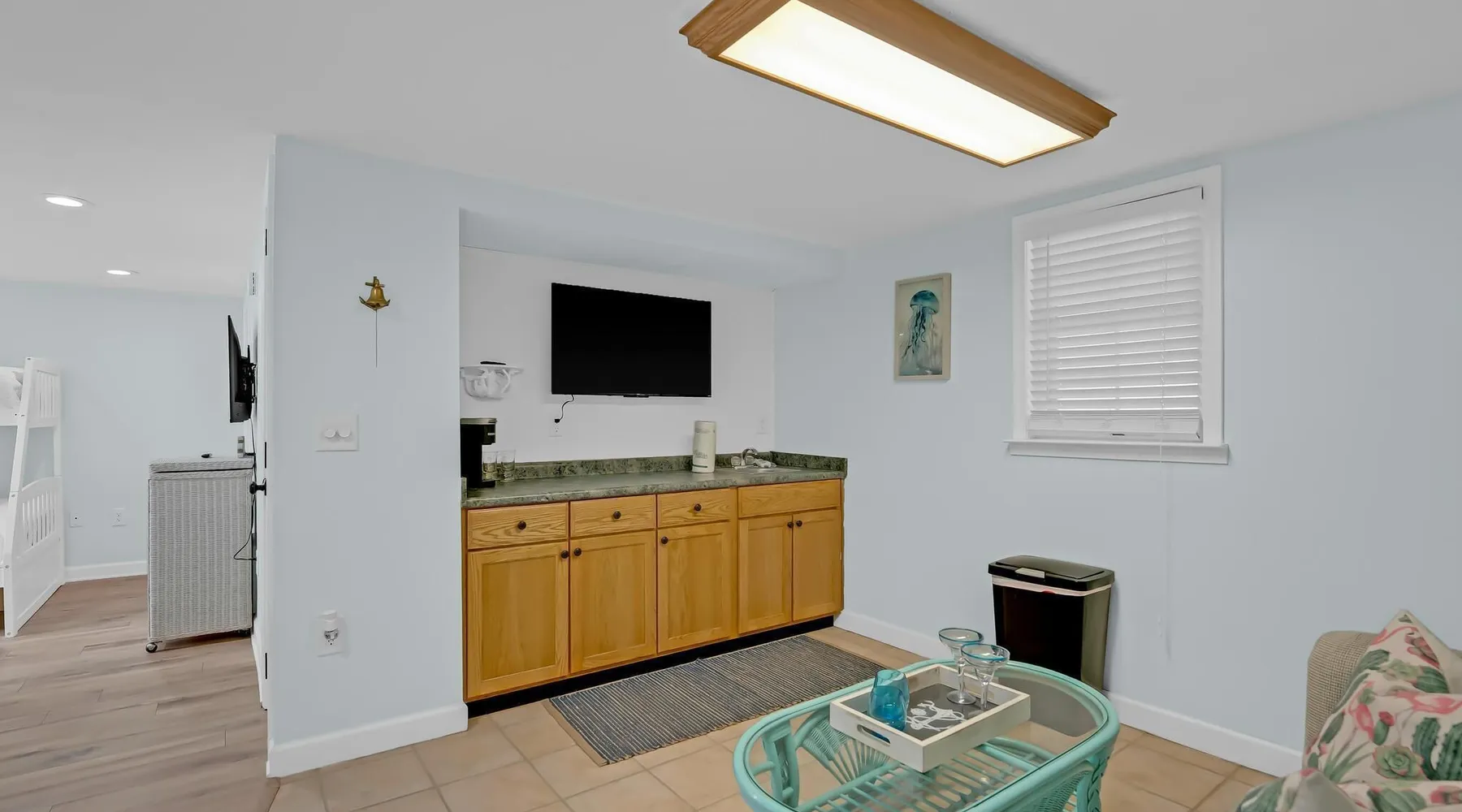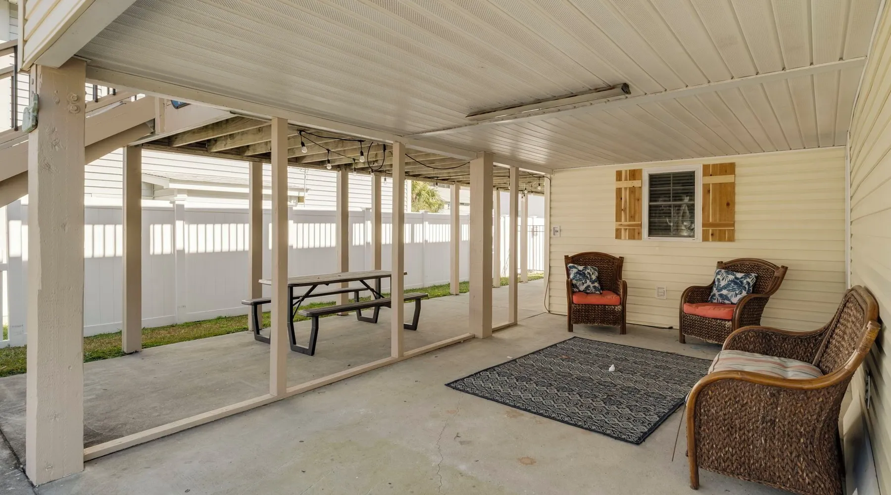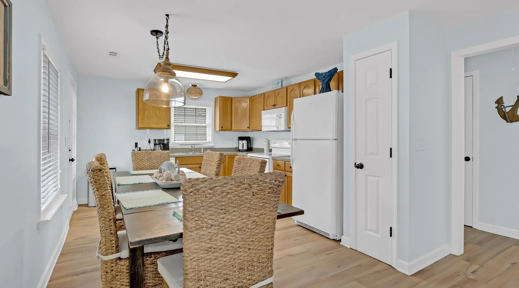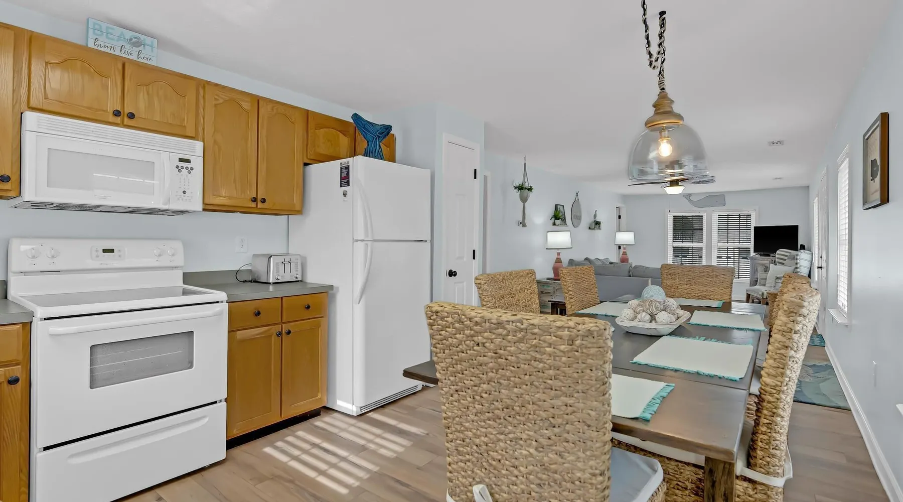 This private beach house, named The Wicked Whale, is only 0.1 miles from the beach and is located in the Ocean Drive section of North Myrtle Beach. This private house is pet friendly, has its own private pool and can accommodate a total of 16 people with 1 king, 1 queen, 2 fulls, 4 twins & 2 sleeper sofas. The main house (on the 2nd floor) has a total of 2 bedrooms and 1.5 bathrooms. This part of the house features a fully equipped kitchen, spacious living room w/1 sleeper sofa, dining area, washer & dryer and large balcony. Bedroom #1 has 1 king and an attached 1/2 bathroom and bedroom #2 has 1 full & 1 twin. The full bathroom is located in the hall. The 2nd part of the house is mother-in-law suite on the ground floor with private entrance. The mother-in-law suite is perfect for older kids who want their own space or guests that have difficulty with too many stairs. The mother-in-law suite is set up like a studio and features a small living room w/ 1 sleeper sofa, a kitchenette, mini fridge, 1 queen size bed and 2 sets of bunk beds (1 set is a twin over twin, the other set is a twin over full). This level also features a full bathroom with garden tub and stand up shower. The over sized lot includes a fenced in yard, private pool, professionally landscaped yard, and seating around the pool. Additional features include free W-Fi, cable TV and parking for multiple vehicles. PET FRIENDLY (DOGS ONLY) WITH $200 NON-REFUNDABLE PET FEE!! The Wicked Whale is only 3 blocks (0.4 miles) from McClean Park which has 2 playgrounds, a baseball field, pond w/fountain, walking trail & picnic gazebos and only 5 blocks (0.5 miles) from Main Street where you can enjoy The Pavilion Arcade & ice cream shop, several restaurants, souvenir & specialty shops and popular shag clubs & beach bars (some places are only open seasonally). During the summer months, there is also a small amusement park set up with rides, food & games. There is also a 1 car garage full of beach equipment for your convenience. Exterior of property is under 24 video surveillance. Free Fun Included Every Day! To enhance your vacation experience, North Beach Vacations has partnered with Xplorie, which means your stay includes over $250.00 in complimentary activities, per day. Just for booking with us, you’ll receive free tickets, every day of your stay to top activities like golfing, water parks, dinner shows, and more!!! ***ONLY VALID FOR SHORT TERM STAYS 27 NIGHTS OR LESS*** MOTORCYCLES, TRAILERS BOATS, RV'S, AND GOLF CARTS ARE ALLOWED TO BE PARKED ONSITE! HOWEVER, PARKING IS LIMITED. WE DO OFFER FREE PARKING AT OUR LOCAL RENTAL OFFICE. PARK AT YOUR OWN RISK. NO SMOKING! PETS ARE WELCOME (DOGS ONLY) WITH $200 NON-REFUNDABLE PET FEE! 25 YEAR AGE REQUIRMENT! FOR ALL NON-FAMILY GROUPS, EVERYONE MUST MEET THIS AGE REQUIRMENT AT THE TIME OF CHECK-IN!