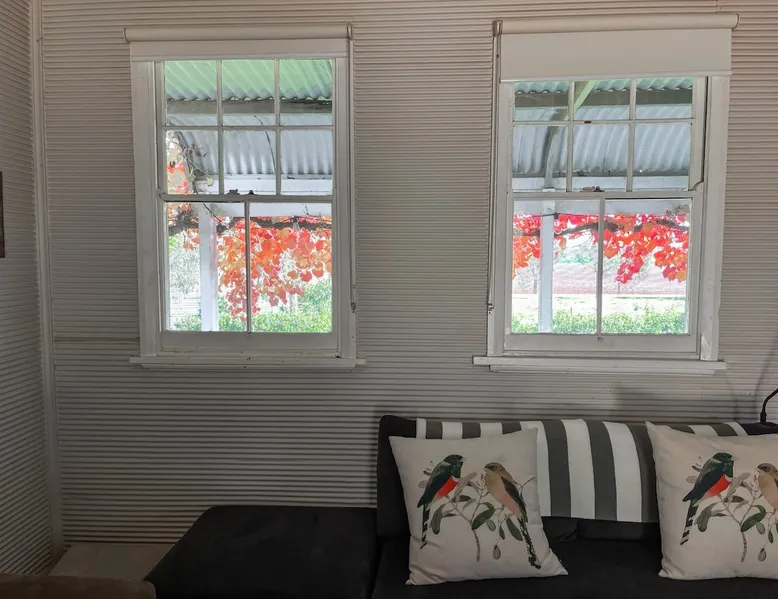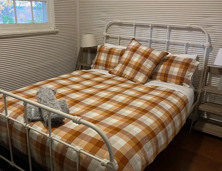 Chaffcutters Cottage - @chaffcutters_cottage - is charming and rustic. Parking is plentiful, pets are warmly welcomed, the location is peaceful and Wi-Fi is reliable. Delightfully reno'ed, it is comfortable and practical accommodation in a stunning rural setting. Cosy in winter and airconditioned in summer with a picturesque verandah framed with grapevines, perfect for watching the sun set towards the Weddin Mountains with a glass of wine in hand. 15 minutes from gorgeous Canowindra. The space Chaffcutters Cottage consists of an open plan living/dining/kitchen area, one bedroom with a queen bed, a bathroom and a laundry. The living room provides additional sleeping accommodation by way of a sofa bed (double) and a couch that can convert to a single bed. There is heating and cooling at the touch of a button. For people wishing to book in and work from home for a couple of days/weeks we can provide a work table and chair. Wifi is reliable and supports livestreaming, Netflix, etc. Guest access Chaffcutters Cottage is situated within it's own garden which is generous and fully fenced. Dogs are very welcome. Chaffcutters is easily accessed with one tiny step onto the back verandah. We have regular guests who are wheel chair dependent and we have a shower chair if needed. Check-in is very easy - the cottage is unlocked and there are keys inside if guests wish to lock the cottage while they are visiting. After dark arrivals just need to let me know and I will make sure that lights are on to welcome you. Parking is inside the garden and adjacent to the cottage. There is room for more than one vehicle. The cottage is located on a working farm and guests are welcome to take walks through the paddocks and down to the river, bearing in mind that if a gate is closed then please close it behind you once you have gone through it! Other things to note Chaffcutters Cottage is very well set up for any length of stay with a fully equipped kitchen, oven and stove-top, laundry and a Hills Hoist clothesline in the garden. Internet access is via fixed wireless NBN and is reliable. Registration Details PID-STRA-28678
