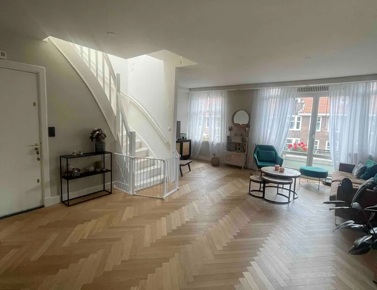 This amazing two floor house has everything you and your family needs, luxury, comfort and great surroundings. This familyproof 5 room appt is easy to get to by public (metro, tram and bus stops are 5 min away). Easy by car as well (10 min drive from Schiphol). The famous Vondelpark is a 10 minute walk away!. There are plenty playgrounds for kids close by, theres plenty of fun for all ages with many nice bars and restaurants close by as well as the sunny canal on the intersection. The space 119 m2: spacious living room with French balcony and a open modern kitchen. Small bedroom + extra babyroom with a balcony + large bedroom with walk in closet. Stairs lead up to the great roof / sunterras of 24m2! Guest access Tram 2 min walk, Metro 10 min walk, Train 15 min walk or 10 min by tram. Ample opportunity to park in the street at 4,50 an uur 09.00-24.00 free on Sunday. There is a parkbee garage bookable close by for around € 20 a day. Other things to note Please get in touch to discuss a rate for a long stay (max 30 days by law) Vergunningsnummer Gemeente Amsterdam Z/24/2339256 Registration details 0363 8CC1 ADBC D2CB 9930