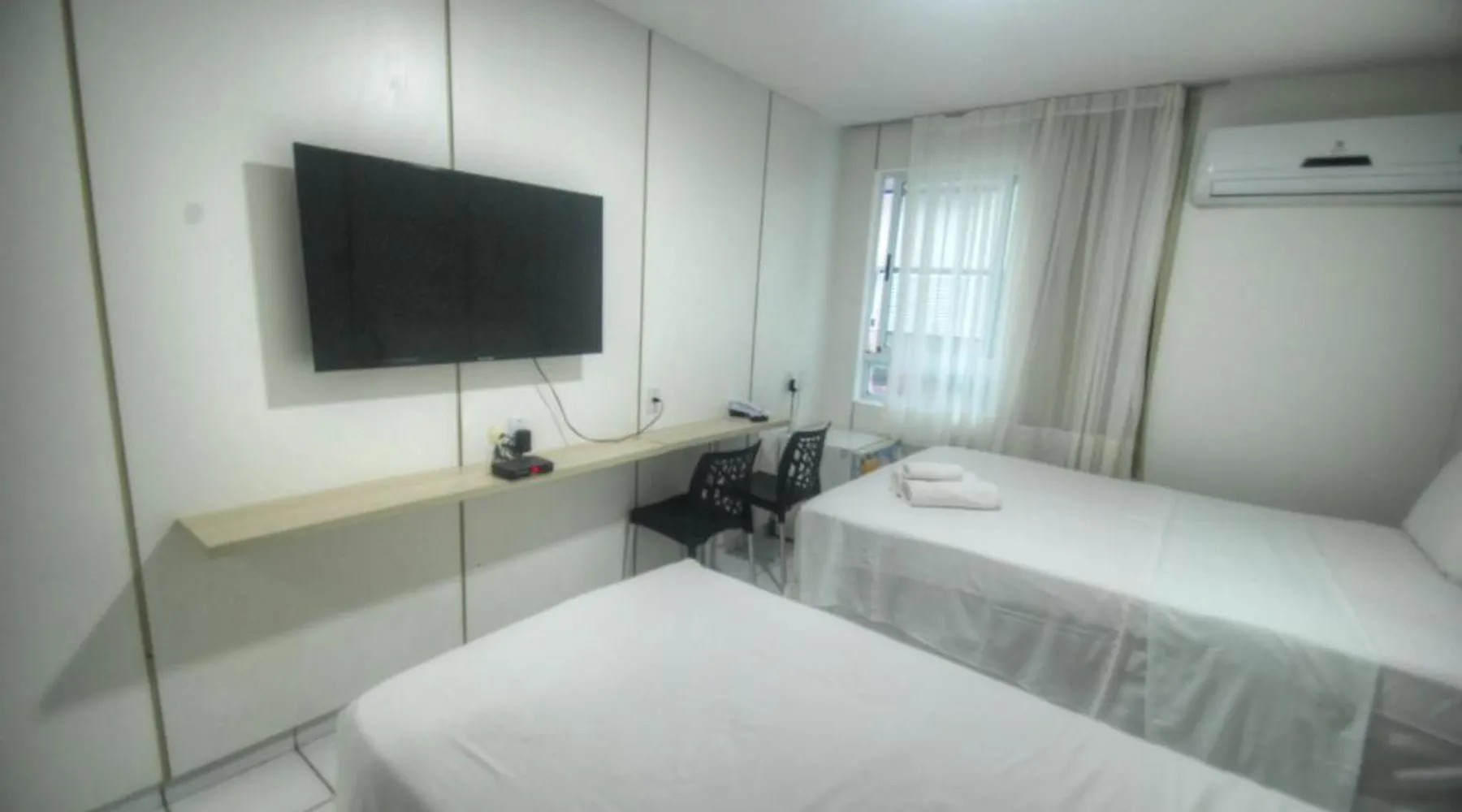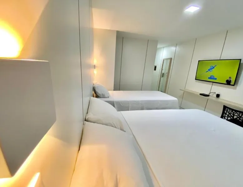Beachfront Location: PONTA NEGRA BEACH - Natal offers direct beachfront access with Ponta Negra Beach just yards away. Guests can enjoy a sun terrace, open-air bath, and an outdoor swimming pool. Facilities and Amenities: The apartment features a fitness center, sun terrace, and a lush garden. Free WiFi is available throughout the property. Additional facilities include a bar, games room, and solarium. Comfort and Services: Each apartment includes air-conditioning, a private bathroom, and a work desk. Free on-site private parking is provided. Guests can enjoy a continental or buffet breakfast and benefit from a 24-hour front desk. Nearby Attractions: Located 19 mi from São Gonçalo do Amarante International Airport, the property is close to Morro do Careca (18-minute walk) and Arena das Dunas (5.6 mi). Guests appreciate the convenient location and beach access. The pool with a view is a top feature of this triple room. This air-conditioned triple room is consisted of of a flat-screen TV with cable channels and a private bathroom. The unit has 2 beds.