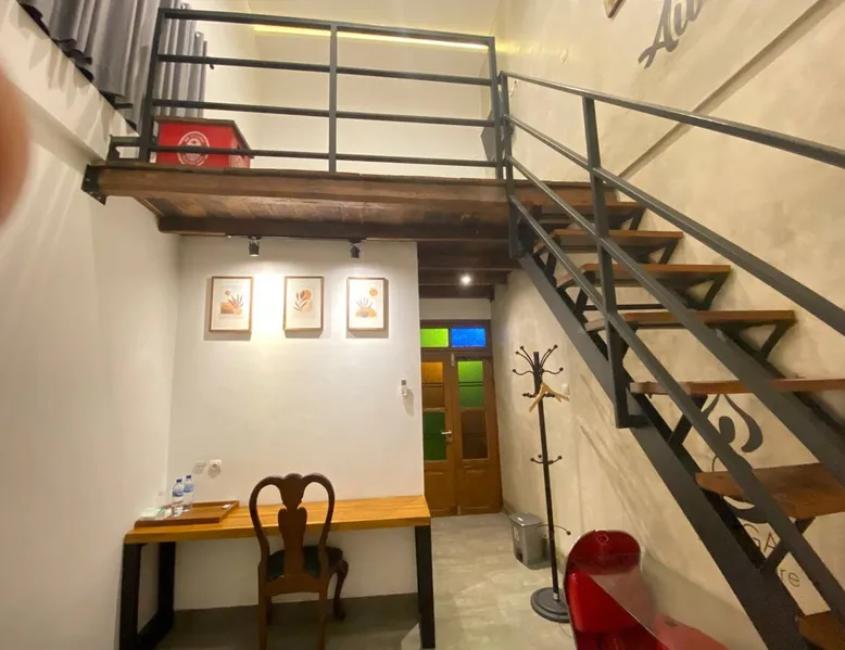 The 2-storey mezzanine room is unique and comfortable with a teak wood feel from the old days where the ceiling height is about 7 meters so it gives a spacious and cool impression. The room is equipped with 1 queen-size bed (for 2 people) and a sofa bed (for 1 person) for a maximum total of 3 guests. Cars can enter up to the front of the homestay, but CAR PARKING IS NOT AVAILABLE, only motorcycle parking is available. The space Our Guest House/Homestay is located in a quiet neighborhood and not far from the city center, about 6 km from Malioboro/Keraton, close to Campuses/Universities such as UGM (2.5 km), Atmajaya/Sanata Sanata dharma (0.9 km) and close to Pakuwon Mall and Ambarukmo Plaza. In-room amenities include WiFi, 32-inch Android Smart TV, Air Conditioning, Indoor Bathroom equipped with water heater, free coffee/tea.