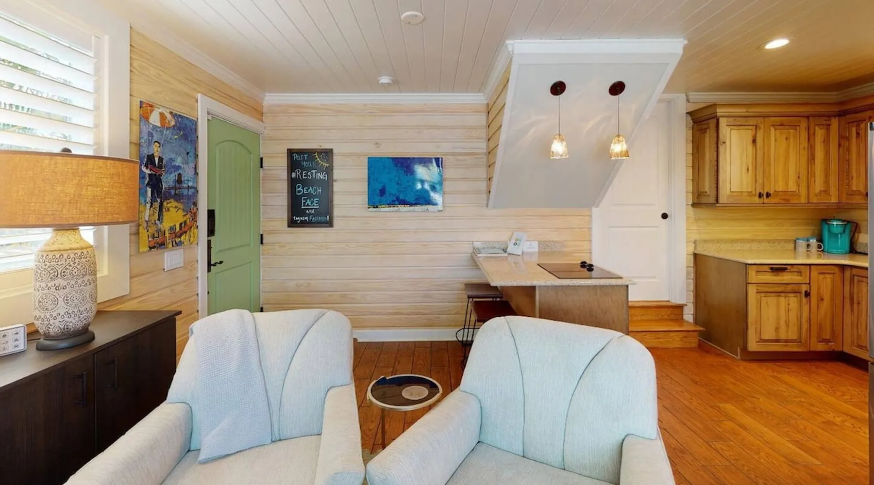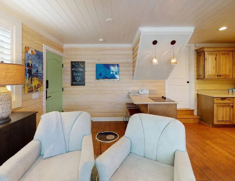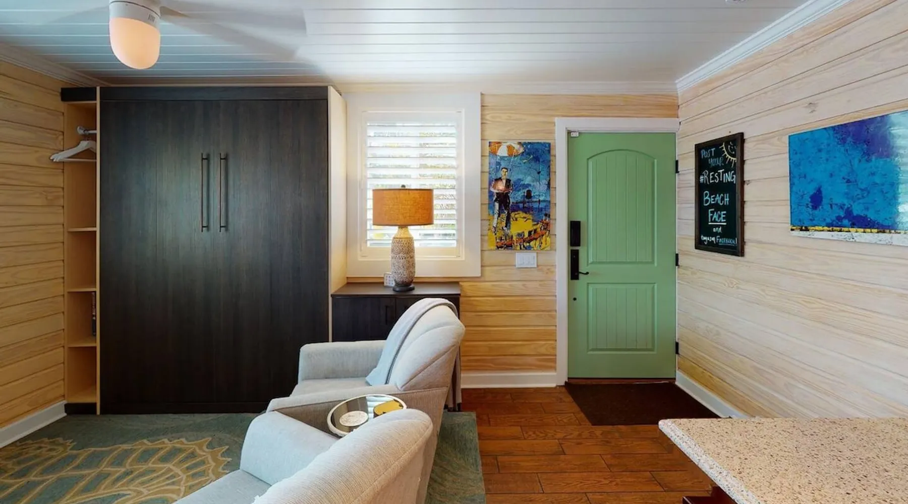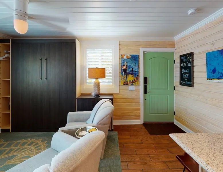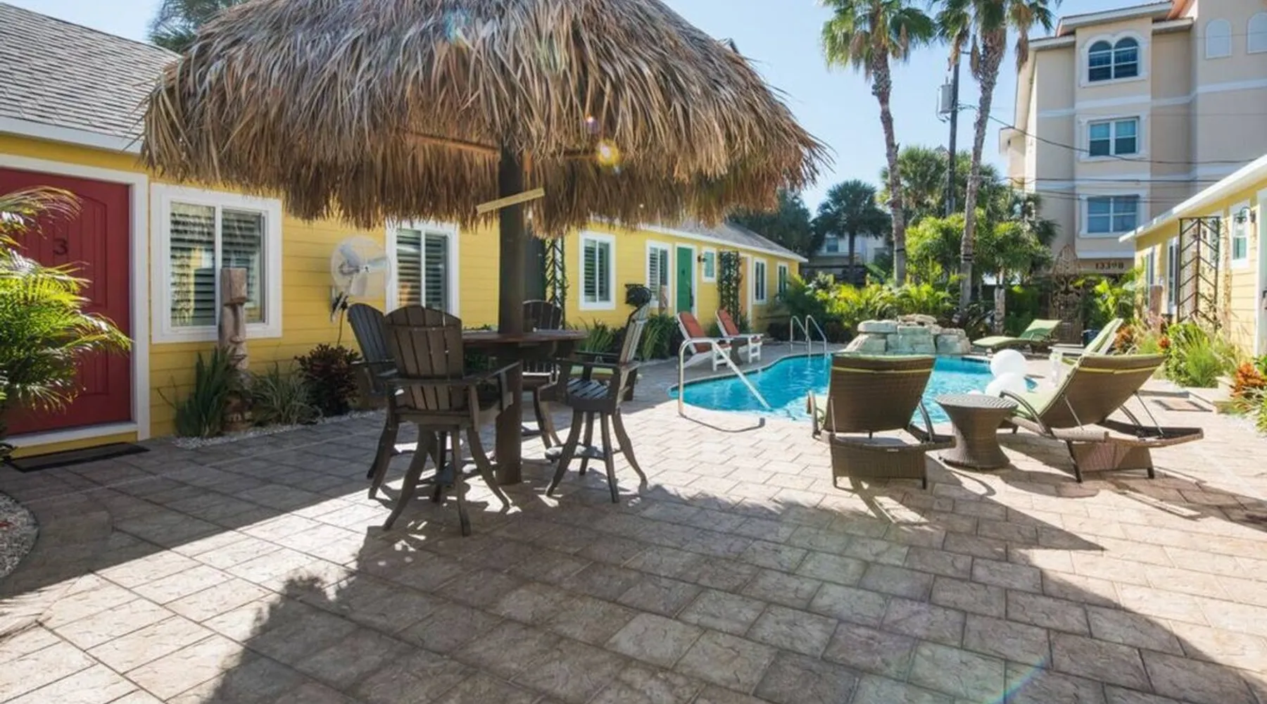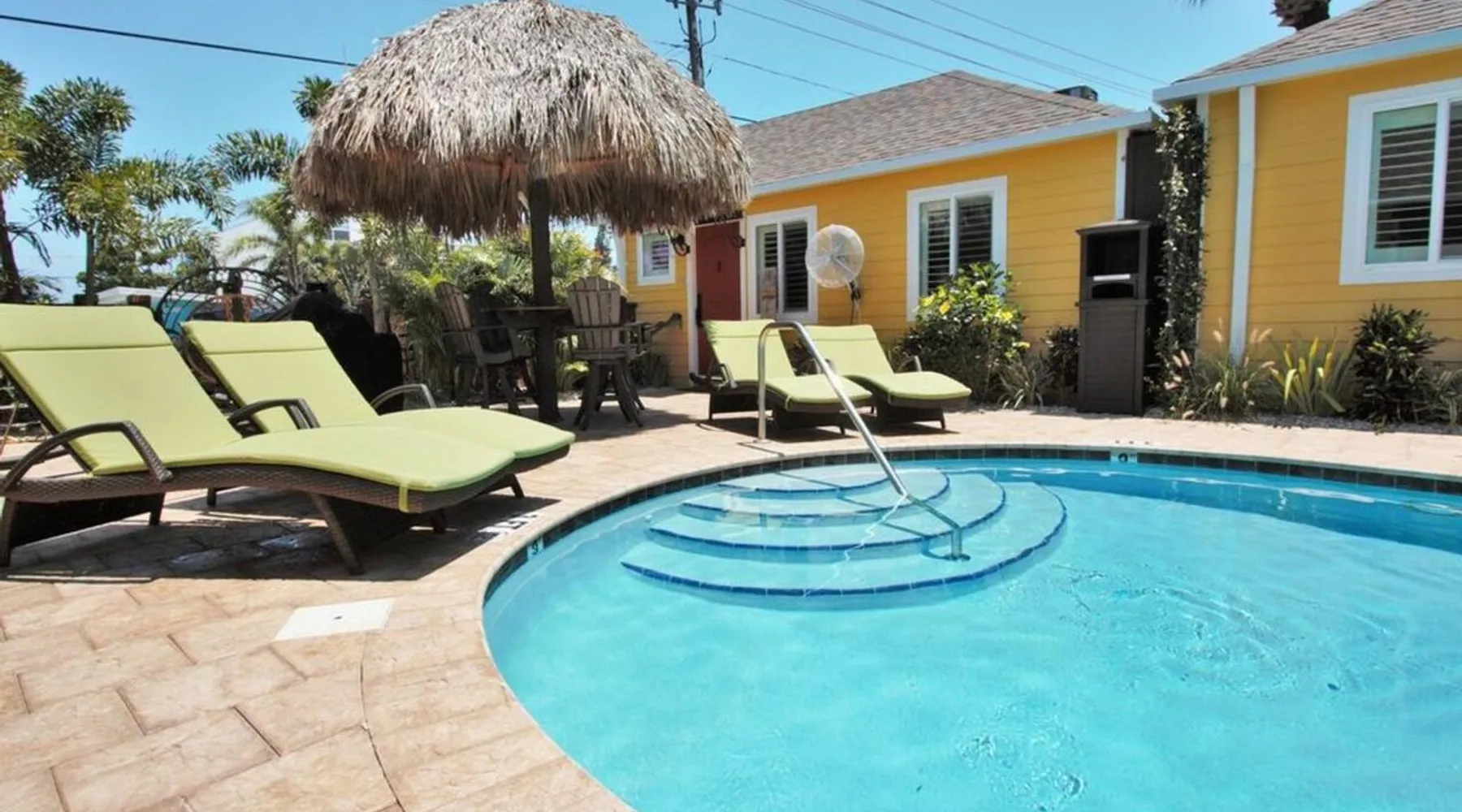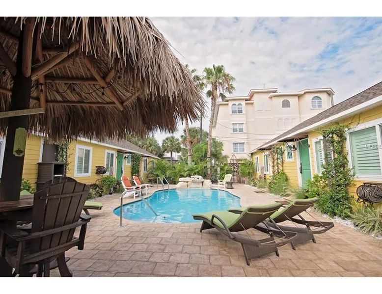 ■ What You Will Love ■ Welcome to 6West! This small and private luxury complex has 6 beautifully updated cottages that surround the pool in the center of the courtyard. -1 minute walk to the beach (Beach access is located through the alley behind the building) -Pool -8 minutes walk to Johns Pass (Waterfront restaurants, bars, shops, boat rentals, activities) -Free WiFi -Studio sleeps 2 About the Property There is also an adjacent 2 bedroom 2 bath right next to this cottage and can be opened up to create a 3 bedroom 3 bath combined with this one. Message us to check availability on #1 for you Book one cottage or for larger groups book the entire place (6 cottages in total) based on availability. The property can accommodate 22 guests when all bungalows are booked together. Kitchen/Dining Area -Fully equipped with cooking utensils, coffee maker, toaster, dishes, silverware, cups, mugs, & wine glasses. -Stovetop -Upgraded large refrigerator, & dishwasher -Two barstools located in front of the counter by the kitchen Studio Features -Queen size murphy bed with the option to fold away when not in use -2 accent chairs -TV Bathroom -Upgraded walk in shower -Copper sink -Toilet -Hair dryer Outdoor living -This is the ultimate Florida vacation hangout spot, the pool is right outside your front door -Hang out by the covered tiki table -Lounge by the pool -Walk to the beach (1 minute away!) Important information: There is only 1 designated compact parking space for each bungalow. Sand and oil MUST be washed off before entering the pool. There is an outdoor shower for your use. This is a residential area and we ask that the noise is kept at a respectful level. Not respecting the noise ordinance can result in disciplinary actions and/or termination of your rental agreement without refund. An initial “starter” supply of toilet paper, garbage bag, paper towel is provided.
