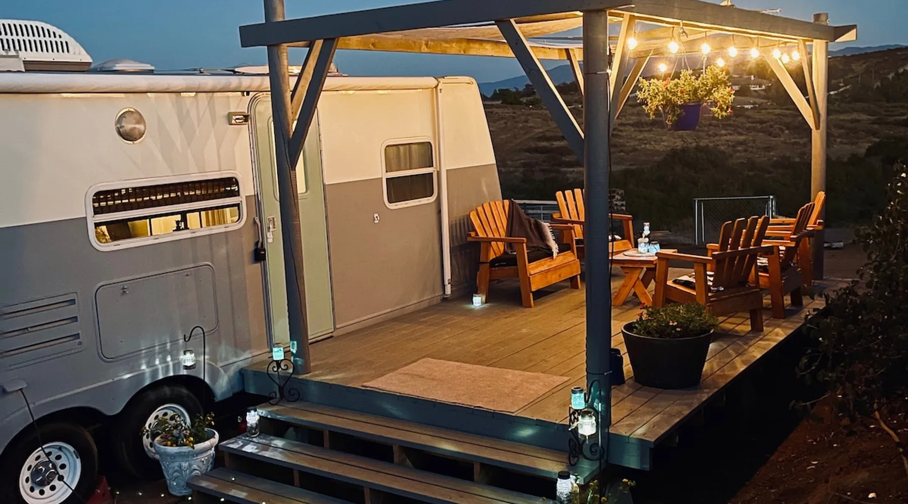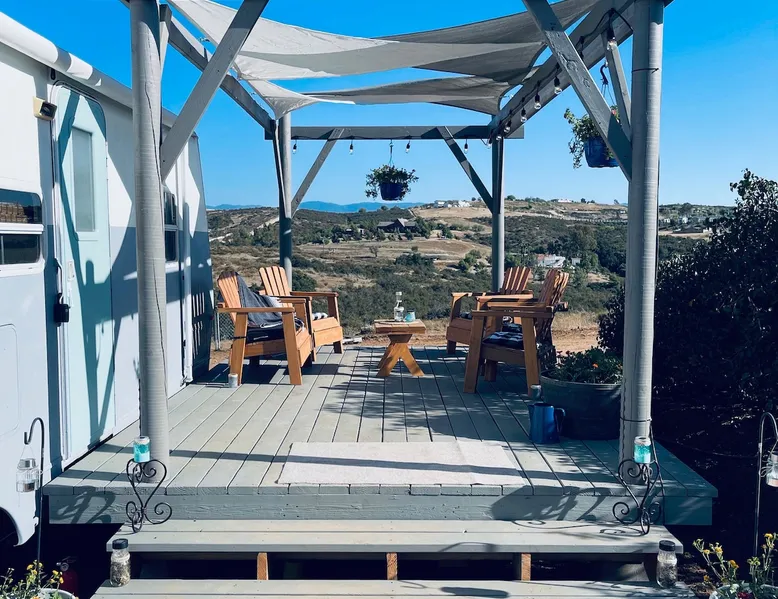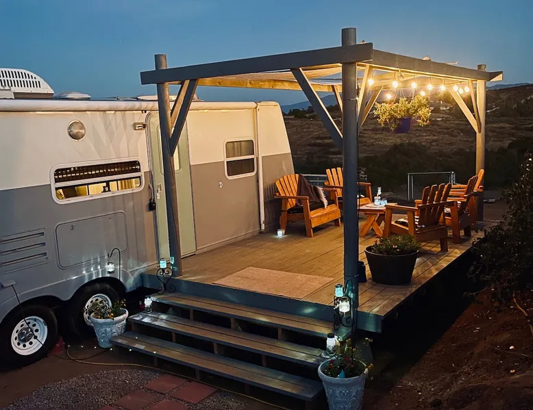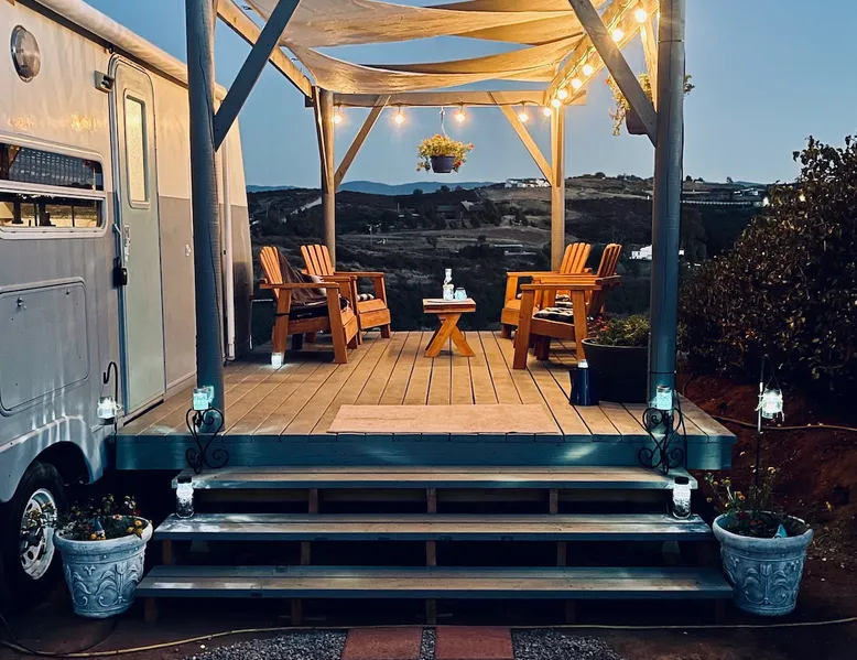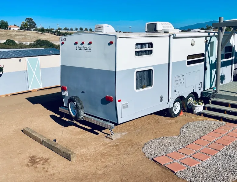 Your stay changes lives! Our charming farmhouse-style camper sits on a 501(c)(3) rescue farm where every booking helps feed and care for rescued animals. Wake up to peaceful country views, meet the animals, and explore Temecula’s wineries just 5–10 mins away. Horseback riding is 10 mins, Old Town is 25 mins. A cozy escape that makes an impact for those who need it most. The space Please remember — this is a farm and camping experience. Nature is all around! We’ve added some glamping comforts, but we can’t promise a dirt-free stay. You’ll enjoy memory foam mattresses, air conditioning, rural internet that works well for our area, a TV with Roku guest mode, plus a stocked kitchen. Sleeping arrangements include a full-size bed, a futon/full-size bed, and two small bunk beds. While it can technically fit 4 adults, we recommend it for 2 adults and 2 kids for maximum comfort. We respect your privacy, but we also live on-site in a 5th wheel while we build our home, so we’re here if you have any questions. It’s a fun, country adventure we can’t wait to share with you! Want to see what’s happening in Temecula or on the farm? Follow us on Insta Rustic Farms Animal Rescue for winery events, local happenings, and updates on our rescue animals. Guest access You’ll have your own private camper and deck, plus the chance to meet our friendly horses and other rescue farm animals — feed them, pet them, and snap some unforgettable selfies. You’ll also have access to 22 acres of private hiking and nature trails, perfect for exploring, relaxing, and soaking in the beauty of the countryside. Other things to note We are dog-friendly. Visiting dogs must be friendly with other dogs, potty-trained, and quiet if left alone. We have three friendly dogs who sometimes roam freely, and there are coyotes in the area, so please supervise your pets. We now have a second camper on the property — the Rustic Farms Meadow Camper. Each is set apart for privacy, but both can be booked together for larger groups. Every stay includes access to the rescue farm. All profits from your booking go directly toward caring for our rescue animals — covering food, maintenance, medications, and vet bills. Thank you for helping us give them a safe and happy home!