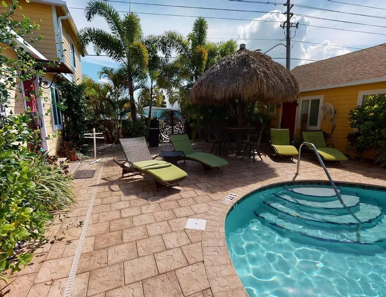 ■ What You Will Love ■ Welcome to 6West! This small and private luxury complex has 6 beautifully updated cottages that surround the pool in the center of the courtyard. -1 minute walk to the beach (Beach access is located through the alley behind the building) -Pool -8 minutes walk to Johns Pass (Waterfront restaurants, bars, shops, boat rentals, activities) -Free WiFi -1 bedroom 1 bath sleeps 4 Book one cottage or for larger groups book the entire place (6 cottages in total) based on availability. The property can accommodate 22 guests when all bungalows are booked together. Main Bedroom -Corner apartment with great natural light -California closet with shelving and space to hang clothes -TV -Accent chair -Ceiling fan Bathroom -Walk in shower -Toilet -Sink -Hair dryer Living Area -Pull down murphy bed that can be folded up and out of the way when not in use -TV -Couch -Ceiling fan Kitchen/Dining Area -Upgraded appliances -Fully equipped with a stovetop, cooking utensils, coffee maker, toaster, dishes, silverware, cups, mugs, and wine glasses. -2 bar stools in front of the kitchen counter Outdoor living -This is the ultimate Florida vacation hangout spot, the pool is right outside your front door -Hang out by the covered tiki table -Lounge by the pool -Walk to the beach (1 minute away!) Important information: LIMITED PARKING!!! There is only 1 compact designated parking space for each bungalow. Sand and oil MUST be washed off before entering the pool. There is an outdoor shower for your use. This is a residential area and we ask that the noise is kept at a respectful level. Not respecting the noise ordinance can result in disciplinary actions and/or termination of your rental agreement without refund. -There is a one time initial complimentary starter supply of toilet paper, paper towel, garbage bag, shampoo, conditioner.
