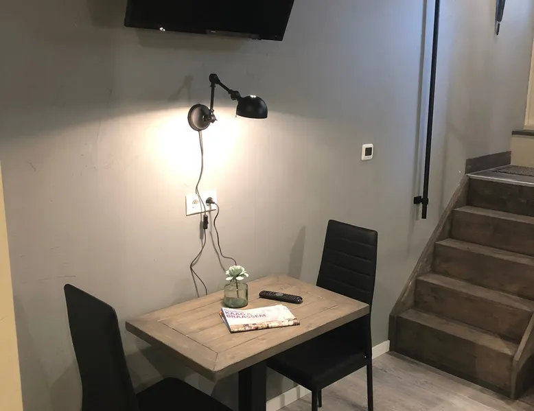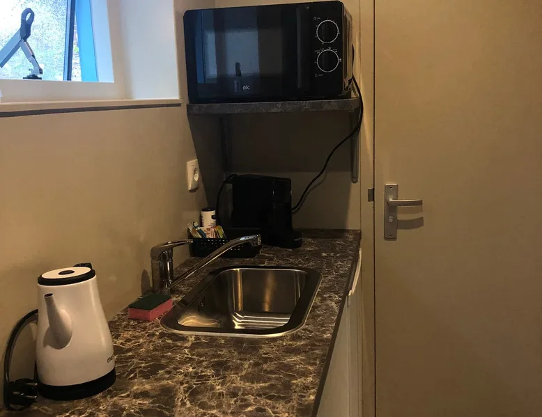 UNIQUE Tiny studio ! Self built in a former water storage bunker that is partially underground . In a quiet residential area 5 minutes walk from the supermarket. Good WiFi and lovely bed . Central location: ** Amsterdam (30km, bus/metro 1 hour , car/train 45 min) ** Leiden ( 15 km, 22 min Bus, 45 min bike) ** Schiphol ( 13 km, 25 min bus) ** Keukenhof ( 13km) Bus at 4 min, to Leiden or Schiphol (NOT 23–6 h!) Price includes mountain bike borrowing ( at your own risk) The space PRIVATE : ** entrance ** kitchenette ** microwave ( no oven! ) ** Nespresso coffee machine ** electric kettle ** fridge ** bathroom with shower/toilet/ sink/ hair dryer ** sitting area with lounge chair ** boxspring bed (160-200) ** heating + air conditioning ** lock on all doors! ** private parking behind fence. ** Satelite TV ** Clothing Clothing SHARED : ** a terrace with bench and a table with chairs ** indoor kitchen with international TV ** 4 mountain bikes free to borrow, (at your own risk) Guest access private studio , shared kitchen, shared terrace and private parking. During your stay We are happy to help with any questions , speak to us or send an app/ message. In the large kitchen there are leaflets with information , the guest book and all the important phone numbers. See also our GUIDEBOOK ! in this listing for local restaurants and attractions! Other things to note In the bunker is an almost constant temperature of 15-21 degrees, great to sleep in! There is heating. Due to the high energy prices, we appreciate it very much if the heating is used with a policy, thank you in advance. Note! The bus DOES NOT run to/from the studio between 23–6 h!! Our own house stands on the bunker, so the studios and the large kitchen are under our own house.