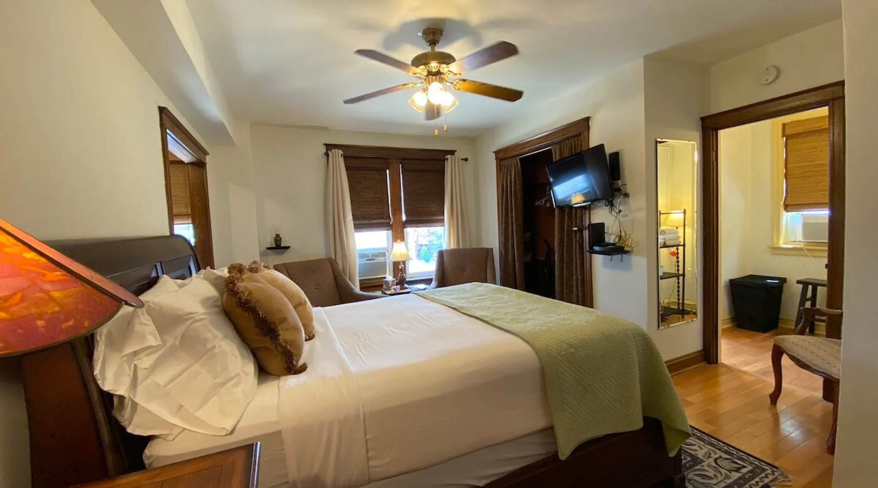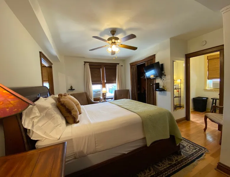 Available for stays of 31 days or longer, the Westminster is a thoughtfully furnished studio apartment across the street from the main campus of St. Louis University. Weekly housekeeping is included. The space The Westminster provides a home for up to two people in St. Louis' Central West End. Walk to St. Louis University, Cortex, and the Grand Center theater district. Barnes Hospital and SSM/St. Louis University Hospital are each less than two miles from the Westminster. The Westminster has a top-quality Queen-sized bed. There is dedicated high-speed internet service. The flat-screen TV has an antenna for local stations and Roku for streaming any services to which you subscribe. The large galley kitchen is fully equipped for basic meal preparation and includes EVOO, salt and pepper. All linens are included. Yes, there is a hair dryer, iron, and ironing board. Before your arrival, the Westminster will be stocked with freshly roasted coffee, welcome treats and teas, and light breakfast foods to start your stay. Included are cleaning supplies and complimentary toiletries (soap, shampoo, conditioner, Q-Tips, etc.). To keep rates low, we do not replenish these items during your stay. Once you are in residence, we will set up weekly housekeeping on a mutually agreed-upon schedule. The housekeeper will dust, vacuum, swap out dirty towels and linens, and make the bed with fresh sheets. Housekeepers do not wash dishes. Smoking is prohibited in the apartment or anywhere on the premises. PARKING Parking is first-come, first-served with a permit that you will receive upon arrival. Demand for permit parking is greater than supply. If you cannot find a permit parking space, you may park at any of the abundant nearby metered spaces at no charge between the hours of 7 PM and 8 AM Monday through Saturday, and all day on Sunday. You do not need a car to live here. This is a "walk anywhere" and bike-friendly neighborhood, with easy access to transit. Within walking distance are supermarkets, numerous restaurants and bars and coffee houses. OTHER THINGS TO NOTE The Westminster is on the fifth floor. We offer easy self check-in, and smart keyless entry on the apartment door. There is a shared laundry room in the basement, and shared hallways with other guests and residents. The Westminster has two window-unit air conditioners. We pull the air conditioners out of the window by the middle of November to clean and store for the winter. We re-install the air conditioners in April. If you feel like you need an air conditioner outside of this schedule, please discuss with us. We will do our best to accommodate. In the winter, heat is controlled by a central boiler that runs steam through the radiators. It is our goal to heat the Westminster in the 70-degree range. If you want more heat, the Westminster has an electric space heater that you are welcome to use. You will always find best pricing at SF Shannon. IS IT SAFE? Since all SF Shannon apartments are in the historic core of St. Louis, we occasionally receive the question: Is it safe? This question is impossible to answer, because we know nothing about the person asking it. One of the owners lives three blocks from the Westminster. Karen and her husband raised their sons in the neighborhood, and have always felt perfectly safe, day or night. WHY THAT NAME? The Westminster got its name because the apartment overlooks the historic homes of Westminster Place to the north. This location is in the historic core of St. Louis. Grand mansions and architectural gems are in every direction. Thank you for your interest! We hope we get the opportunity to host you, and earn your business. Guest access The Westminster is on the fifth floor, and accessible by stairs or an elevator. The apartment is all yours! There is a shared laundry room in the basement, and shared hallways with other residents. Other things to note You may hear noise from the neighboring apartments, as the historic charm of the building does not include soundproof walls. If you are a late or light sleeper, we have earplugs in the apartment.