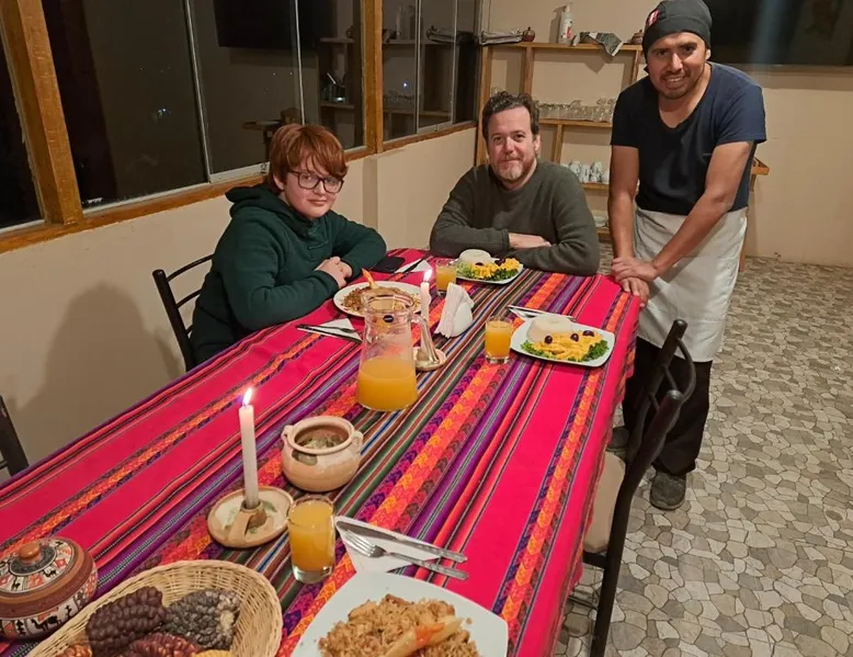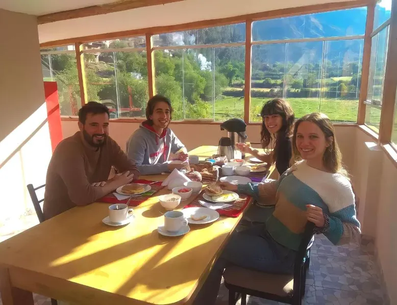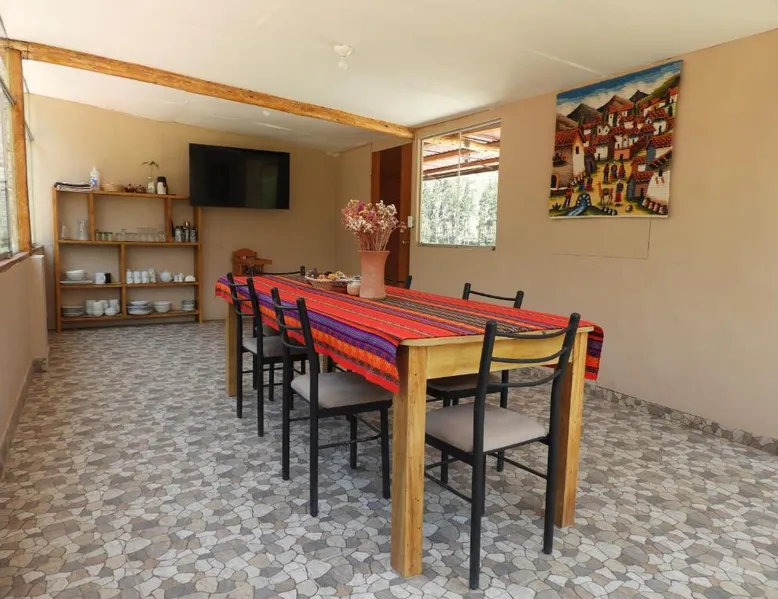 Comfortable Accommodations: Ayllu B&B Ollantaytambo in Ollantaytambo offers family rooms with private bathrooms, mountain views, and free WiFi. Each room includes a work desk, wardrobe, and free toiletries. Exceptional Facilities: Guests can relax on the sun terrace or enjoy the outdoor seating area. The property provides free WiFi, a minimarket, and a tour desk. Additional amenities include a kitchen, microwave, and bicycle parking. Delicious Breakfast: A complimentary American breakfast is served daily, featuring juice, cheese, and fruits. The terrace and host receive high praise from guests. Local Attractions: Located 40 mi from Alejandro Velasco Astete International Airport, the B&B is near attractions such as the Main Square (12 mi) and Sir Torrechayoc Church (12 mi). Hiking and cycling activities are available. Offering free toiletries, this double room includes a private bathroom with a shower. The double room offers a wardrobe, a tiled floor and mountain views.