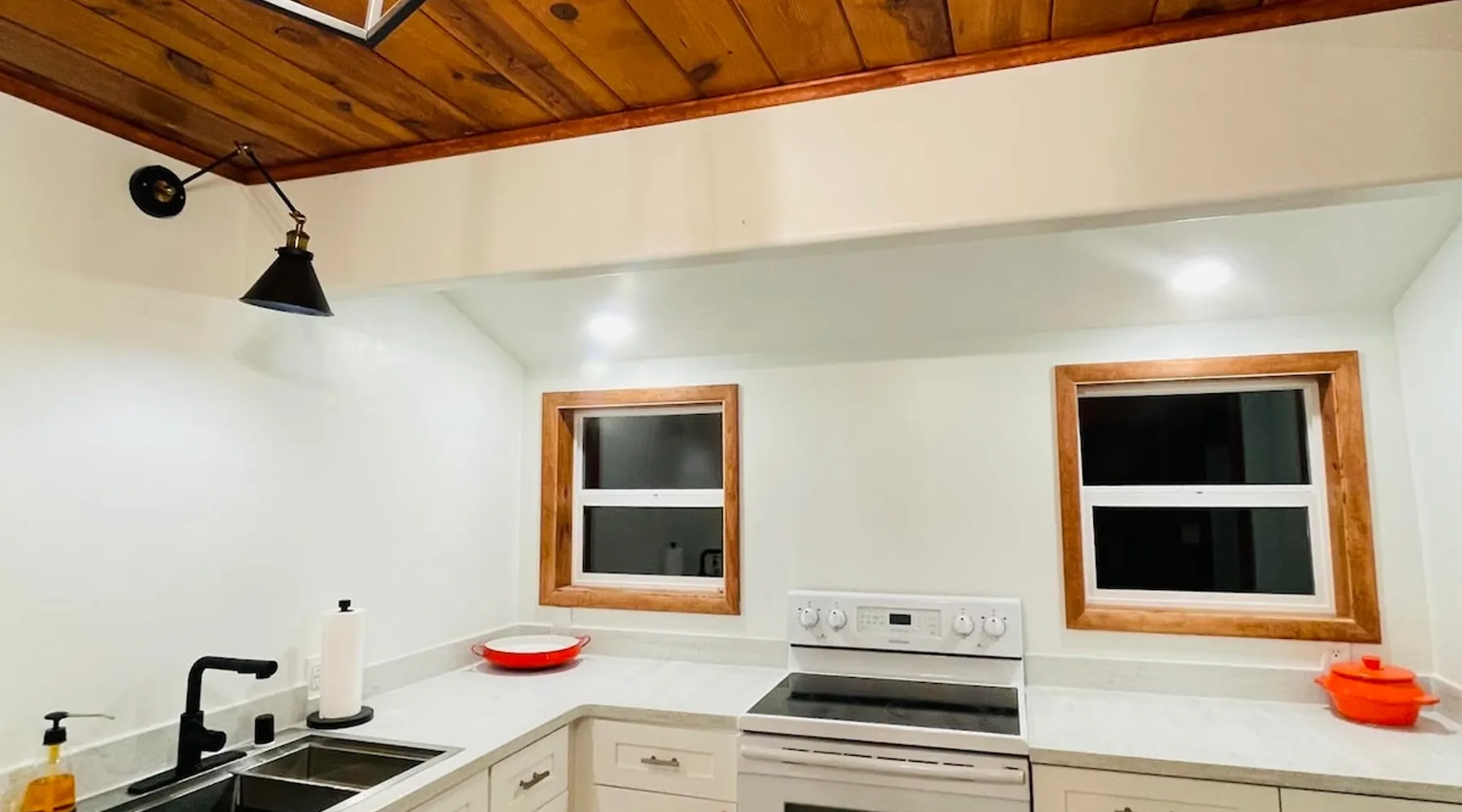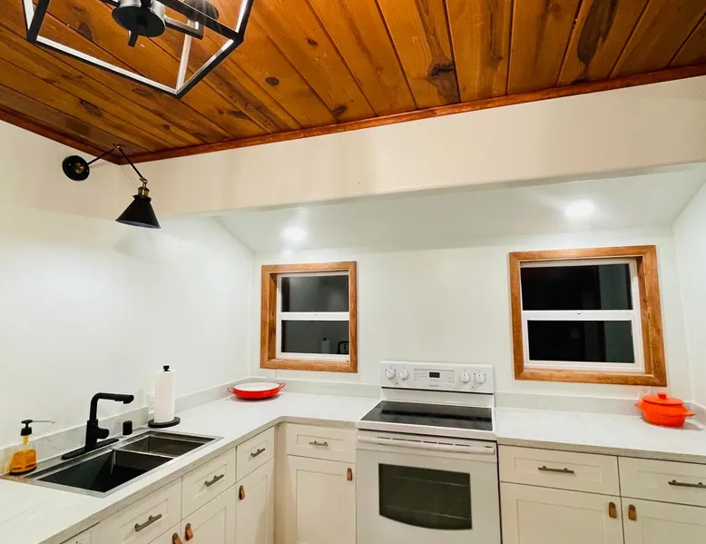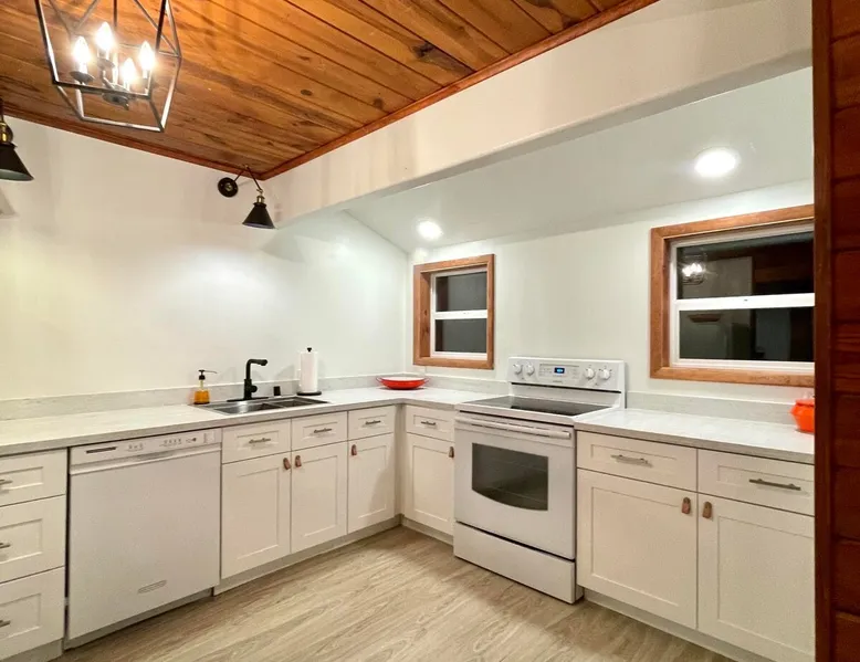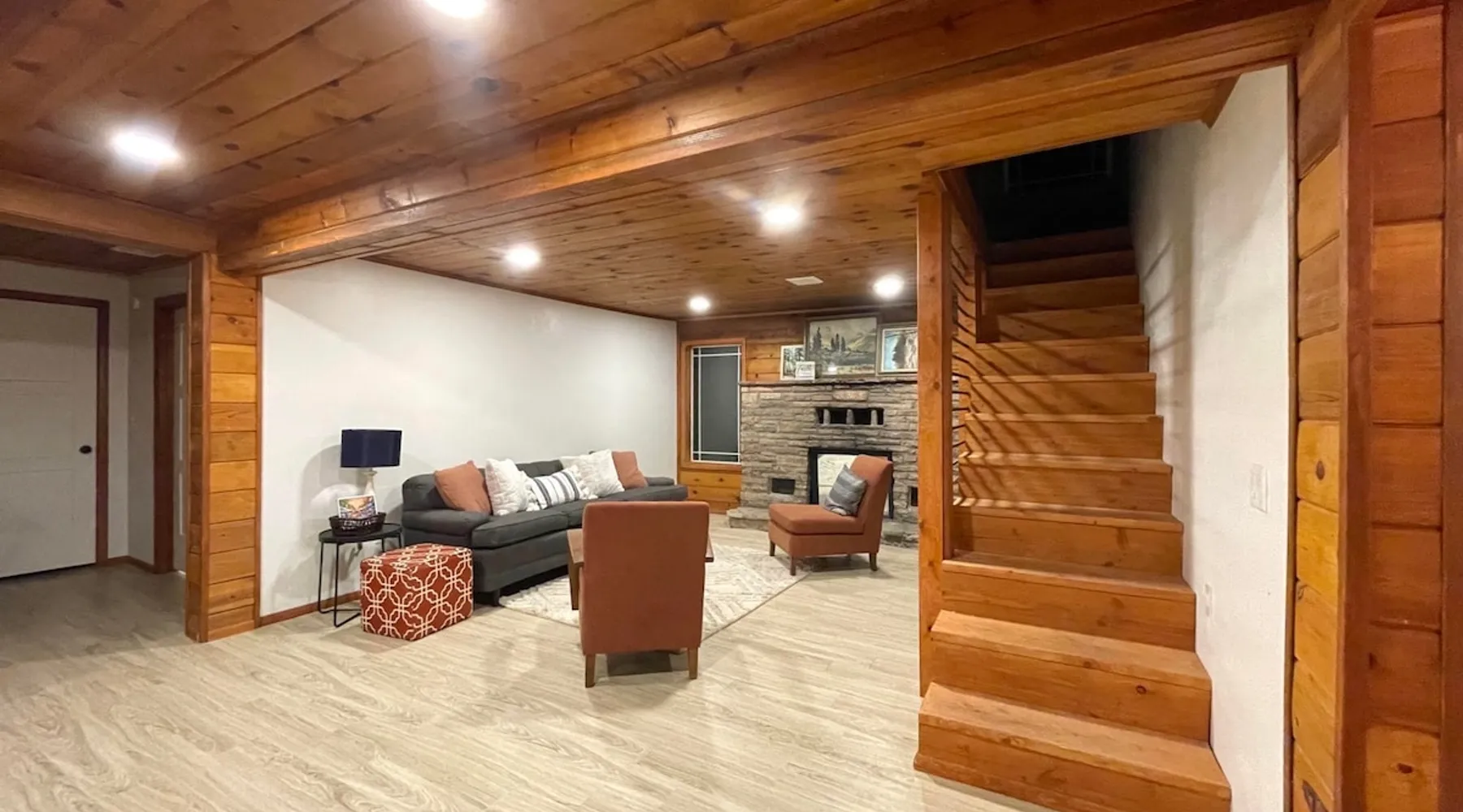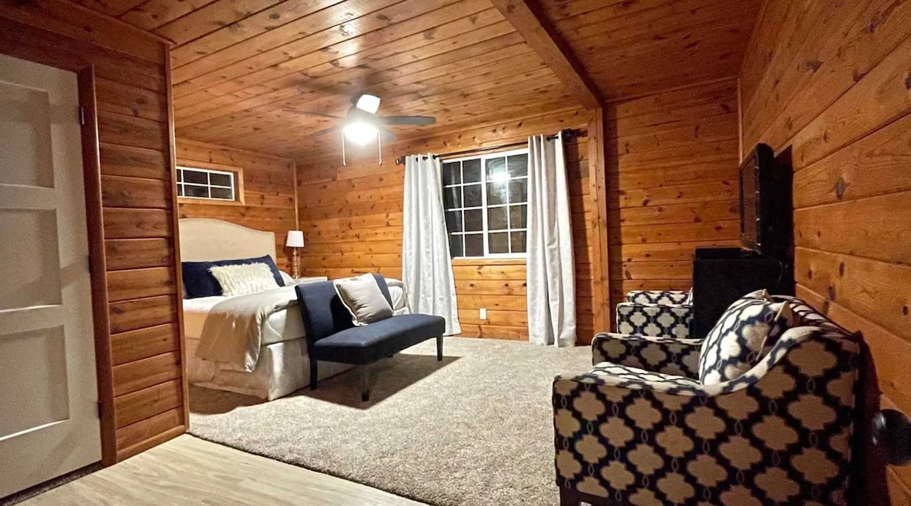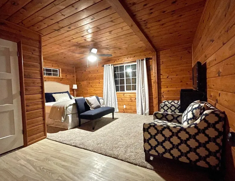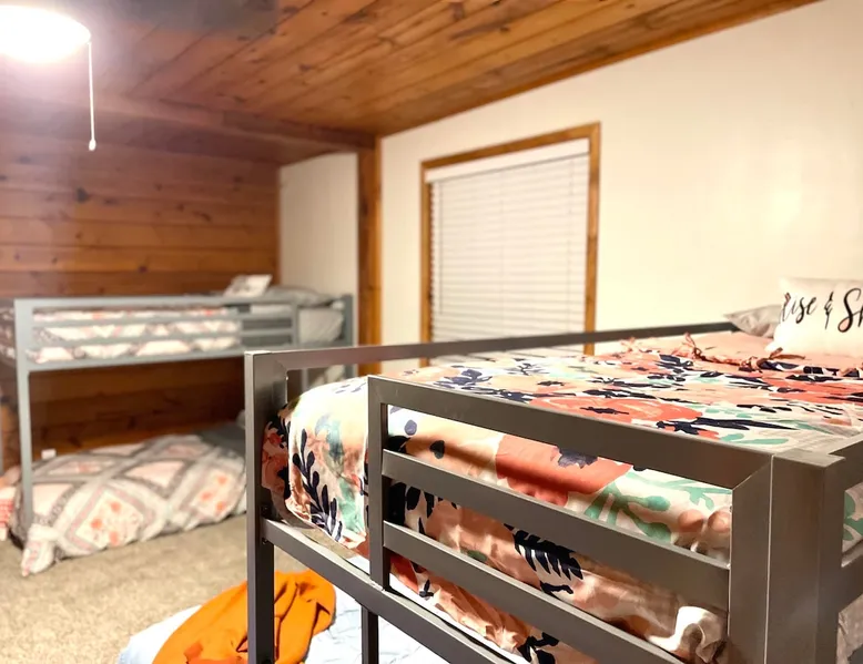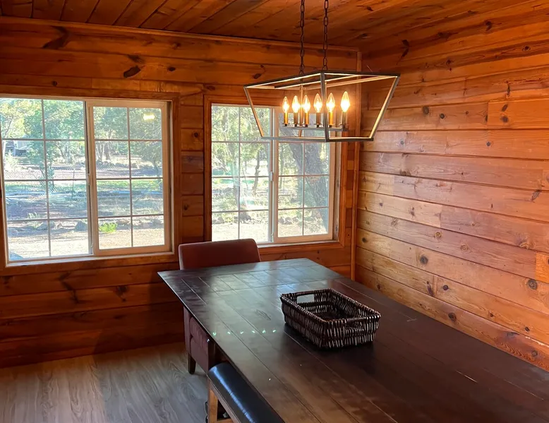Make unforgettable memories this Summer at our unique and family-friendly Lakeside Cabin nestled in the pines. Perfectly located within walking distance to Show Low Lake, just around the bend from all the best of White Mountain's restaurants, shopping, hiking and other outdoor activities. Take in the sunset each evening on the huge front porch, or walk to the lake and enjoy paddle boarding, fishing or kayaking. BBQ, picnic, play all day, or relax and stay-for a few days, or for a few months! The space You can truly come here to relax and recharge in the quite woods. Backing up to the forest and lake you have over an acre of peaceful woodland all around you to enjoy. Get away from noise, electronics, and pollution, to enjoy nature and cool fresh mountain air. Newly renovated top to bottom, this fresh and modern Cabin has 4 large Bedrooms, and 3 Bathrooms, a mudroom for all your outdoor gear, a large dining room and adjoining kitchen and and open plan living room for group gathering! This Cabin has tons of space for groups of all sizes. Enjoy the fully equipped kitchen for cooking in or BBQ just steps from your side door and enjoy eating and relaxing on the large front porch outside. (Get all your groceries just around the corner at the Walmart, or just a few miles away you can find several other grocery stores and markets.) All the bedrooms are very spacious and newly furnished to maximize your comfort. Three bedrooms upstairs including a huge bunkroom with two bunkbeds, a king-size bed and a sofa bed too! The master bedroom upstairs has its own on suite bath and television so you can enjoy a peaceful getaway from the larger group. There is also a bedroom downstairs, equipped with a full-size bed and oversized closet to accommodate guests that might not want to use the stairs. Lots of parking and a circular drive to easily access the cabin. For avid outdoorsmen be sure to bring your favorite hiking shoes and fishing gear, there are lots of lakes and streams to explore within a few miles. Or, just come as you are, no need to bring anything. Walk down to Show Low Lake where you can rent all your outdoor activity equipment for fishing or boating. Guest access All areas of the cabin are available for guests other than storage room at this time. Other things to note Access to washer/drier and fireplace not available at this time.