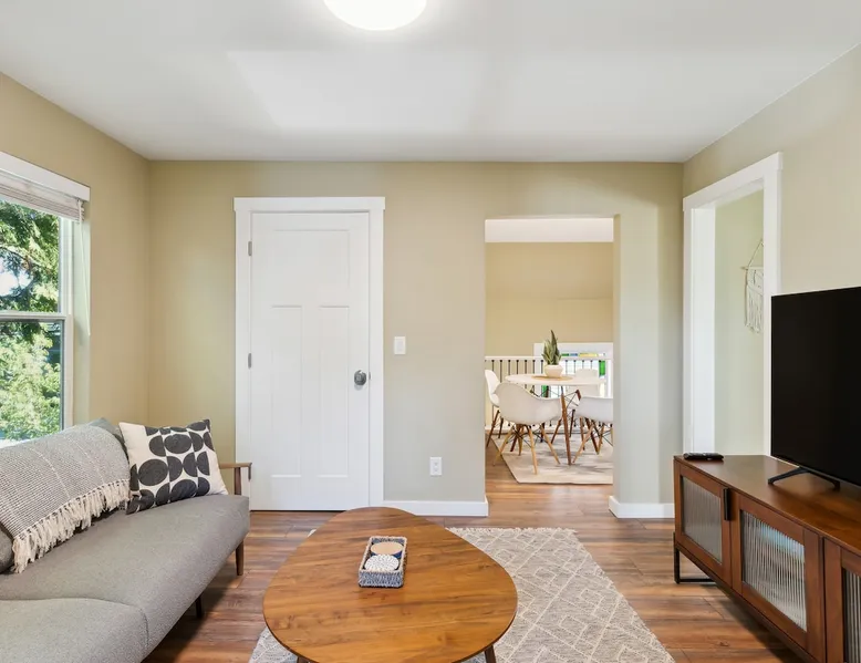 Step into a piece of Seattle history in this thoughtfully updated 1900s duplex, where modern comforts meet timeless charm. Your family will be close to everything in this bright, welcoming, and serene setting, perfect for your next getaway. The space Experience the best of the Central District from this cheerful and light-filled home. The living room, bathed in natural light, offers plenty of comfortable seating, a large Smart TV, and a collection of board games for cozy evenings in. The fully equipped kitchen has everything you need to prepare delicious meals—just bring the ingredients! It features modern appliances and thoughtful extras: *Full-size refrigerator and stove *Dishwasher *Coffee maker and toaster *Essential cooking utensils *In-unit stackable washer and dryer The home includes two quiet bedrooms. One room features a king-sized soft Beautyrest mattress, while the other offers a queen-sized medium-firm Beautyrest mattress and a dedicated workspace with a desk. For your comfort, the unit is equipped with air conditioning. Step outside to the shared backyard, where you can relax on the lawn, sway in the hammock, or grill up a meal on the 22” charcoal grill. Utensils are provided; charcoal is available at the corner market. If you need more space, check availability for our 2nd listing “Charming Duplex: Downstairs”. Guest access Enjoy seamless, keyless entry with a secure door code. Your unique code will be provided before your arrival and is automatically disabled after checkout for your security. If you happen to leave anything behind, please let us know, and we'll help arrange its return. Other things to note To ensure a pleasant stay for everyone, we ask that you observe the following rules: *No parties or large gatherings. Guests who violate this rule will be fined and may be asked to leave the property without a refund. *No smoking or vaping of any kind is permitted inside the house. Important Information *Pets: We are pet-friendly for up to two animals. Please include them in your booking, as an additional pet fee applies. Registration Details STR-OPLI-22-000961