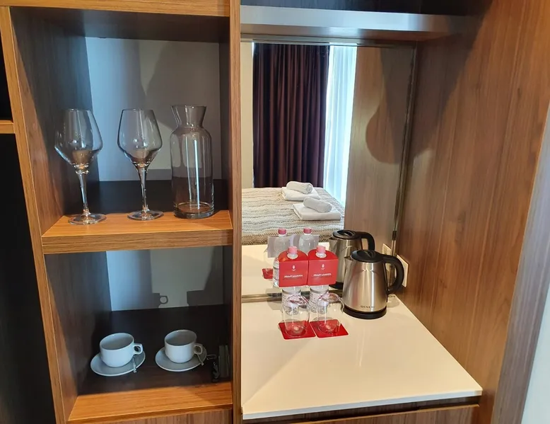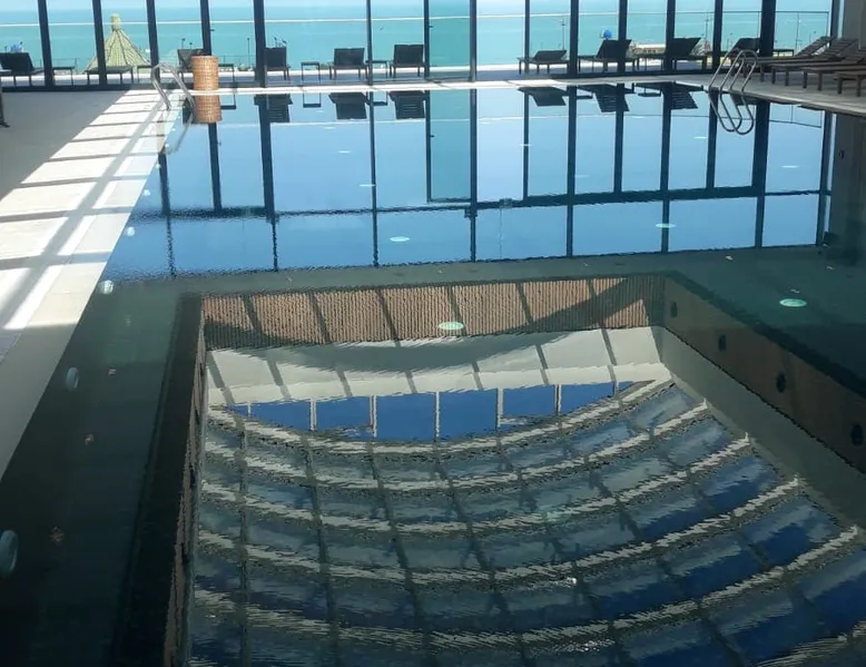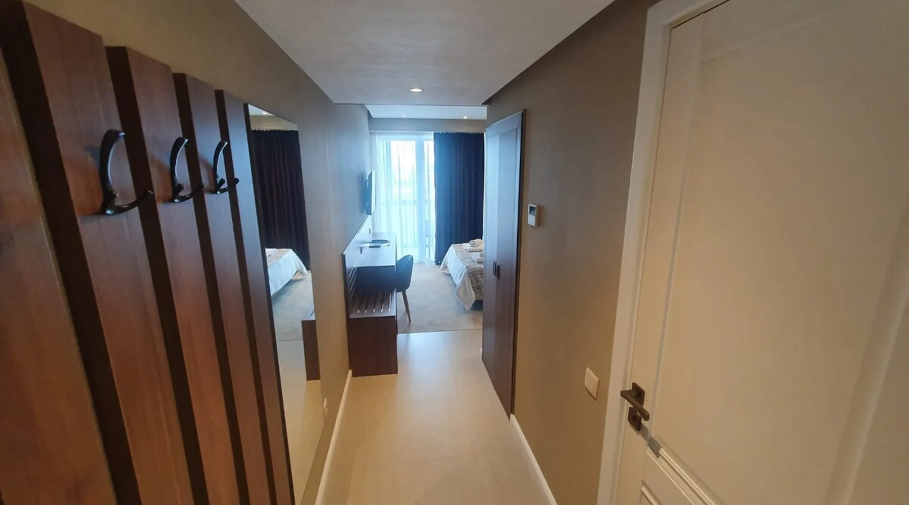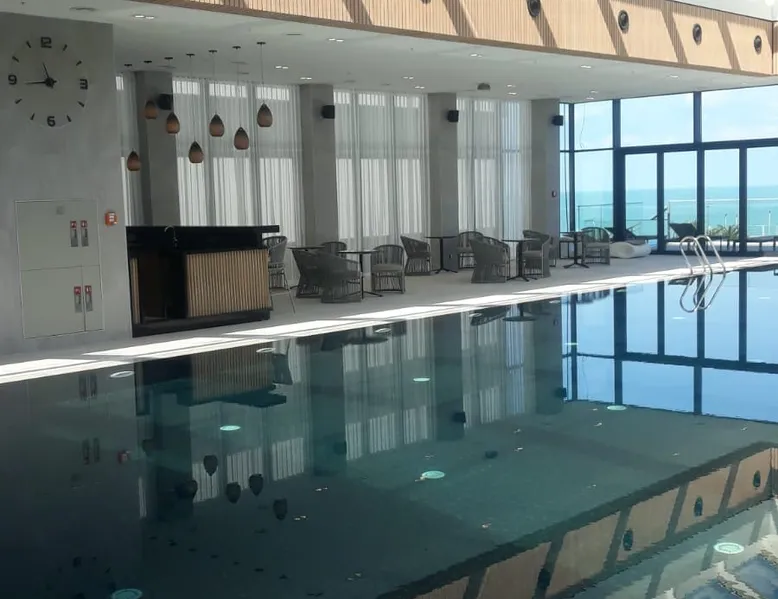 . The apartment is located on the 23th floor in the most recognizable building of Batumi - Alliance Palace. These are luxury apartments located near the sea and the boulevard, The balcony offers beautiful panoramic views of the sea and the city, the complex is equipped with the necessary conditions and modern infrastructure for a comfortable stay. It features free Wi-Fi, a shared lounge, restaurant and bar. Swimming pool and gym are NOT INCLUDED in the price The space The room has: air conditioning, washing machine, refrigerator, hob, wardrobe, hangers, hair dryer, iron and ironing board, dishes and cutlery. Upon arrival in the room there will be: towels, bed linen, soap, shampoo, shower gel, toilet paper, . Upon request, we provide free of charge: a high chair, a baby crib, and an additional work space. Guest access The Alliance Palace complex has a fitness center that meets all international standards. After your workout, you can swim in the indoor pool, relax on the veranda overlooking the sea and the city, or visit the sauna Other things to note “Alliance Palace” is the most recognizable building and the calling card of Batumi! The 41-storey residential complex is located on the first coastline, on New Batumi Boulevard, in a modern and prestigious area of the city. Important information: Pets are not allowed in the building. All floors of the Alliance Palace offer beautiful panoramic views of the sea and the city; the complex includes modern infrastructure and all the necessary conditions for a comfortable life. On the ground floor of the complex there is a Reception, lounge area, and restaurant. Directly opposite the Alliance Palace there are dancing fountains in the evening. On the embankment you can rent a bicycle or an electric scooter. Sun loungers, air mattresses and circles for children are available on the beach. Within a radius of 500 meters there are a dozen excellent restaurants, for example, Sunset Batumi, Adjaruli Sakhli, Lavanda, Sanremo and others. The Batumi Mall shopping center is located 400 meters from the Alliance Palace. There is a large GoodWill supermarket and a Subway eatery, as well as clothing stores, kitchenware stores, bookstores and many others. There is a gym on the top floor of Batumi Mall.