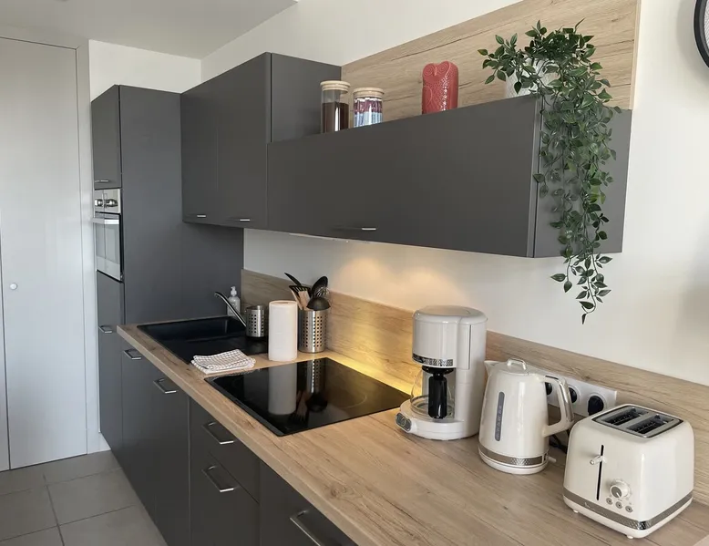 This accommodation is managed by a local estate agency and marketed by maeva, a specialist in seasonal rentals for over 20 years. On the 3rd floor with elevator of this beautiful building in an Art Nouveau architectural style and benefiting from a breathtaking view of the Place des Thermes, the city center and the mountains, you will benefit from its ideal location: 100m from the bus from... The space On the 3rd floor with elevator of this beautiful building in an Art Nouveau architectural style and benefiting from a breathtaking view of the Place des Thermes, the city center and the mountains, you will benefit from its ideal location: 100m from the bus from the tourist office and 550m from the SNCF train station. The NATURA, a beautiful apartment of approximately 37m2 and classified 3***, has been completely renovated and tastefully furnished, making it charming and comfortable. Designed to accommodate 1 to 4 people, it is facing SOUTH (view of the Town Hall / Town Hall square) and consists of: °ENTRY (Floor: parquet / Walls: paint). ° KITCHEN OPENED ON LIVING ROOM / STAY. - KITCHEN CORNER (floor: parquet / Walls: paint and splashback): high and low kitchen units, worktop, extractor hood, table-top refrigerator, washing machine, dishwasher, built-in combination microwave oven, traditional coffee maker with filter, cooking and cooking utensils, kettle, toaster, breakfast table 4 chairs. - LIVING AREA/LOUNGE: convertible sofa, flat screen TV with integrated TNT, TV cabinet with drawers and storage baskets, coffee table. °SUITE BEDROOM with access to SHOWER ROOM/WC - BEDROOM (Floor: parquet / Walls: paint): 160x200 cm bed (excellent quality bedding), 2 bedside tables, telecommuting area with desk and chair, wall storage cupboard. - SHOWER ROOM/WC (Floor: tiles / Walls: earthenware) washbasin with 3 drawers, shower cubicle (glazed wall), hair dryer, heated towel rail, WC. WIFI connection. Bath and bed linen included. Tourist tax: 1.13 euros / night / person. Non-smoking apartment. Pets not allowed. Optional: End of stay cleaning (75 euros). Other things to note You will receive a voucher with all the information you need to hand over the keys once the reservation is made. Accessible by train: Aix-les-Bains-Le Revard (626 m), Viviers-du-Lac (4.6 km), Grésy-sur-Aix (.05 km) Area (m²): 37 Pets not allowed Dishwasher Washing machine Fridge Baking sheet, Microwave Coffee Maker Television, Security deposit (in euros): 1200 Number of rooms Number of bedrooms Number of toilets Number Bathroom Wi-Fi Ironing board and ironing board