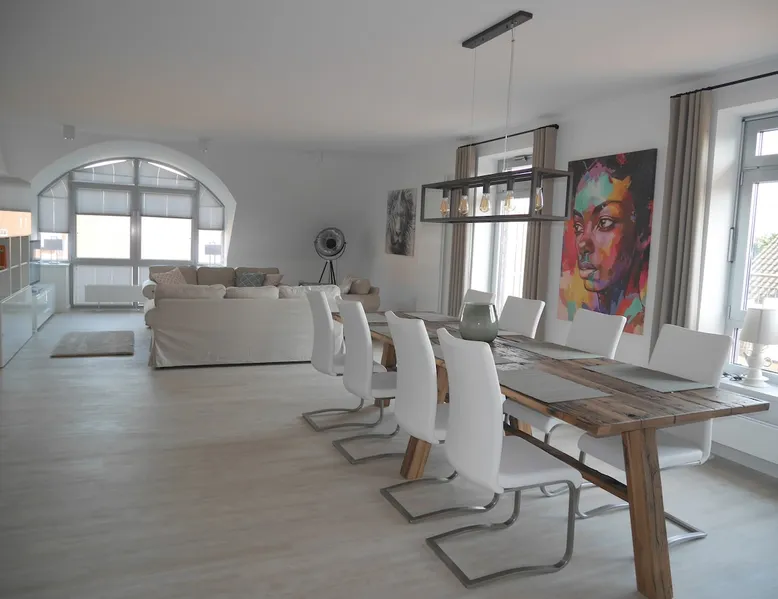 Spend a relaxing time in the Heidekreis with its eclectic and exciting attractions. The penthouse apartment is a total of 128 m² located in the center of Soltau. The apartment includes a shower room, a guest toilet, two bedrooms, which are equipped with wardrobes, and a living-dining room with open kitchen. Highlight of the apartment: a large roof terrace. Baker and supermarket are located in the house in the immediate vicinity, pharmacy and doctor's office.