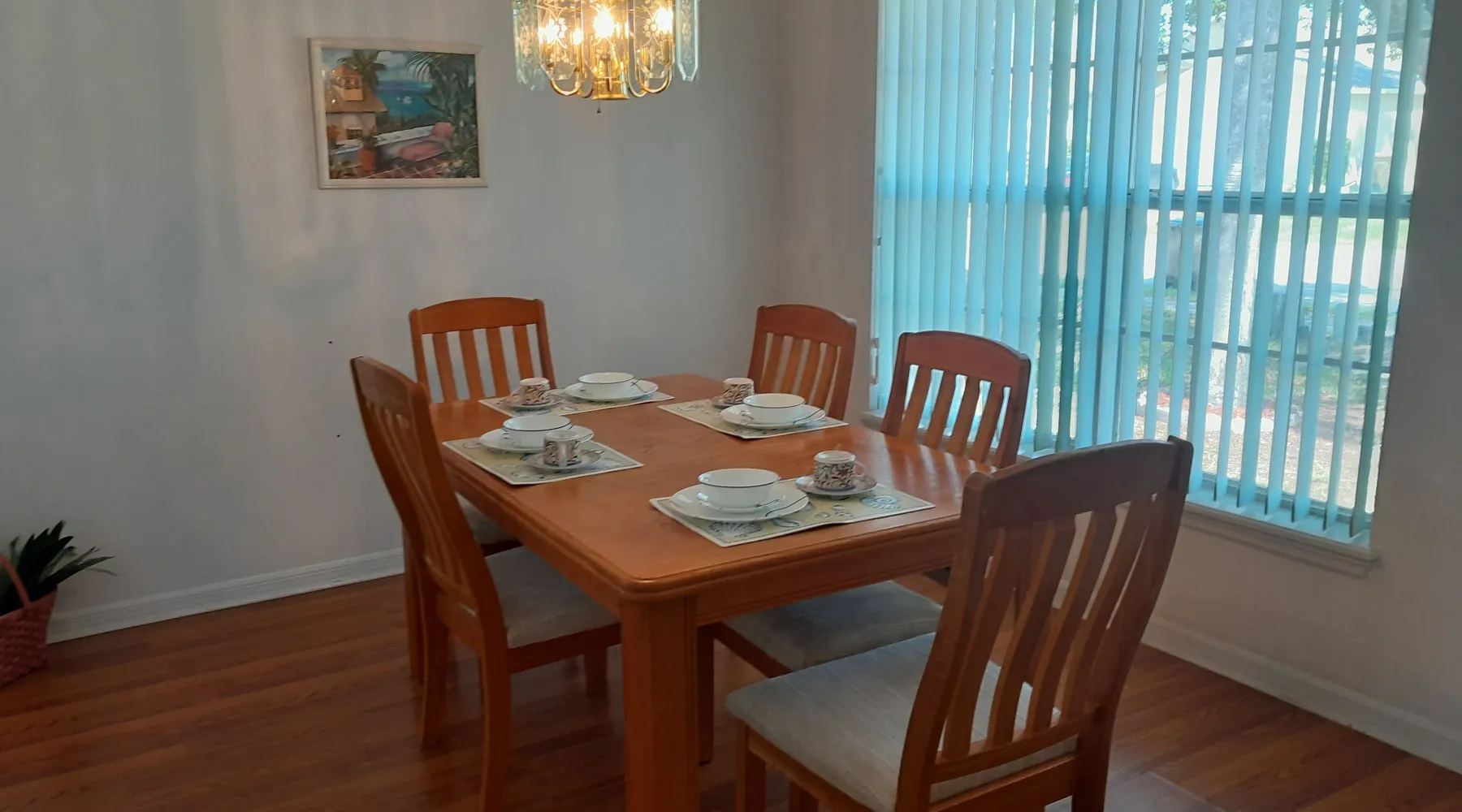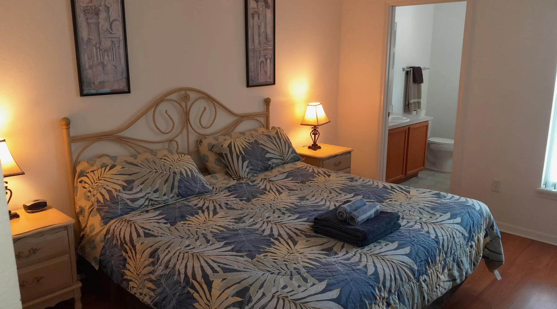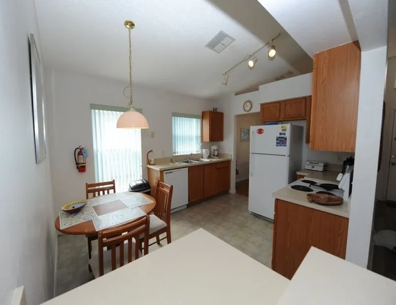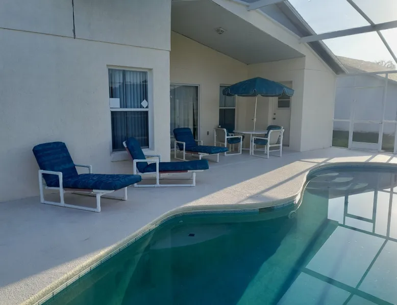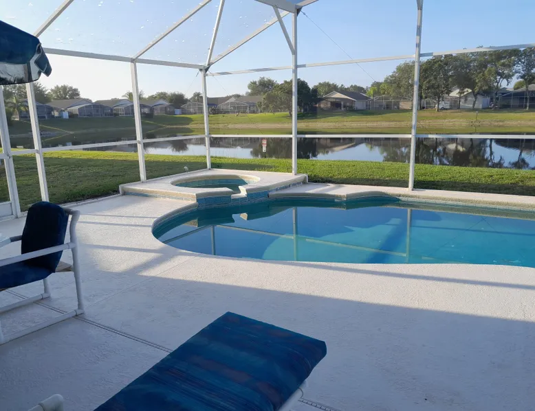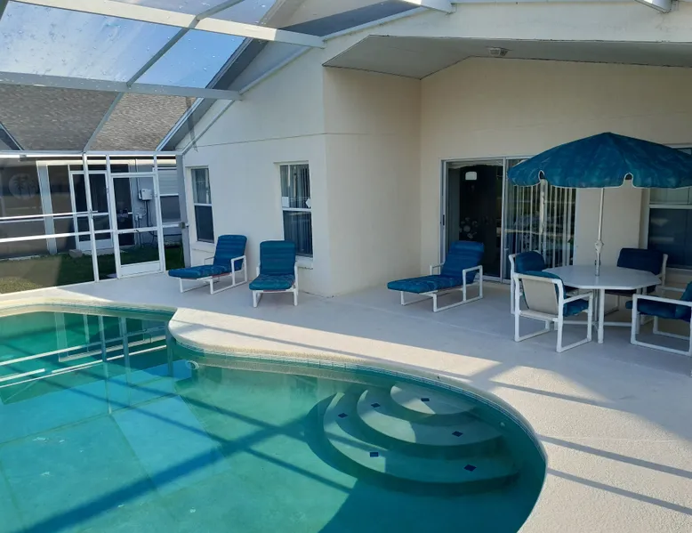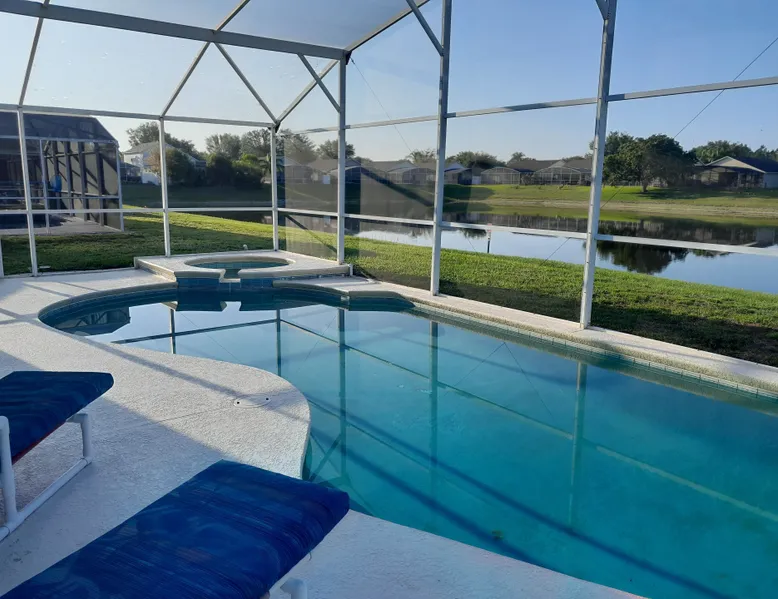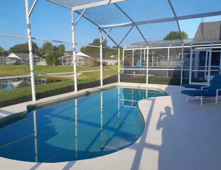 The Villa: Our villa is superbly furnished to a very high standard and would be ideal for a large family or two smaller families to share, being able to accommodate up to 8 persons. May 2023 Update: Photos have been updated. The pool: Outside there is a screened fully enclosed 30 x 14 ft private pool and spa with extended deck and covered lanai overlooking a small lake, so no close rear neighbors. The pool has a lovely sunny south east facing aspect, which is perfect for relaxing evenings on the loungers or deck chairs, after a long day in the parks or shopping. The pool can be heated if required. Major attractions: Disney 15=30Mins Universal: 25-40Mins Airport:40-60minsMins International Drive:30-40Mins Entertainment: The villa has 4 smart TVs including a 50" TV in the Living room and DVD Player. In the games room there is a 7ft pool table for the older kids and a Foosball table. Plenty to do on a quiet evening. The house has central air conditioning and heating, and full laundry facilities in the utility room. The villa also has free local telephone calls and free calls to all landlines and mobiles in the USA and Canada. Free WiFi is available in the villa, don't forgot to bring a laptop or smart phone. Our local property management company is just a phone call away should you need anything or have any questions Bedrooms: The villa comprises 3 bedrooms in total; Master bedroom 1 has a king size bed(6ft), walk -in closet, bedside lockers, bedside lamps, clock radio, chest of drawers, dressing room unit, ceiling fan, TV and a really beautiful en-suite, containing his and hers sinks, a corner bath, seperate shower unit and seperate WC Master bedroom 2 has a has a king size bed(6ft), large built in wardrobe, bedside lockers, bedside lamp, clock radio, chest of drawers, dressing room unit, ceiling fan, TV and an en-suite washbasin and WC. Bedroom 3 - the kids' room has a double bunk bed with single on top and a single bed, and walk-in wardrobe, bedside locker, chest of drawers, bedside lamp and a clock radio. There is a separate bathroom with bath and over bath shower. Bed linen and towels are provided for your use. There is also a travel crib/cot, a high chair and a stroller/buggy for the baby. Due to hygiene you need to bring your own bed linen for the travel cot Dining: There is room for 6 in the living room and 6 in the dining room and 4 at the breakfast table. To prepare food you will find a cooker, an oven, a microwave, a fridge, a freezer, a kettle, a toaster, a blender and a coffee maker. There is a dish washer, all cutlery, crockery, glassware and cooking utensils are provided. In the utility room there is a large washing machine, dryer, iron, ironing board, vacuum cleaner, mop and bucket. This is a non-smoking villa and pets are not allowed. Silver Creek is located in Clermont, north west of Walt Disney World on the US27, just a mile from the intersection with the western end of the US192. The interstate4(i4) can easily be reached and provides direct access southwest to Tampa(55 minutes) and the gulf coast beaches and northeast to the center of Orlando and the two airports Orlando and Sanford or continue on to the Atlantic coast for Daytona Beach and the Kennedy Space Center. You will be within minutes of all the essential amenities including a First Federal, Post Office, petrol station, 24hr Walmart supermarket, 24hr Walgreens chemist with one hour photo processing and a variety of diners/bars and restaurants. Walt Disney World can be reached in 15 minute to 30 minutes depending on traffic and the majority of the main attractions such as Universal, Seaworld and International Drive with its numerous attractions can be reached in around 30 to 40 minutes There are several quality golf courses just minutes away by car which cater for every level of golfer including Southern Dunes, Ridgewood Lakes and Champions Gate, plus over 20 more within a 20 mile radius. If you prefer a little retail therapy instead, Orlando is home to a large number of malls and retail outlets including Mall at Millenia, Osceola Square Mall, Prime Designer Outlet, Premium Outlets, Downtown Disney Market place, Church Street Exchange, Market Street At Celebration, West Oaks Mall , Orlando Fashion Square Mall and Florida's largest Mall, the Florida Mall. For the fishing enthusiast the region is full of very suitable lakes. There is Bass fishing in the pond behind the villa with a catch and release policy.