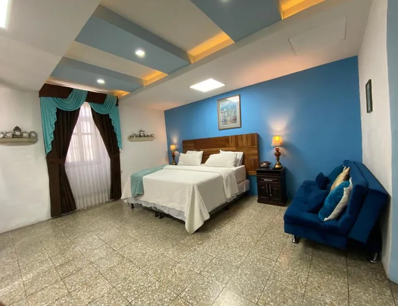 Historic Setting: Hotel Vintage "Rialto" in Quetzaltenango is housed in a historic building, offering a unique and charming atmosphere. Comfortable Accommodations: Rooms feature private bathrooms, city views, and modern amenities such as free WiFi, air-conditioning, and flat-screen TVs. Dining and Leisure: The hotel includes a restaurant serving international cuisine, a bar, and spa facilities. Guests can relax on the terrace or in the garden. Convenient Location: Located a 4-minute walk from Quetzaltenango Central Park, the property is near attractions like the Museum of Archaeology and the Cathedral. Featuring a private entrance, this suite consists of 1 living room, 1 separate bedroom and 1 bathroom with a bath and a shower. Boasting a terrace with garden views, this suite also provides executive lounge access and a flat-screen TV with streaming services. The unit offers 2 beds.