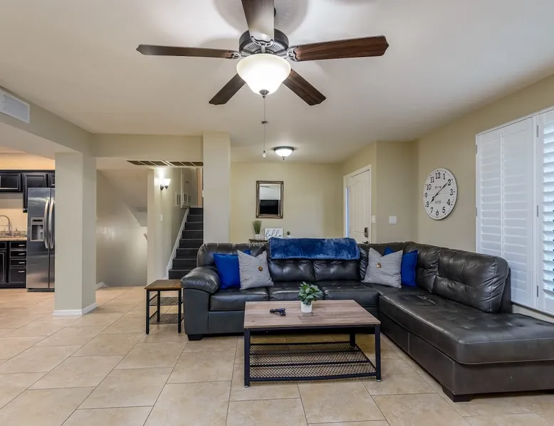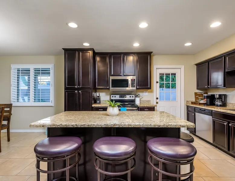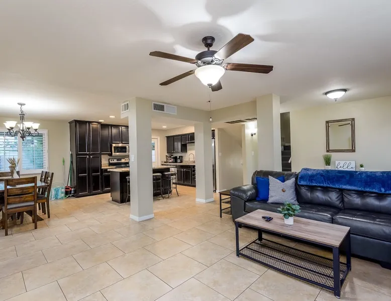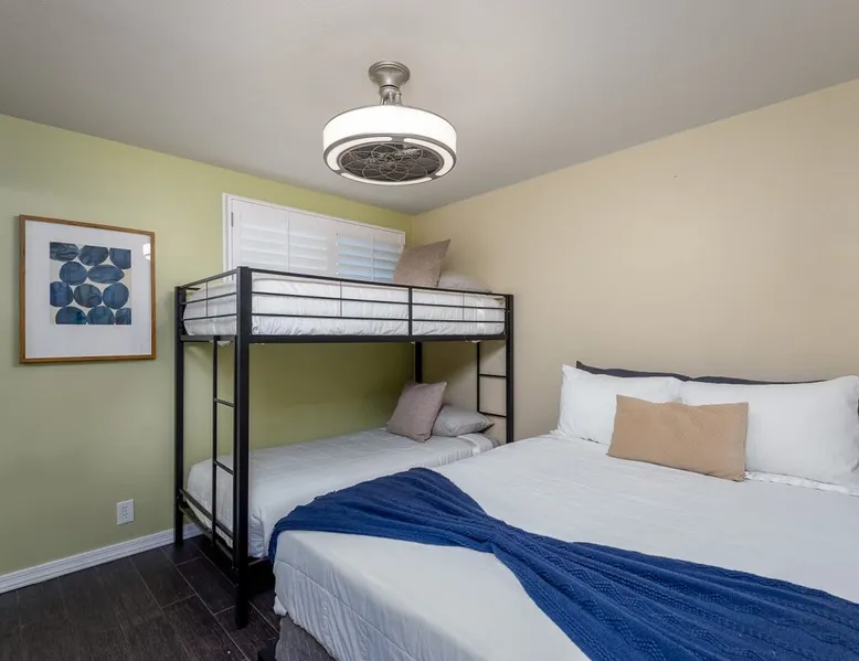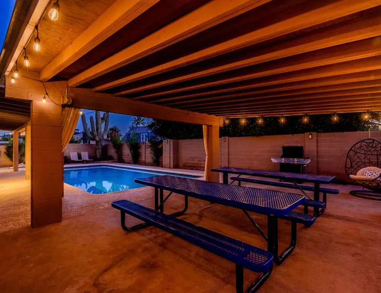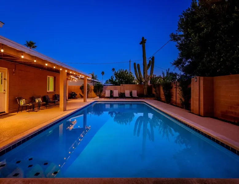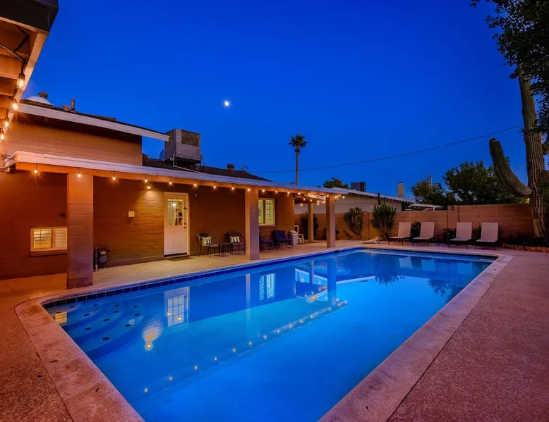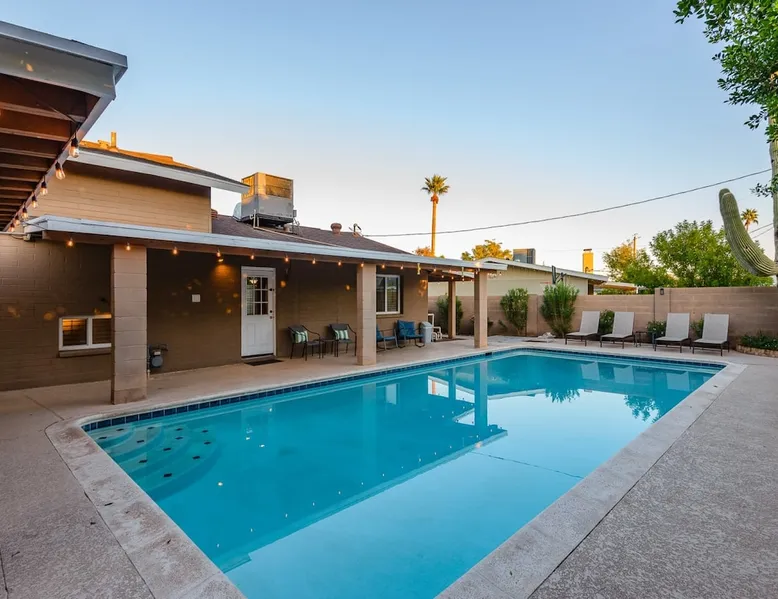 Welcome to our beautiful home in sunny Scottsdale! My spacious 5 bedroom home is the perfect home base for a large group. Sleeping accommodations are designed for large groups- we can sleep up to 16 guests. My home is newly remodeled and is in a great location - Conveniently located to all of the city's must-sees! My newly remodeled home features 5 bedrooms and 3 baths with a stand-alone bbq, large patio, super fast high speed internet (100 mbps +) , plenty of entertaining space, and a large po The space Featuring 5 bedrooms and 3 baths, our house is located in the heart of Scottsdale, surrounded by great restaurants, supermarkets and everything you’ll need to feel right at home. Our house is just miles away from 5th Ave shops and Old Town Art galleries with tons of popular restaurants and nightlife in the Scottsdale area. The house is very close to several MLB spring training stadiums, casinos, and of course the numerous awesome golf courses that Scottsdale has to offer. Top Golf, the Aquarium, Butterfly world, Musical Instrument Museum - all a quick Uber away! The home is fully furnished and has everything you will need to have an amazing stay (linens, towels, pots/pans, and cooking utensils). KITCHEN: Our kitchen offers plenty of open space, for whatever cooking needs you require. The kitchen also includes a breakfast bar, with three stools for quick and easy eating. There is a Keurig K Cup coffee maker, blender, toaster oven, stove, and oven for you to use. It is fully stocked with dishes (formal and plastic), pots and pans, cups, coffee mugs, flatware, wine glasses, cocktail glasses, champagne glasses. LIVING & DINING ROOM: We wanted to create a space where everyone would want to gather, whether it is at the spacious dining table or the cozy seating around the 60" TV for watching sports, TV or movies. ** BED CONFIGURATION ** Bedroom 1: King Bed Bedroom 2: Bunk Bed, King Bed Bedroom 3: Bunk Bed, Queen Bed Bedroom 4: Bunk Bed, Queen Bed Bedroom 5: Bunk Bed, Queen Bed PATIO & POOL: The backyard features 2 large bench seating areas. 4 Chaise lounge chairs. A stand-alone bbq. LAUNDRY: Washer and dryer. Detergent Pods. Ironing board. The city of Scottsdale requires us to inform you that occupancy at all Scottsdale Short Term Rental properties is limited to 6 adults plus children. Guest access You'll have exclusive access to all the amenities at my home. Other things to note Our Scottsdale Short Term Rental Permit Number is 2034699.
